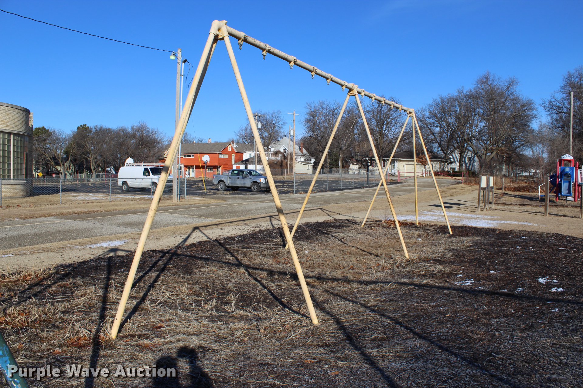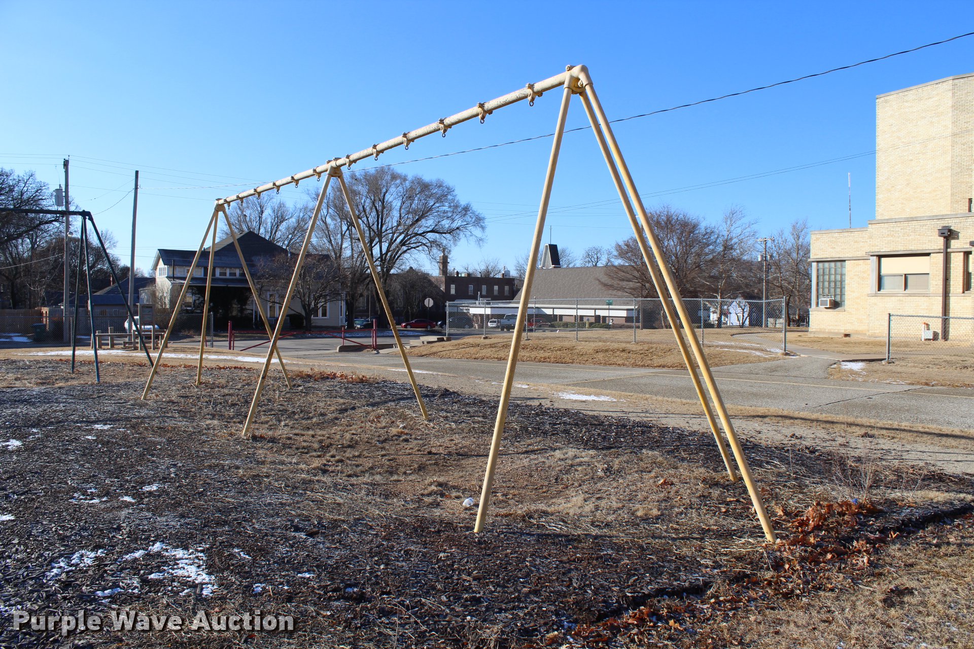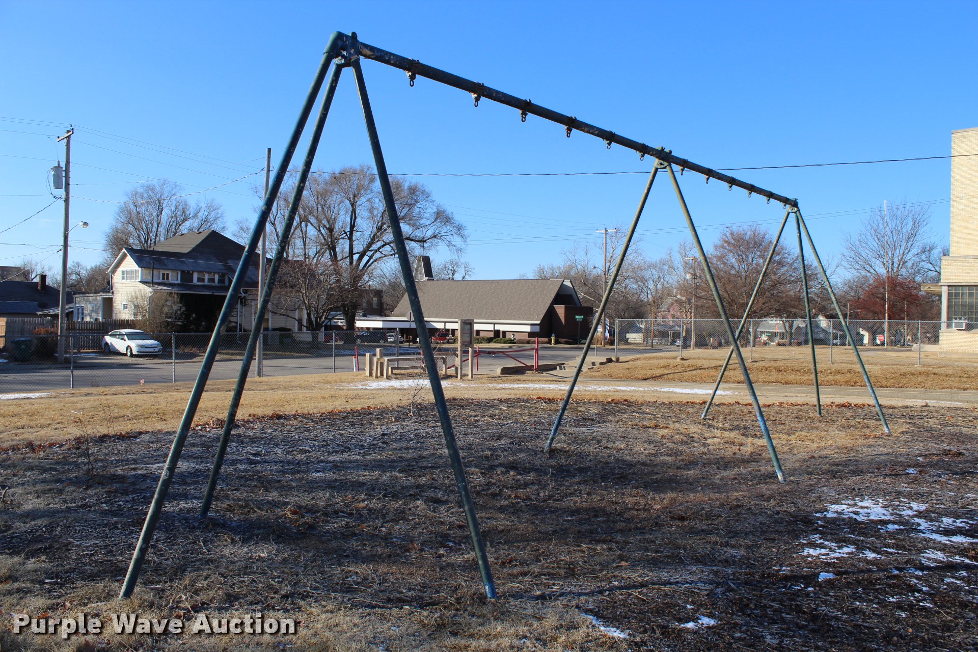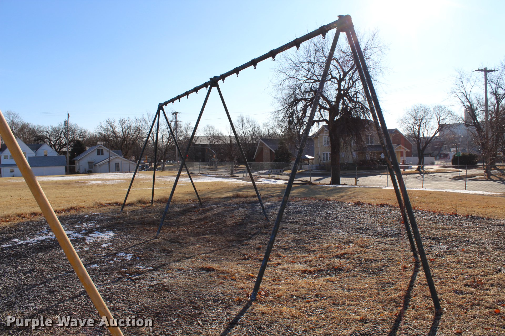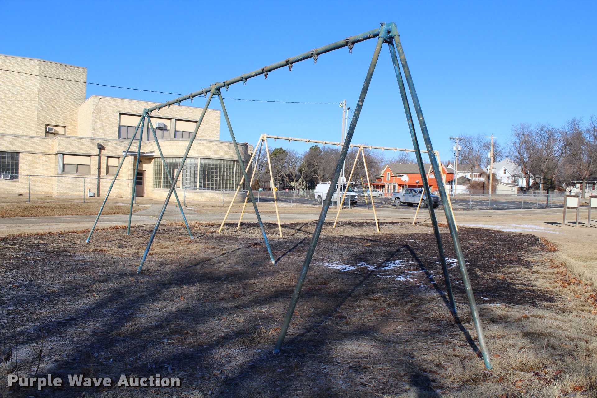 Purple Wave is selling a used Sporting Goods in Kansas. This item is a (2) swing sets with the following: (2) swing sets. Purchaser is responsible for all aspects of removal.. 300 NW 7th St. Abilene, KS 67410