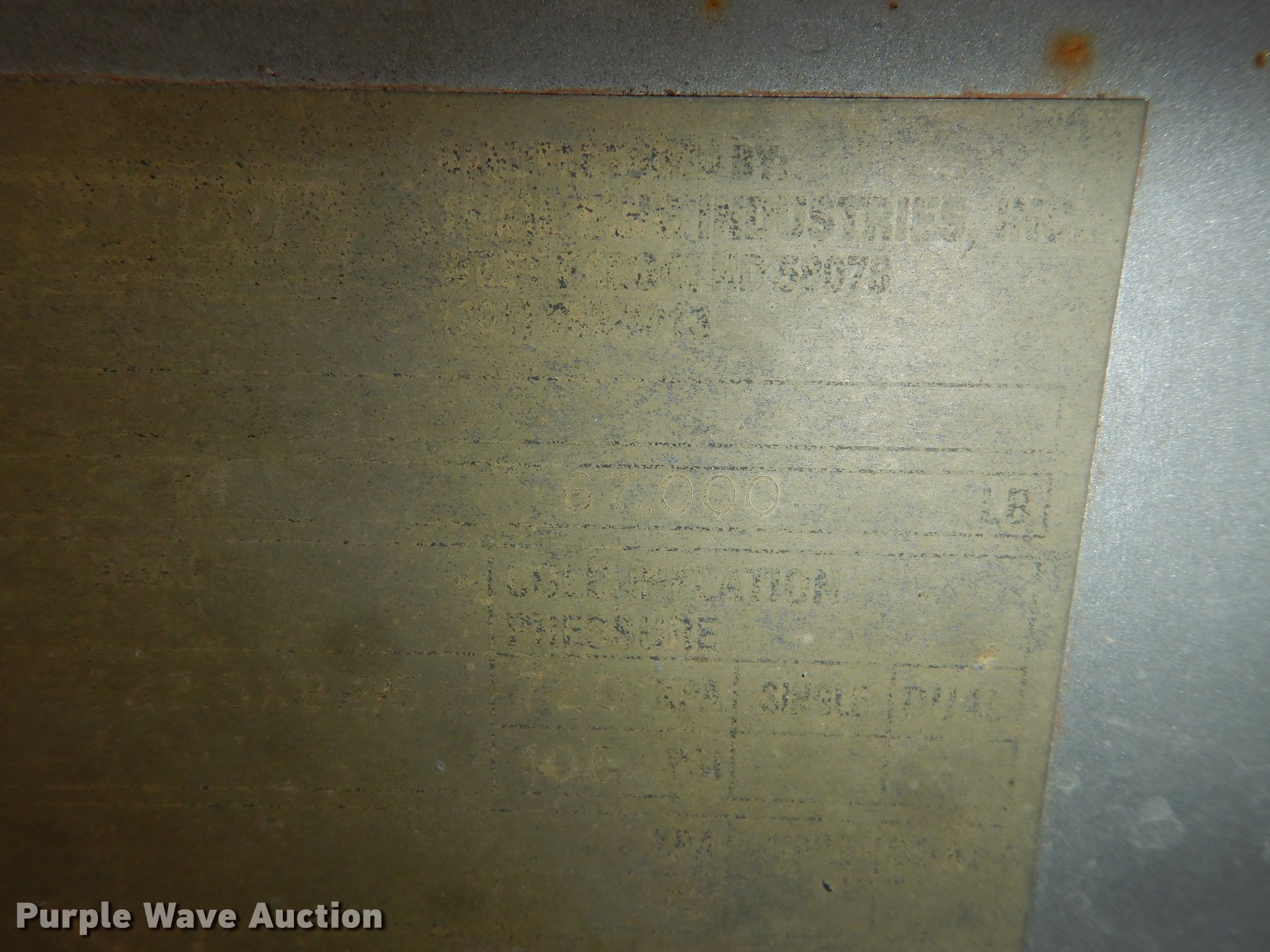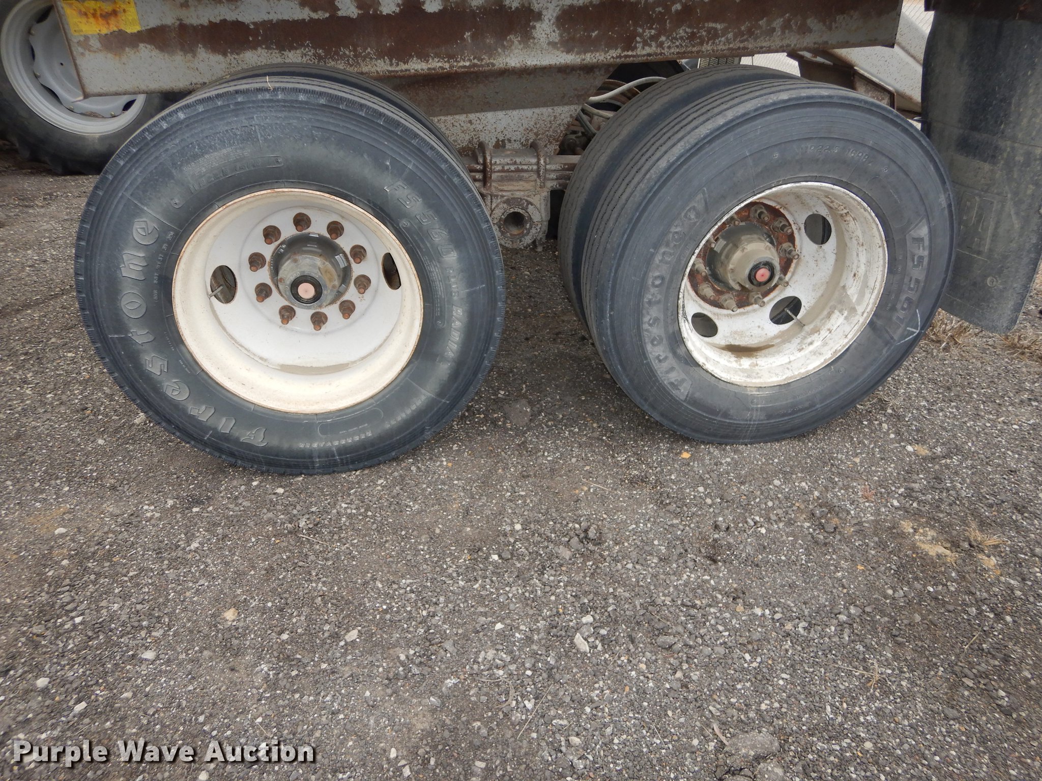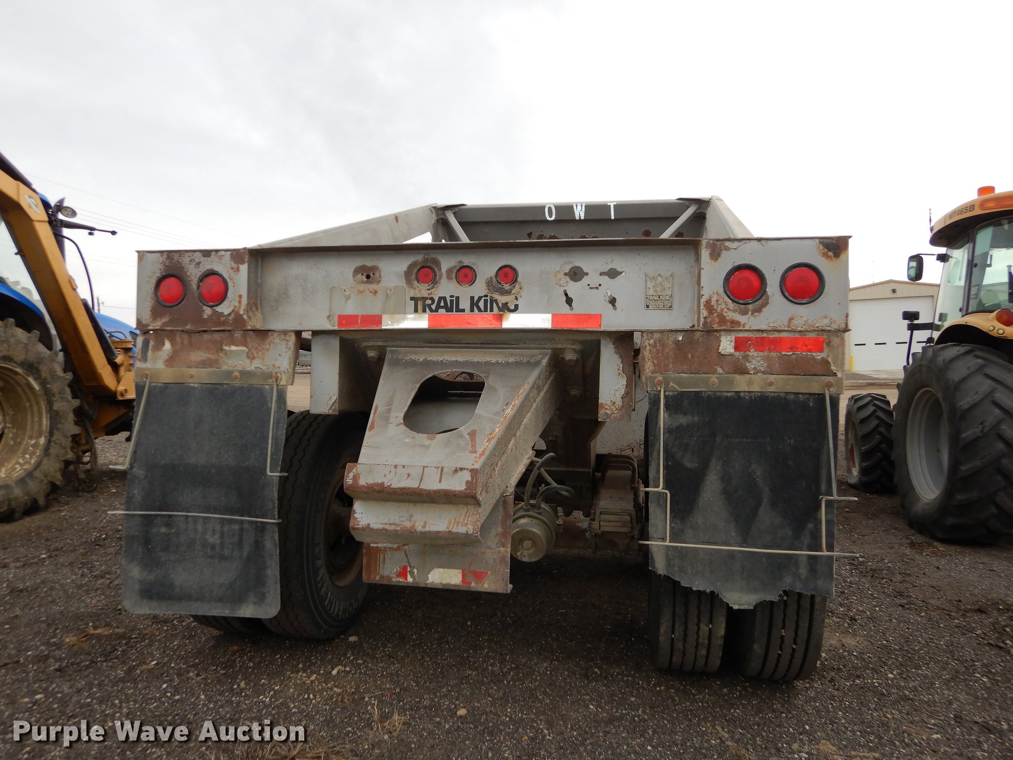 Purple Wave is selling a used Bottom Dump Trailer in Kansas. This item is a 2004 Trail King bottom dump trailer with the following: 22 cu. yd. capacity, Aero roll tarp, Rear push bar, Pivoting front hitch, Trailer wiring, Spring suspension, Air brakes, Tandem axle, Firestone 11R22.5 tires, GVWR 67,000 lbs