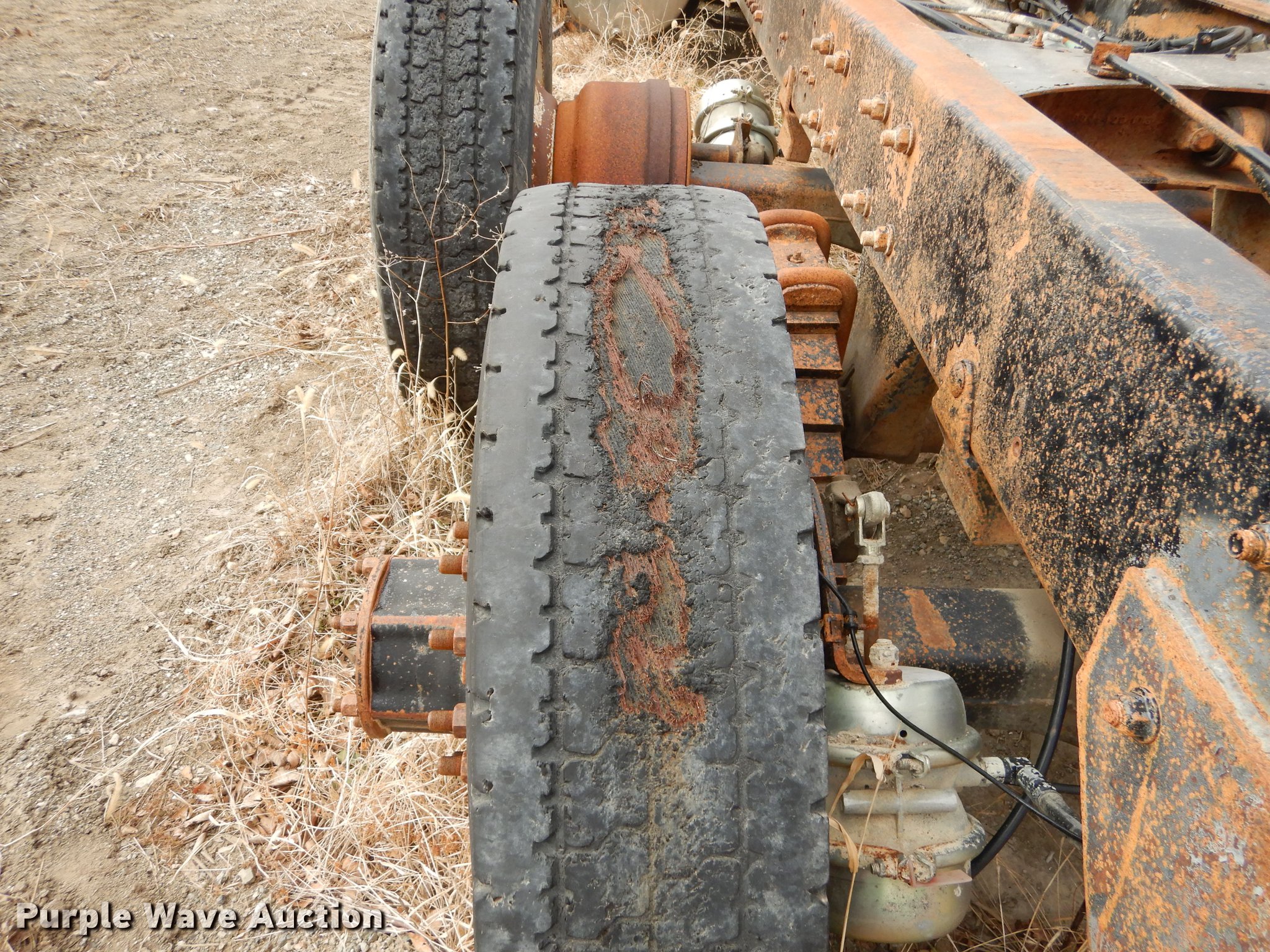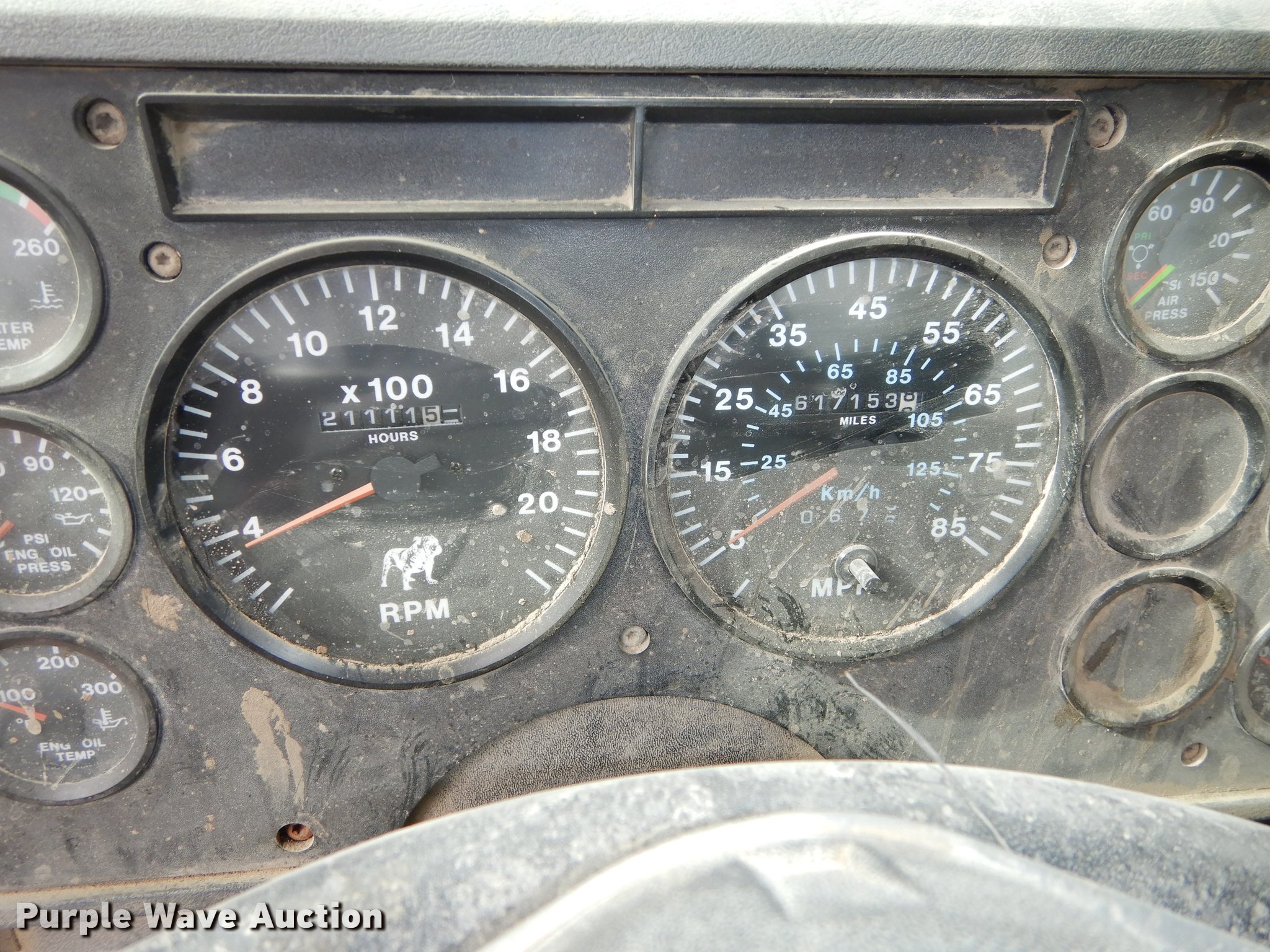 Purple Wave is selling a used Truck Chassis in Kansas. This item is a 2000 Mack CH613 truck chassis with the following: 617,153 miles on odometer, 211,115 hours on meter, Mack E7 12.0L L6 turbo diesel engine, Eaton Fuller nine speed manual transmission, Tandem axle, Heat, Tilt, AM/FM/cassette, Cloth interior, Block heater, Exterior visor, Front tow hooks, Single exhaust stack, Dual fuel tanks, Camelback suspension, Air brakes, 11R24.5 tires, Frame is twisted, Unattached front axle, included, Needs repaired, Some wheels and tires missing, No taillights, Engine issues, Has not run in three years, Unknown operating condition, Unit# 05-15