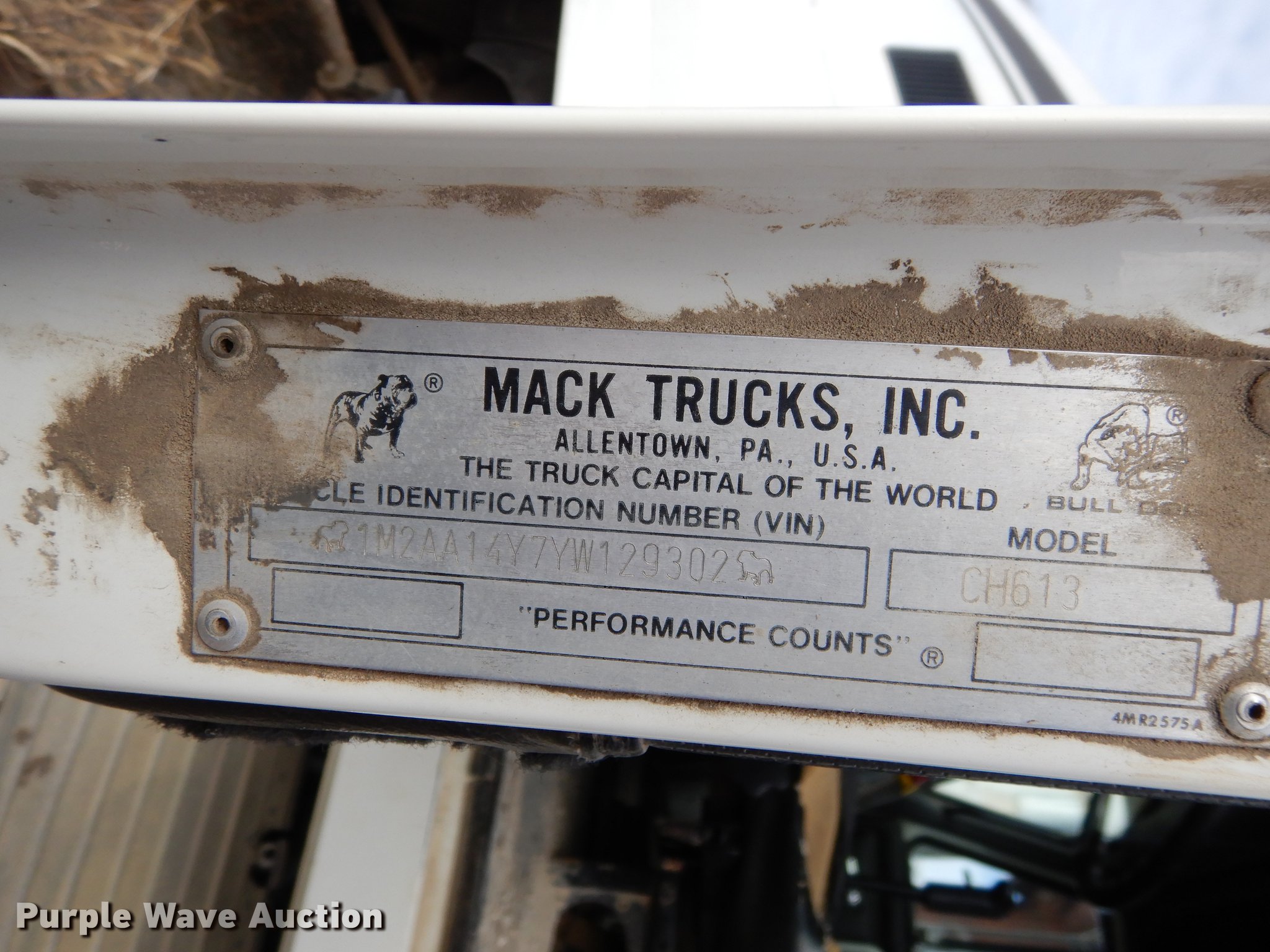 Take a look at this used 2000 Mack CH613 truck chassis being sold on March 6th, 2018 in the SOLD! March 6 Government Auction made by Mack. Take a look at all of the item information below or take a look at similar auctions for Trucks.
