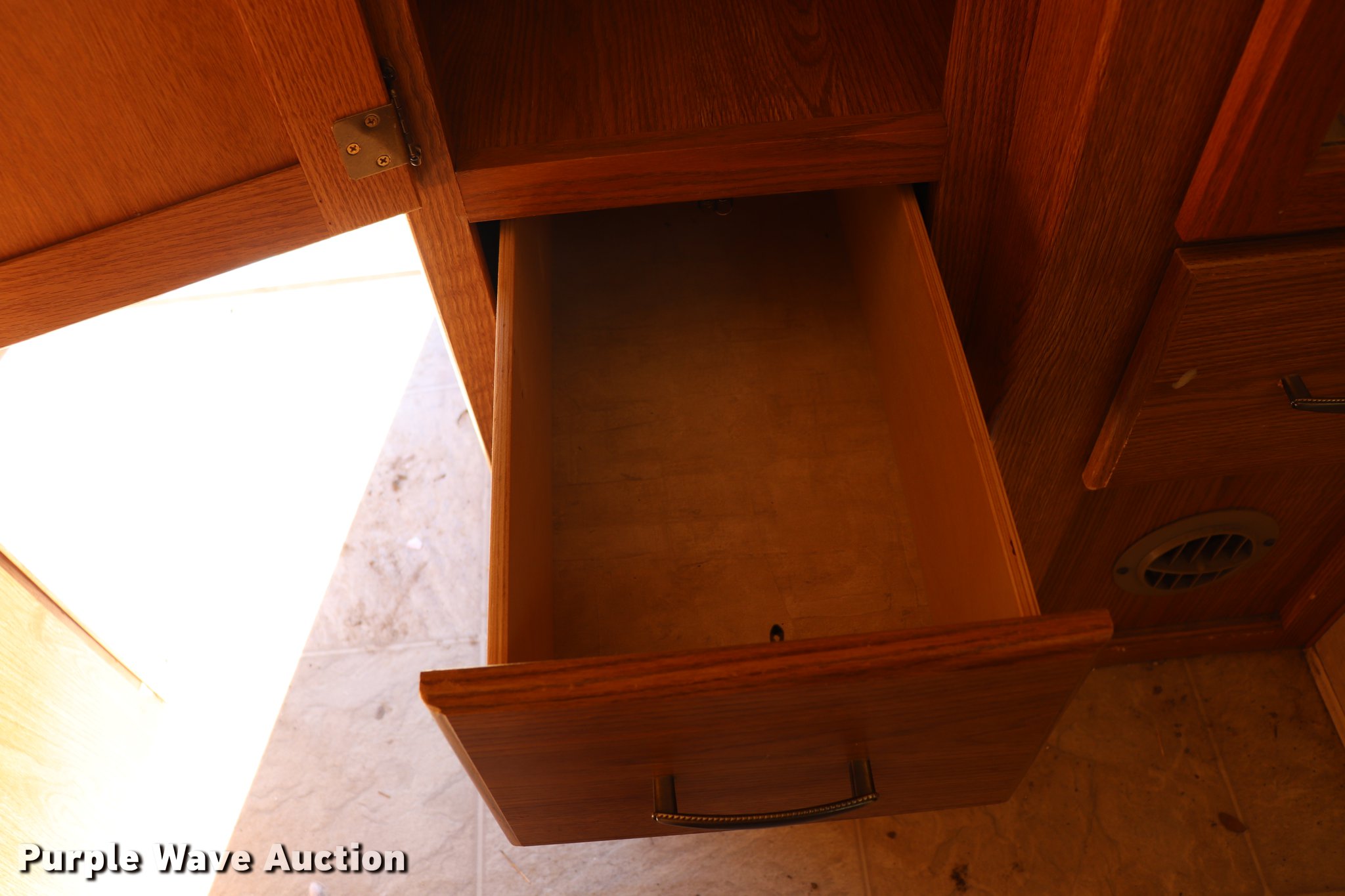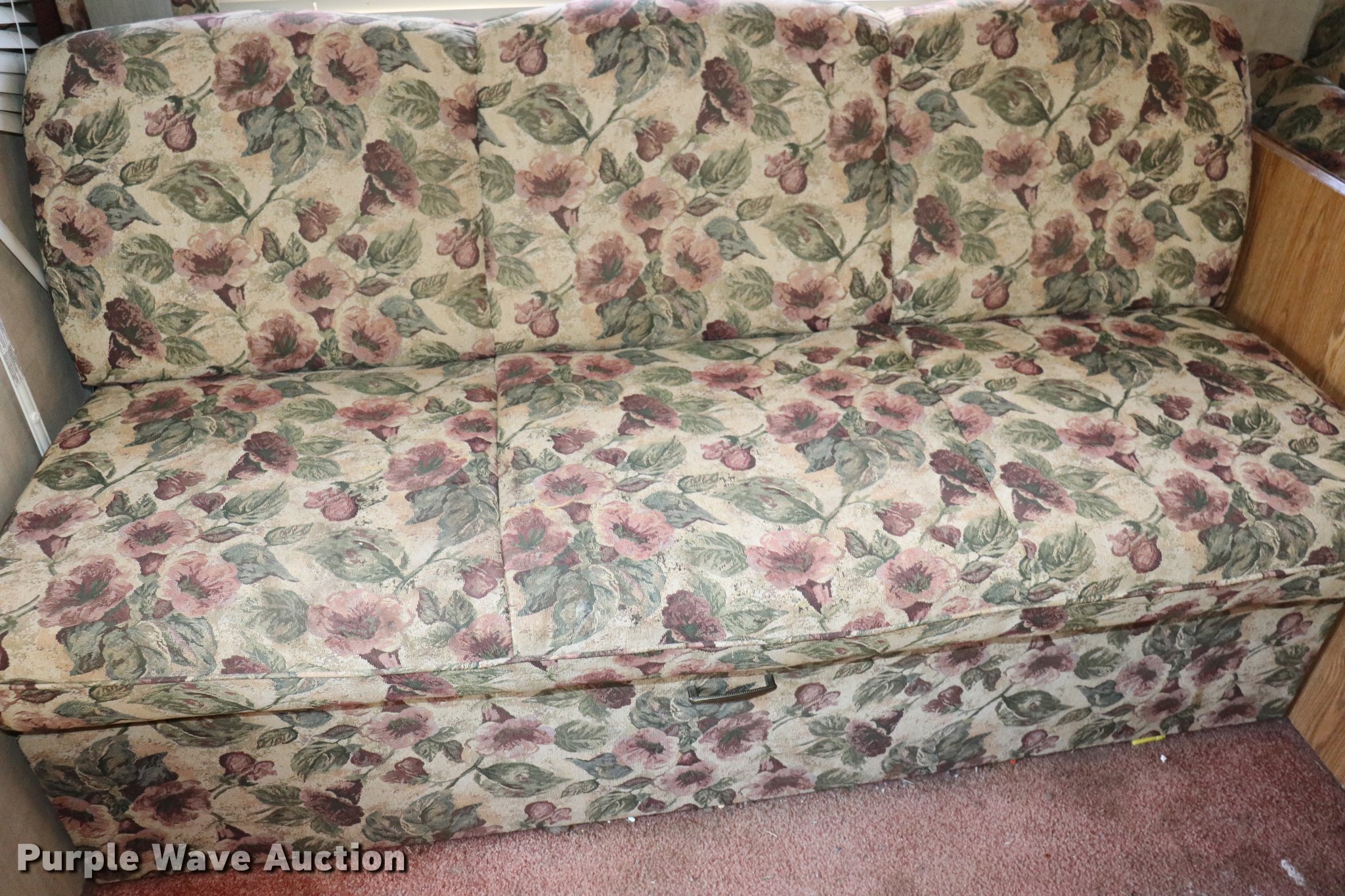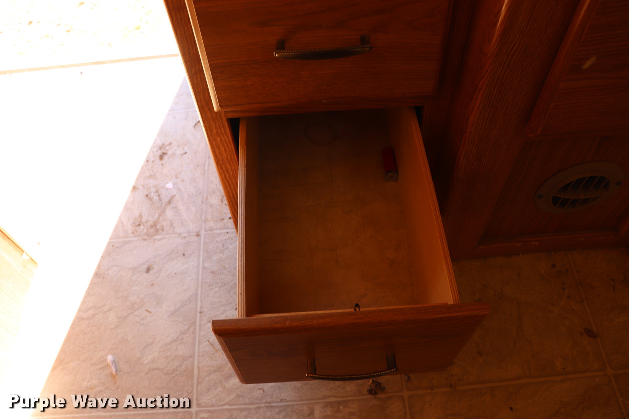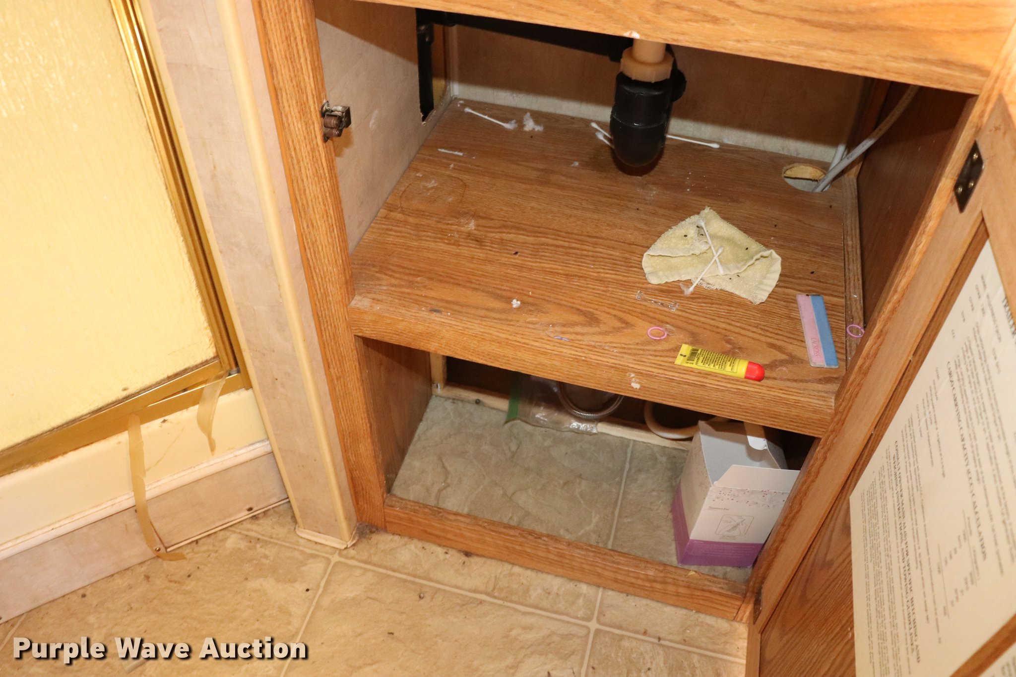 Purple Wave is selling a used RV in Oklahoma. This item is a 2006 Fleetwood Wilderness Yukon camper with the following: 30'L, Kitchen, Sink, Refrigerator/freezer, Oven, Gas stove top, Table, Bathroom, Bedroom, Sound system, Central AC and heat, Dual entry doors, Storage compartments, Single electric slide-out, Storage compartments, Single leg electric landing gear, 2 5/16" ball hitxh, Spring suspension, Electric brakes, 205/75R15 tires, Floor soft, No bed, No awning, Rear glass cracked, Tires need replaced, Cabinet hinges brocken