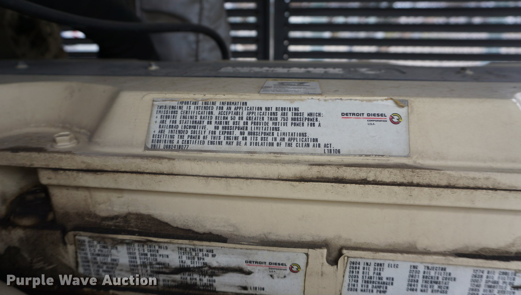 Purple Wave is selling a used Generator Set in Oklahoma. This item is a Kohler 200RZD generator with the following: Unknown hours on meter, Detroit Diesel Series 60 six cylinder turbo diesel/natural gas engine, 340 HP, 250 kVA, 200 kW, Three phase, Skid mounted, No batteries, Serial 398626