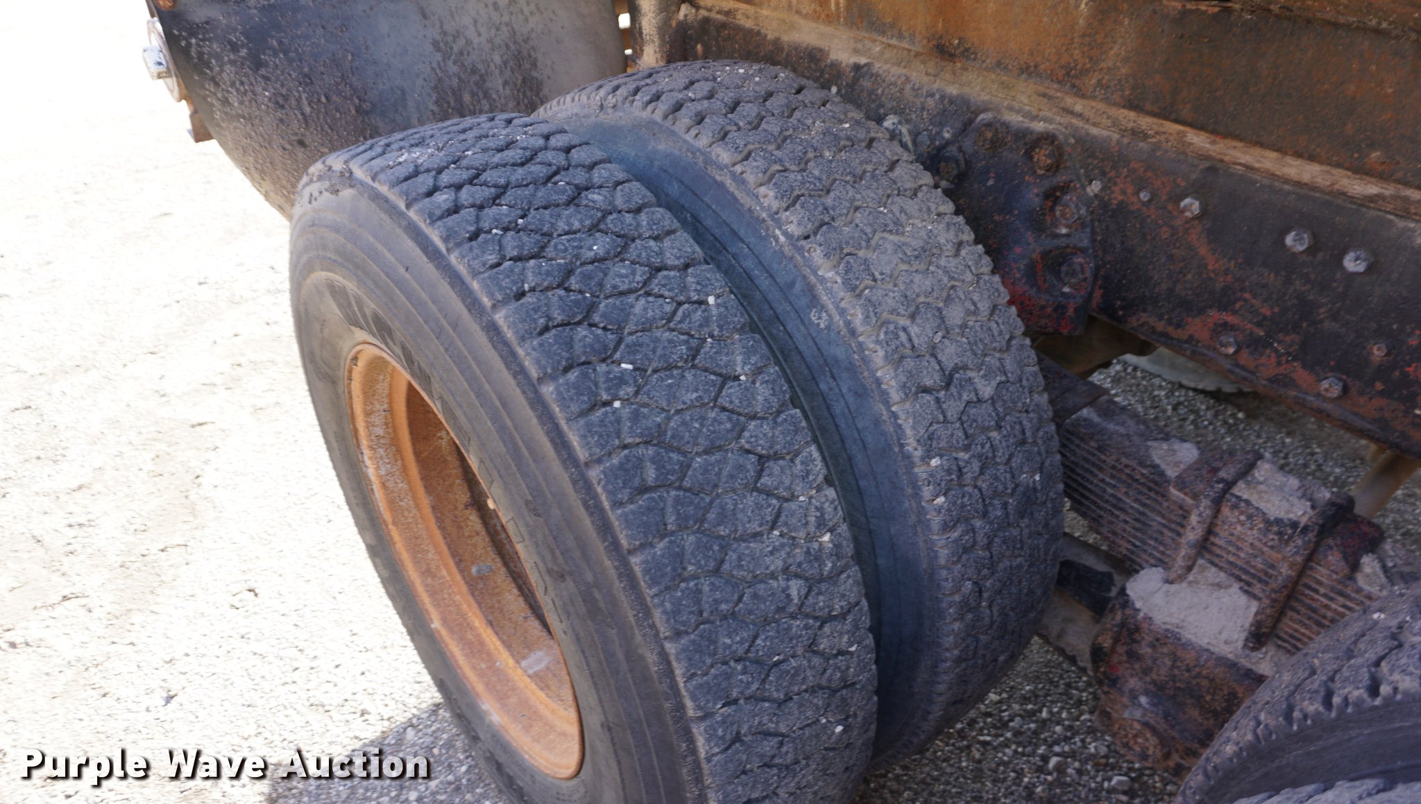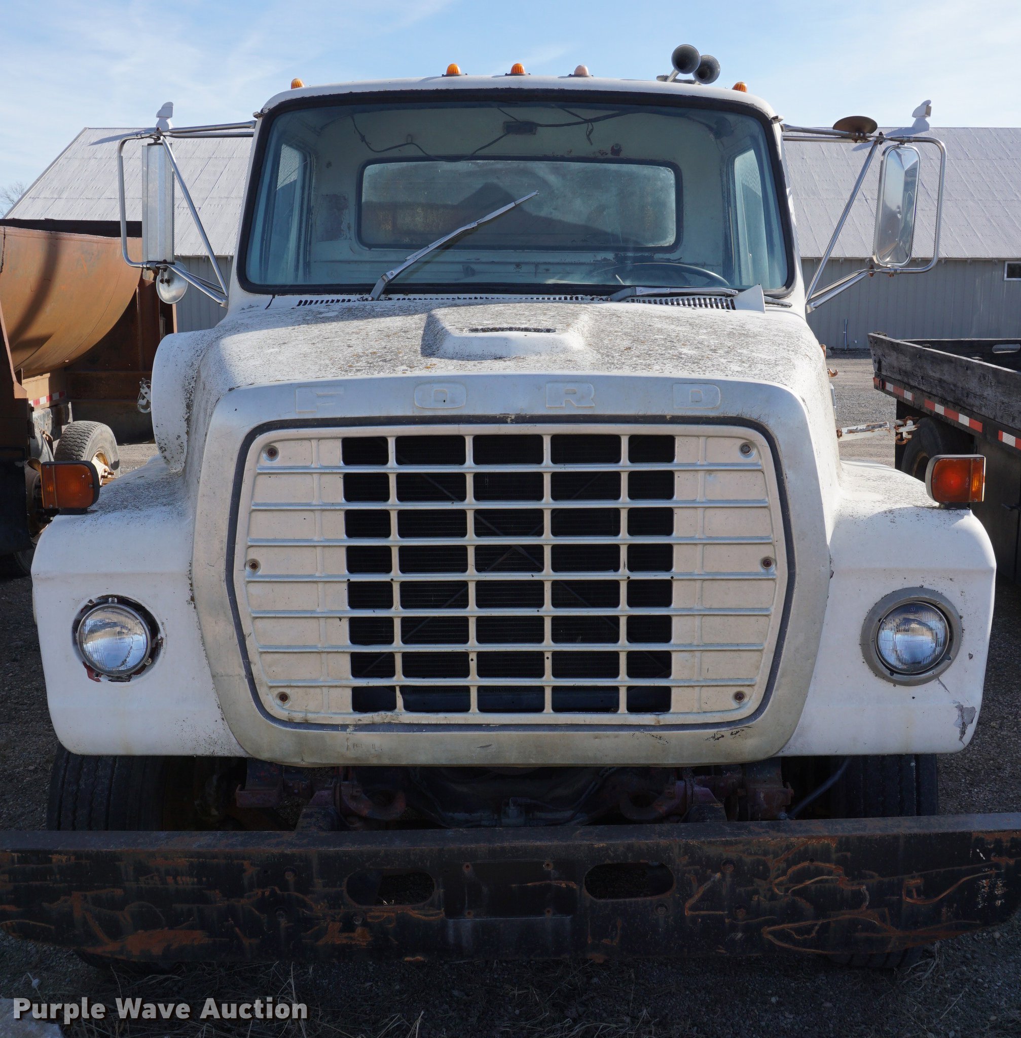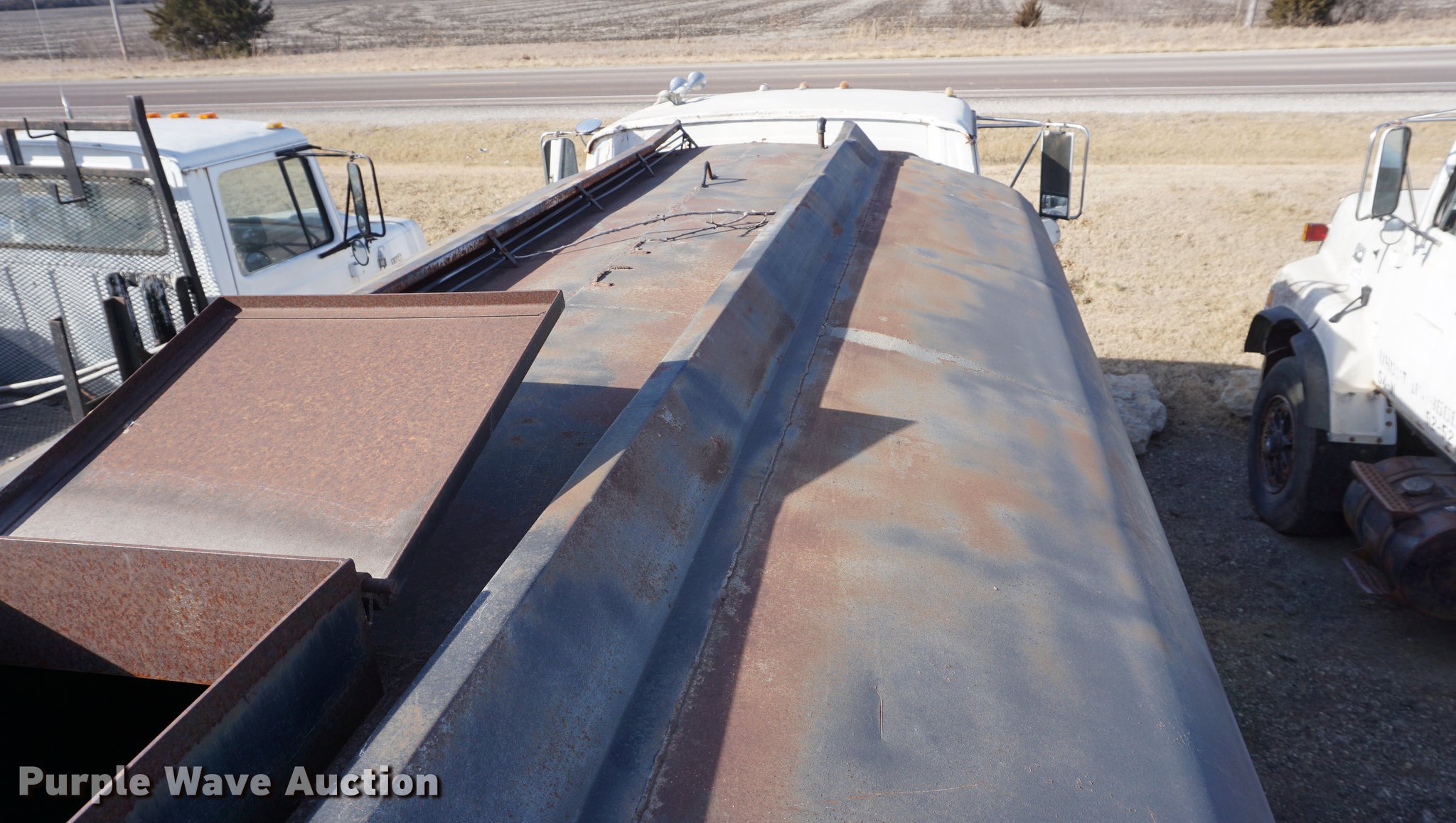 Purple Wave is selling a used Tank Truck or Water Truck in Kansas. This item is a 1973 Ford 9000 water truck with the following: 431,449 miles on odometer, Cummins NH230 diesel engine, Five speed manual transmission, Tandem axle, Heat, PTO, 13'4"L x 91"W tank bed, 3,000 gallon capacity, Rear spray bar, 3" rear outlet, Top fill, Dual fuel tanks, Pintle hitch, Spring over walking beam suspension, Air brakes, 11R22.5 tires, Water tank leaks, Bell housing broken, Dead battery, Non-operational unit, Unit# 52-49