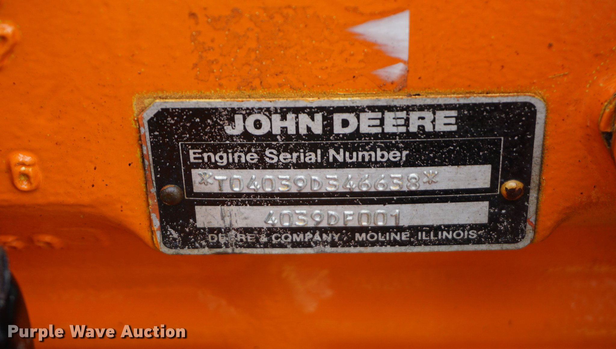 Godwin Dri Prime pump. 1,869 hours on meter, John Deere 4039 four cylinder diesel engine, 6" inlet/outlet, Type: CD150M, Pintle hitch, 205/75D15 tires, Serial 905722/50. Olathe, KS 66062