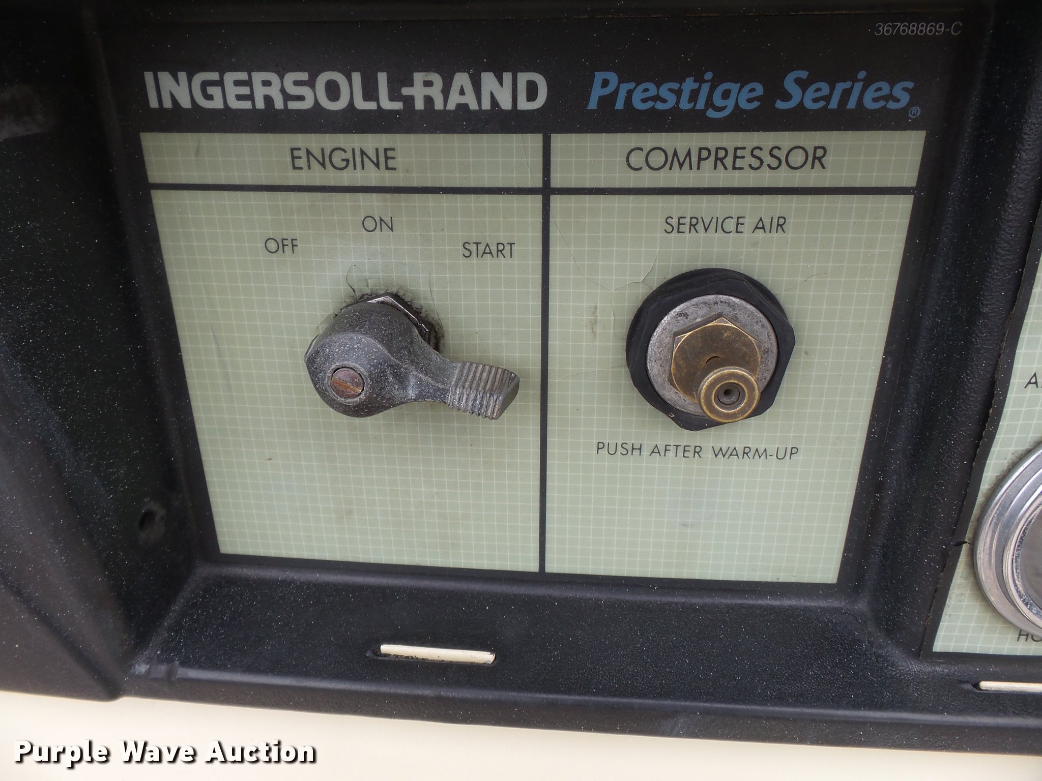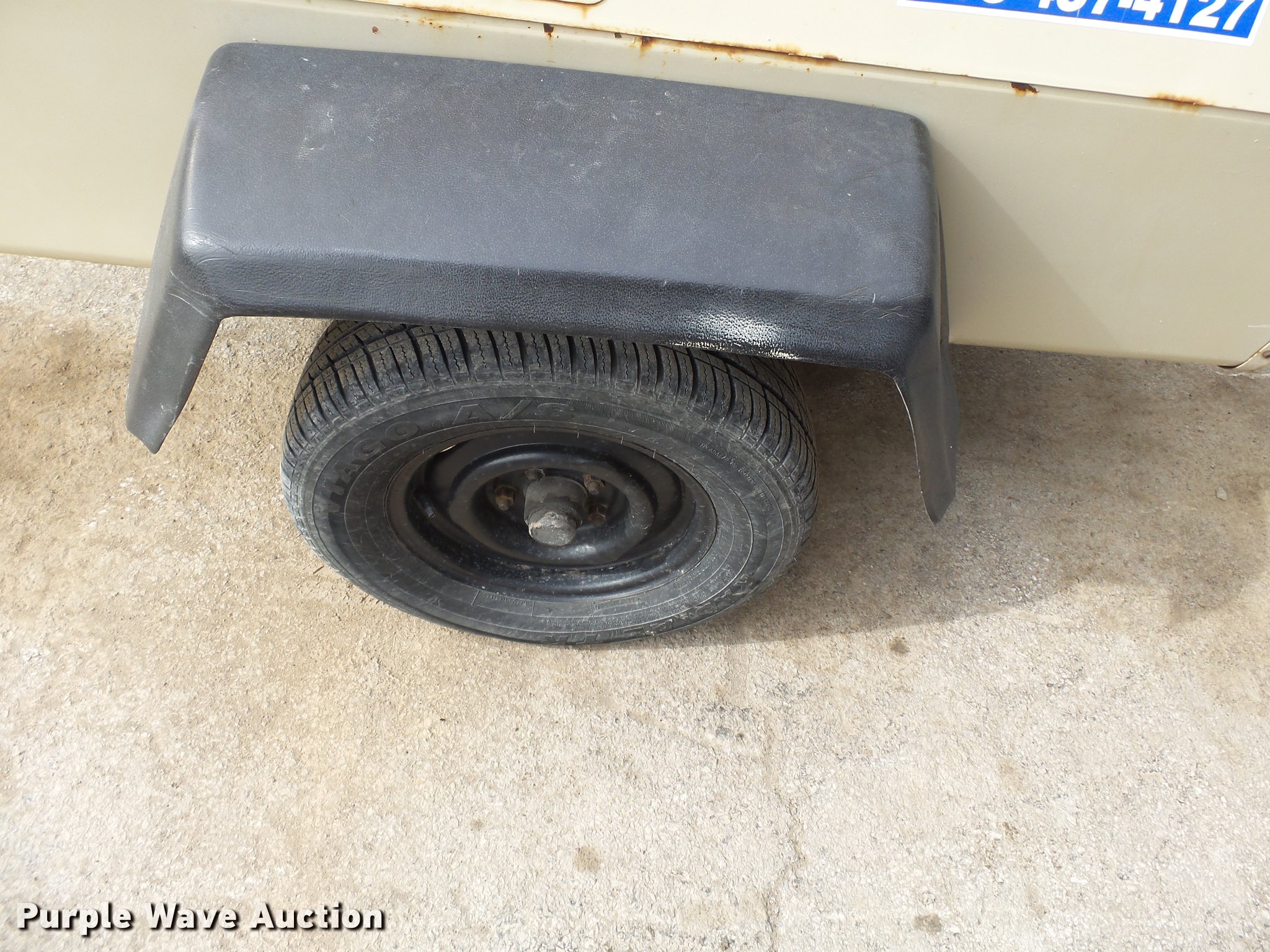 Purple Wave is selling a used Air Compressor in Illinois. This item is a Ingersoll Rand 100 air compressor with the following: 239 hours on meter, Hour meter replaced at 2,550 hours, Deutz F34011E four cylinder diesel engine, Serial 8209692, Ingersoll pump, 100 cfm, 2" ball hitch, P185/70R13 tires, Serial 208523U198