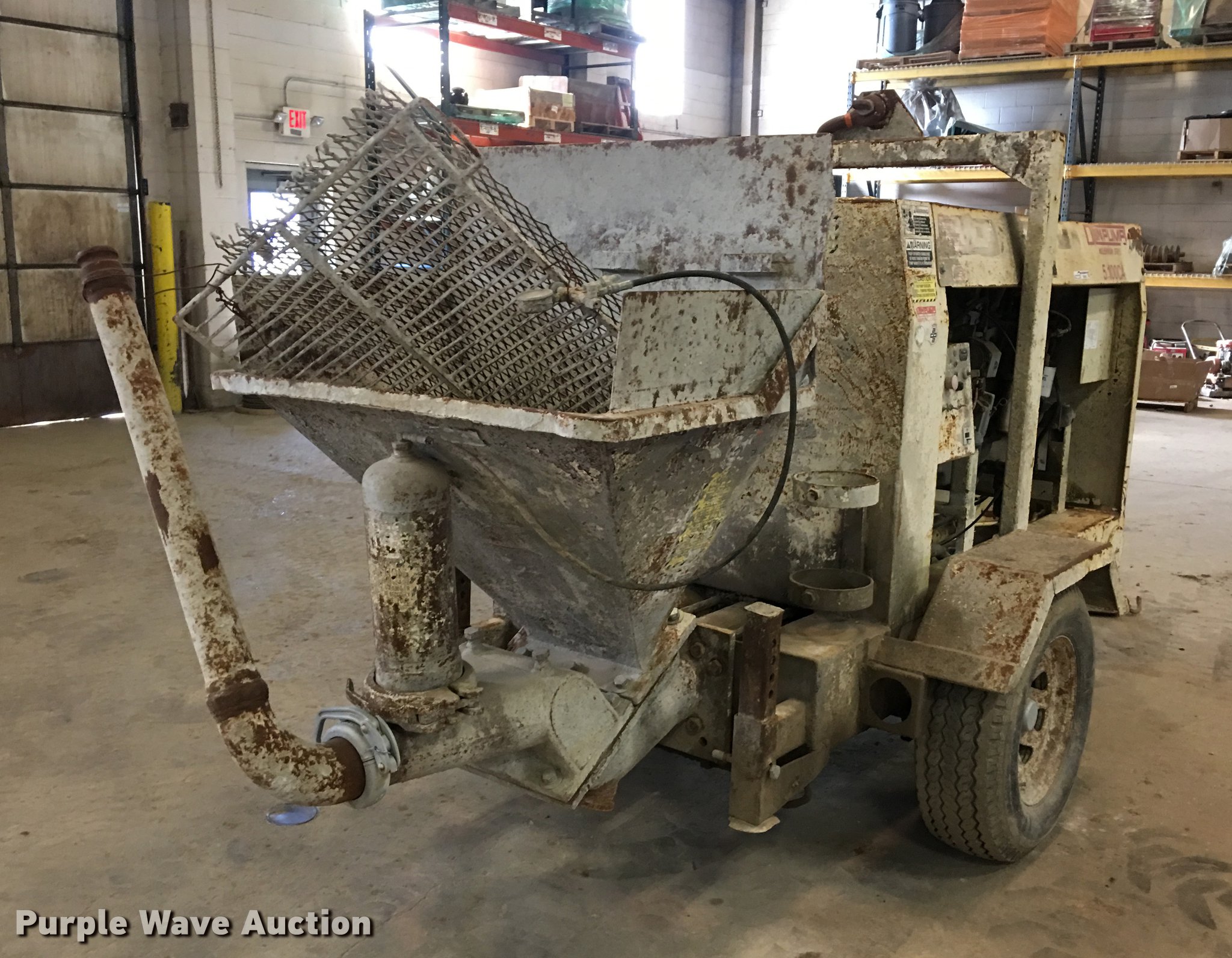 Purple Wave is selling a used Concrete Pump in Missouri. This item is a Olin 5100CA grout/concrete pump with the following: 1,898 hours on meter, Deutz four cylinder diesel engine, Dual piston pump, 4" outlet, Lifting eye, Rear stabilizer jacks, Tongue mounted jack, 2 5/16" ball hitch, Single axle, 9.50-16 tires, Service records available upon request, Serial 5100007