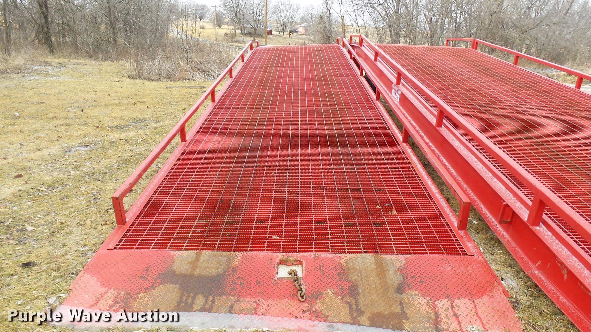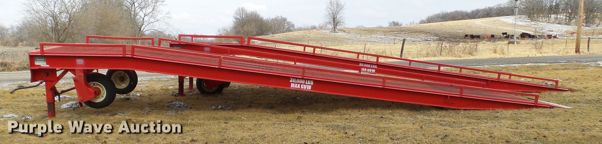 Purple Wave is selling a used Other Industrial or Business in Missouri. This item is a Dura-Ramp DR-M36B loading dock with the following: 95"W overall, 89" service width, 42" to 56" service height, 30,000 lbs capacity, Side safety rails, 13 percent grade, 9.5L-15 tires, Eight ply, 9,500 lbs weight, Serial 32158-103641