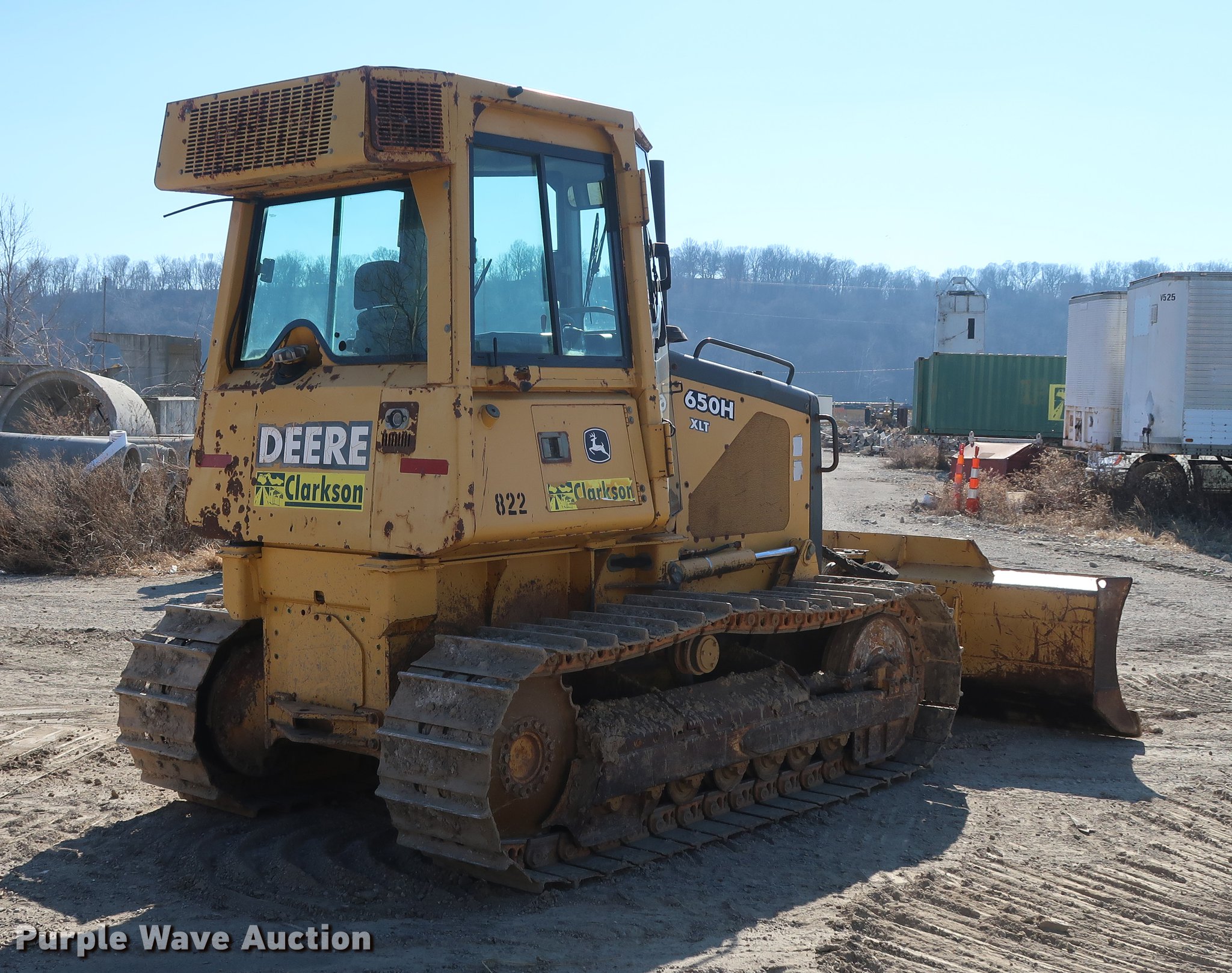 Purple Wave is selling a used Crawler Dozer in Missouri. This item is a 2004 John Deere 650H dozer with the following: Approximately 10,000 hours on unit, Hour meter replaced at 6,250 hours, John Deere 4045 4.5L four cylinder turbo diesel engine, Hydrostatic transmission, Cab, AC and heat, AM/FM, Suspension seat, Joystick control steering, Front wiper, Front work lights, 115"W six-way dozer blade, Seven bottom rollers, 20"W single grouser track pads, Under carriage replaced December 2016, View oil sample report, Serial T0650H2932880, Unit# 822