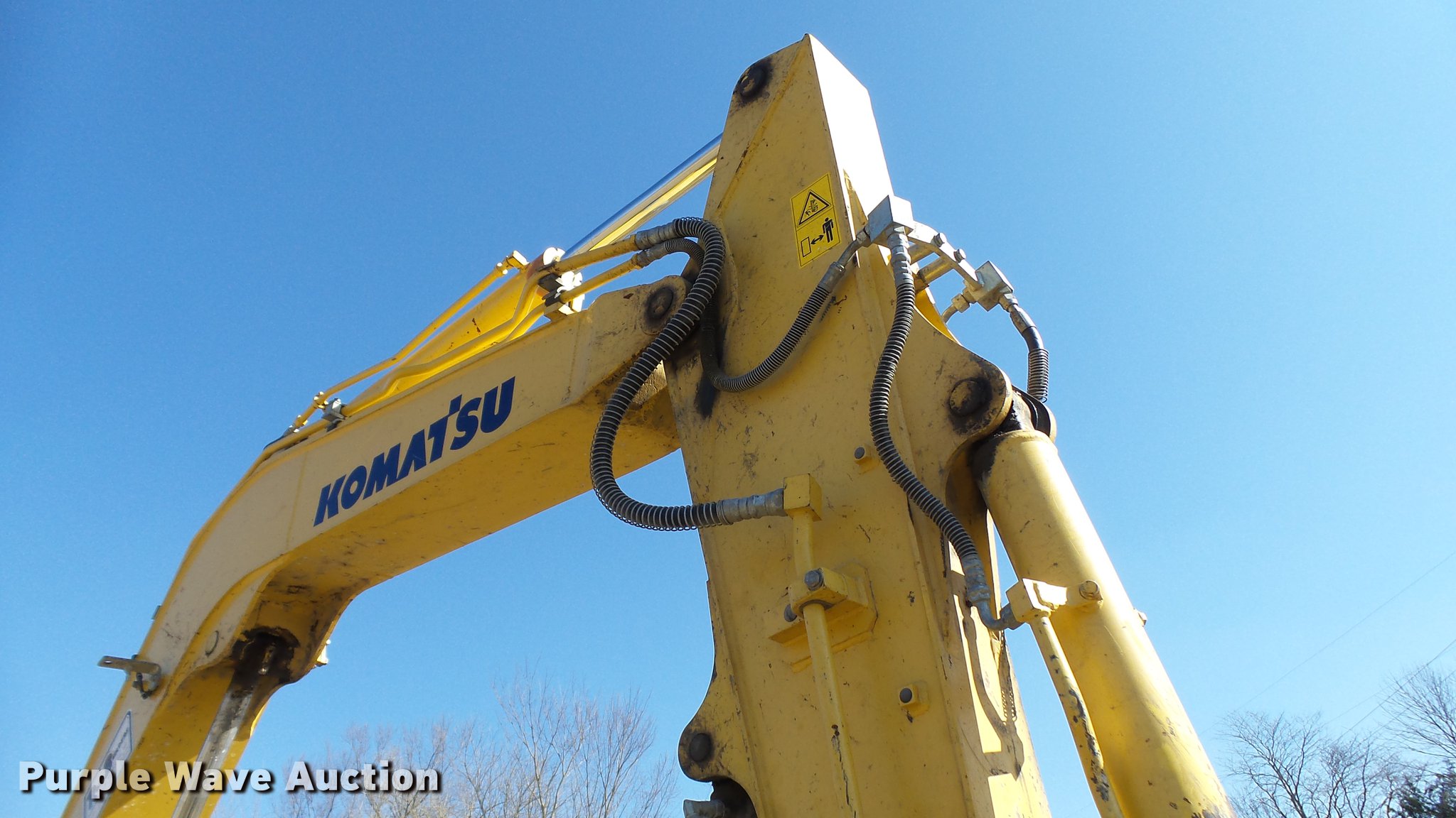 Purple Wave is selling a used Mini Excavator in Missouri. This item is a 2011 Komatsu PC88MR-8 mini excavator with the following: 2,421 hours on meter, Komatsu SAA4D95LE-5 199 C.I.D. four cylinder turbo diesel engine, 65 HP, Two speed hydrostatic transmission, EROPS, AC and heat, AM/FM/weatherband, Suspension seat, Pattern changer, Front work lights, Wipers, Standard boom, 73" stick length, Two-way high flow auxiliary hydraulics, WB mechanical quick coupler, WB hydraulic thumb, WB 36"W bucket, 92"W backfill blade, Five bottom rollers, 18"W rubber tracks, 18,562 lbs. base operating weight, 24"W bucket on unit not included, Serial 5723