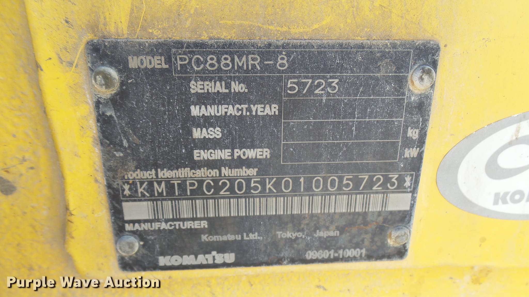 2011 Komatsu PC88MR-8 mini excavator has sold in Holt, Missouri for $58300. Item DP9589 sold on March 8th, 2018.