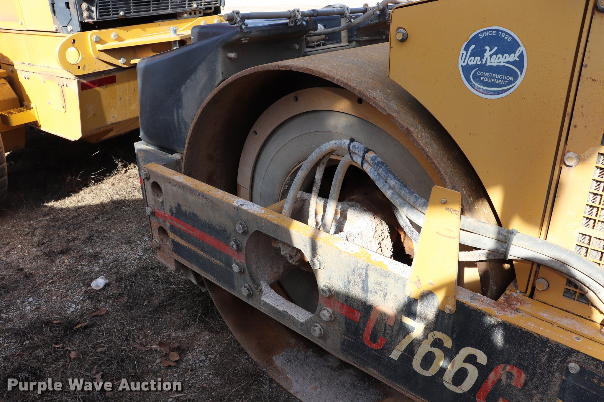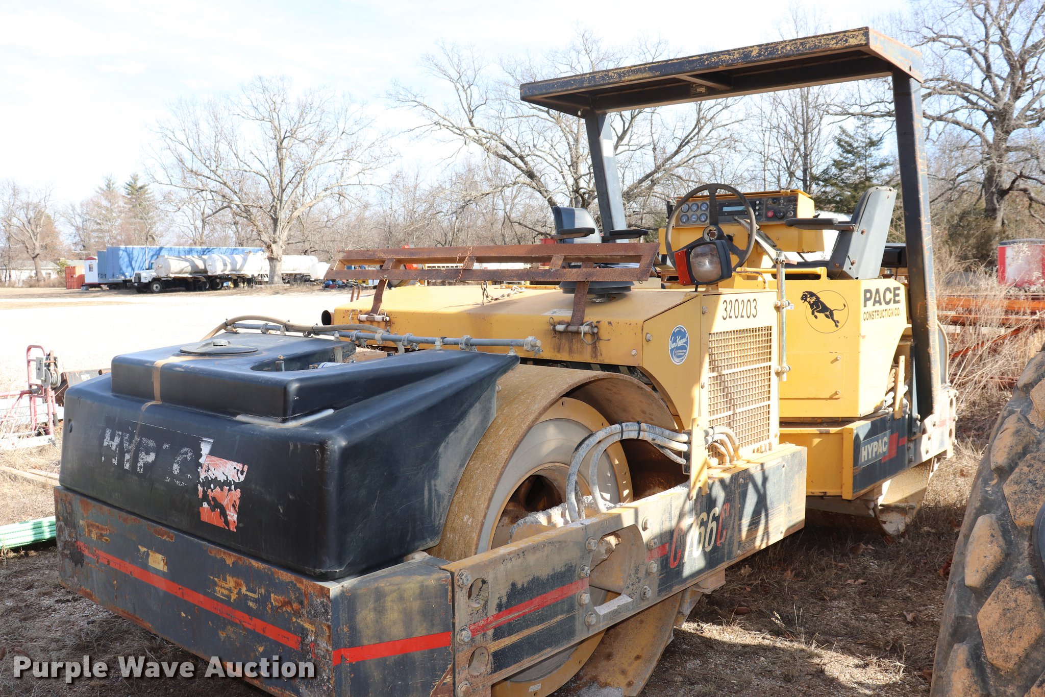 Purple Wave is selling a used Double Drum Roller Compactor in Missouri. This item is a Hypac C766C vibratory double drum roller with the following: 5,392 hours on meter, Cummins 4B 3.9L four cylinder turbo diesel engine, 130 HP, Hydrostatic transmission, OROPS, Dual operator stations, Suspension seat, Vandal cover, 66"W x 48" diameter smooth drums, Double two speed vibratory system, Independent drum controls, Front and rear drum scrapers, Front and rear water application, Rear drum hydraulic leak, Serial 109C20902471