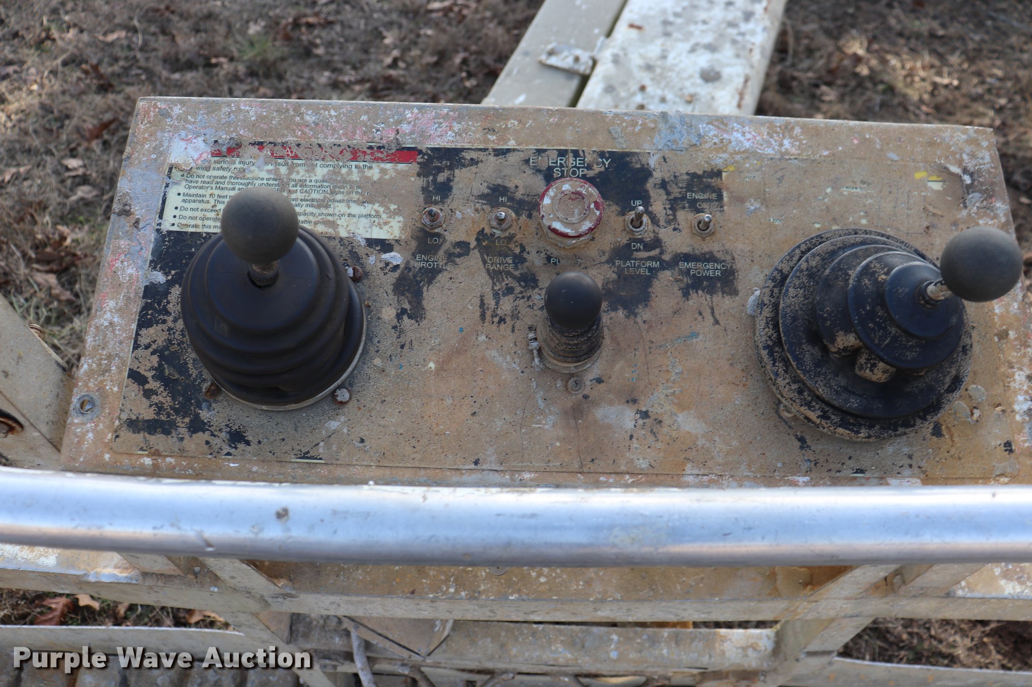 Purple Wave is selling a used Boom Lift in Missouri. This item is a 1997 Snorkelift TB-A80RDZ boom lift with the following: 4,774 hours on meter, Deutz F4L-1011 four cylinder diesel engine, Four wheel drive, 600 lbs maximum lift capacity, 71.1' maximum reach, 80' maximum lift height, 92"L x 30"W platform, Platform and ground controls, AC power outlet, Hydraulic platform rotation, Safety alarm, 385/65R22.5 pneumatic tires, Serial 9703590397