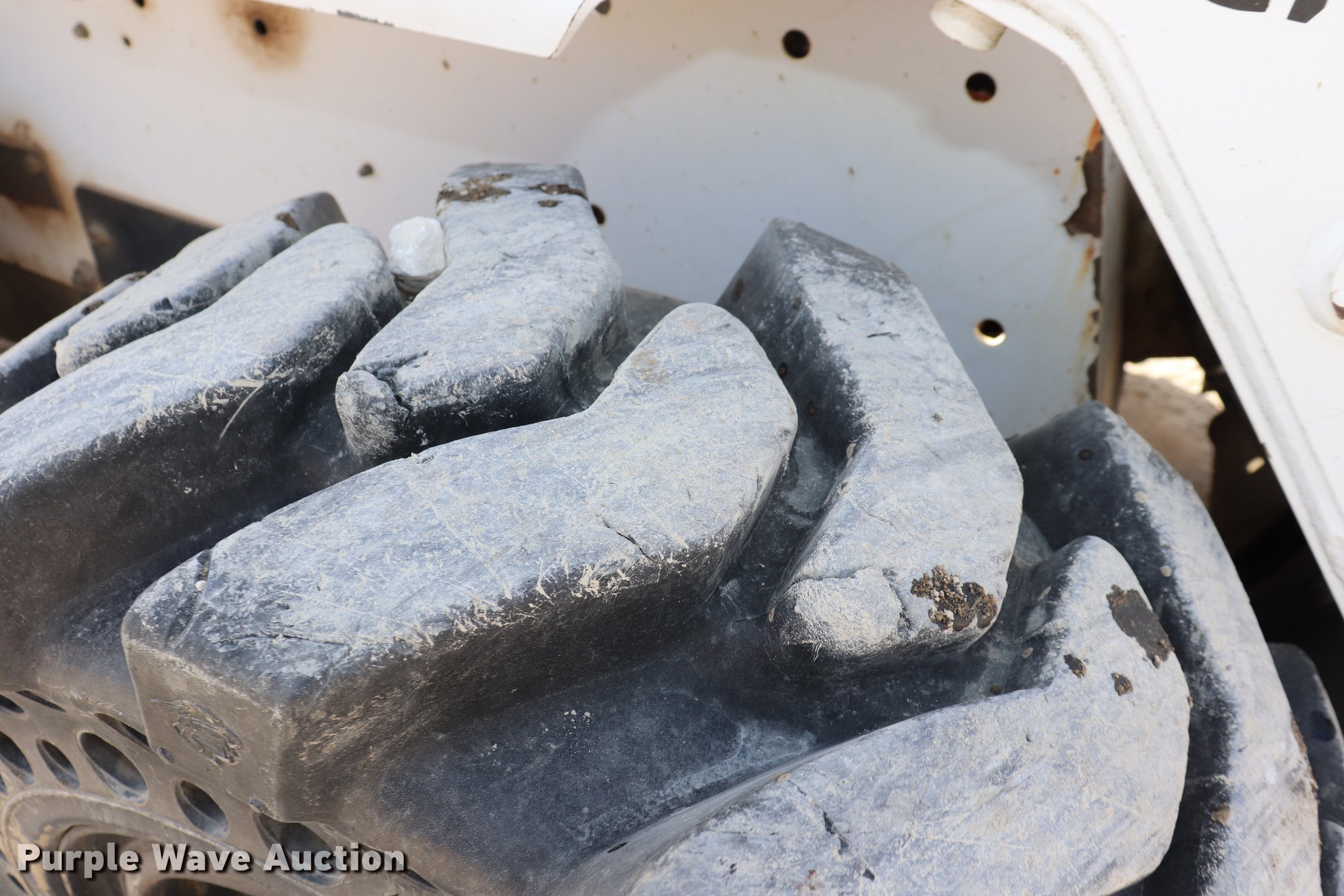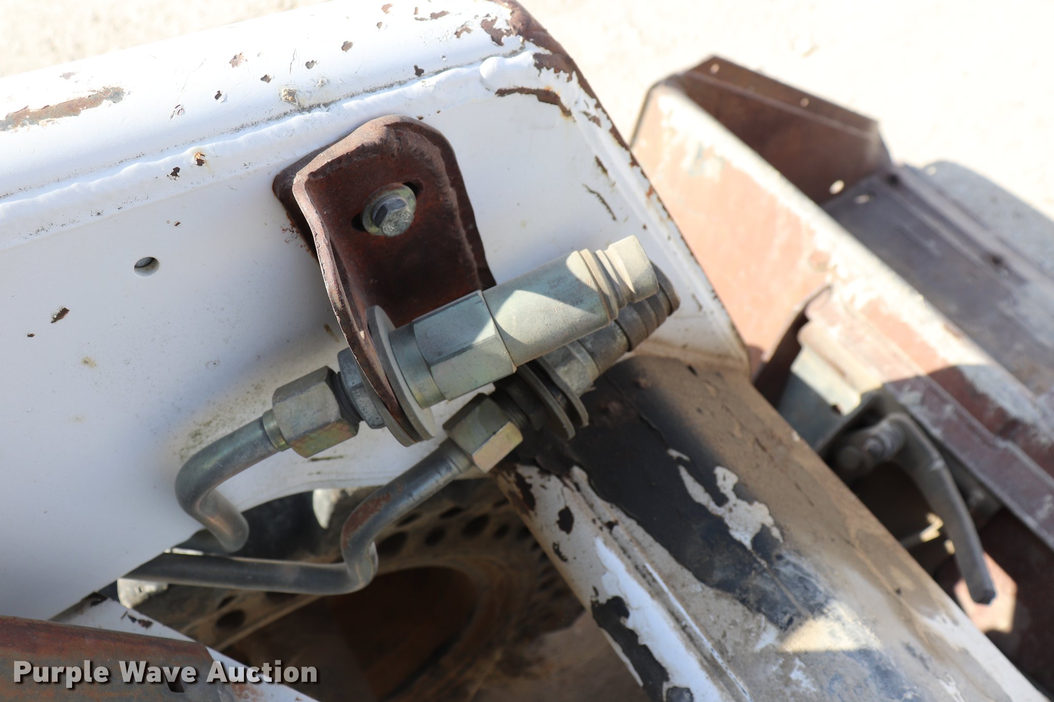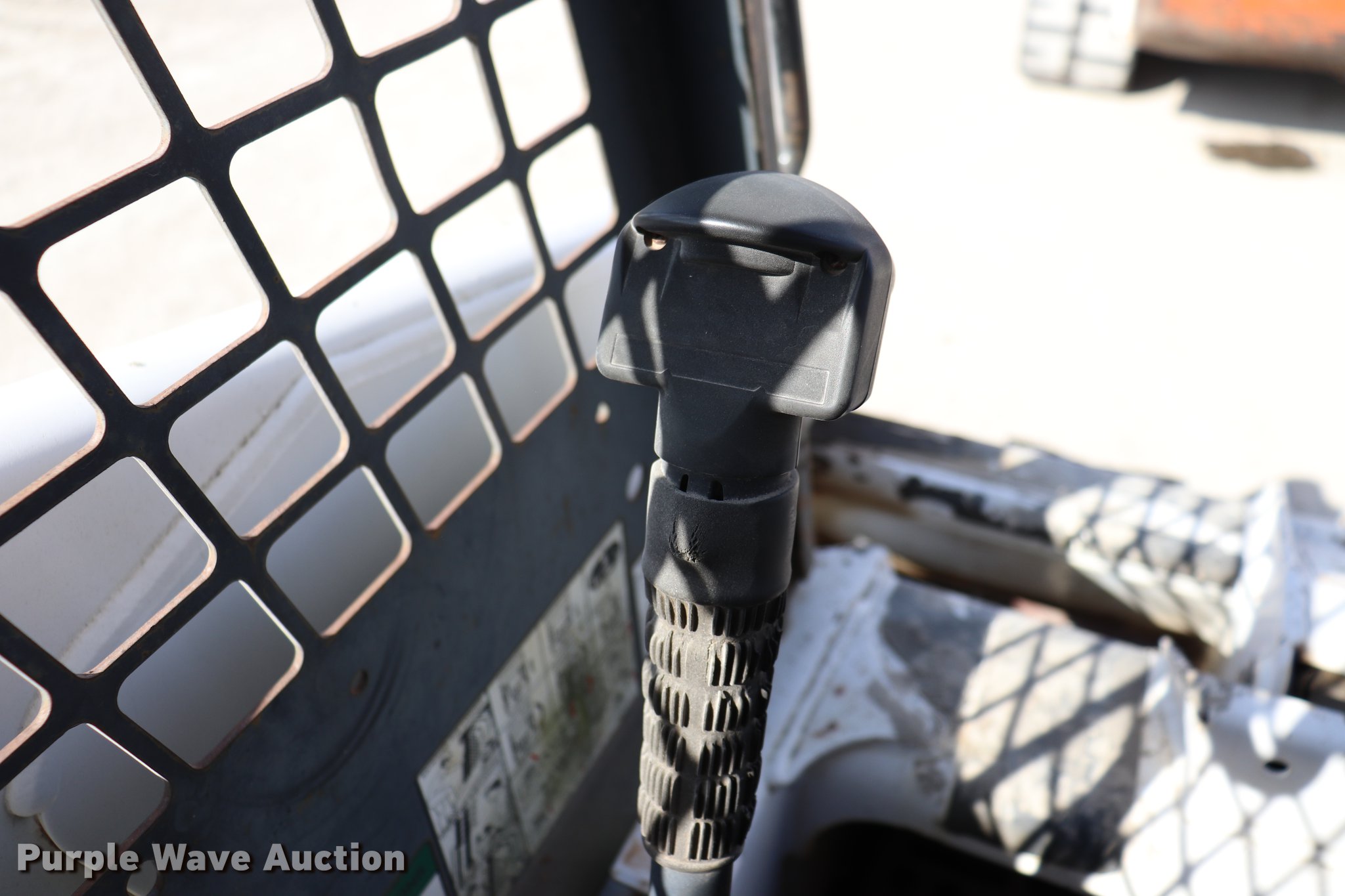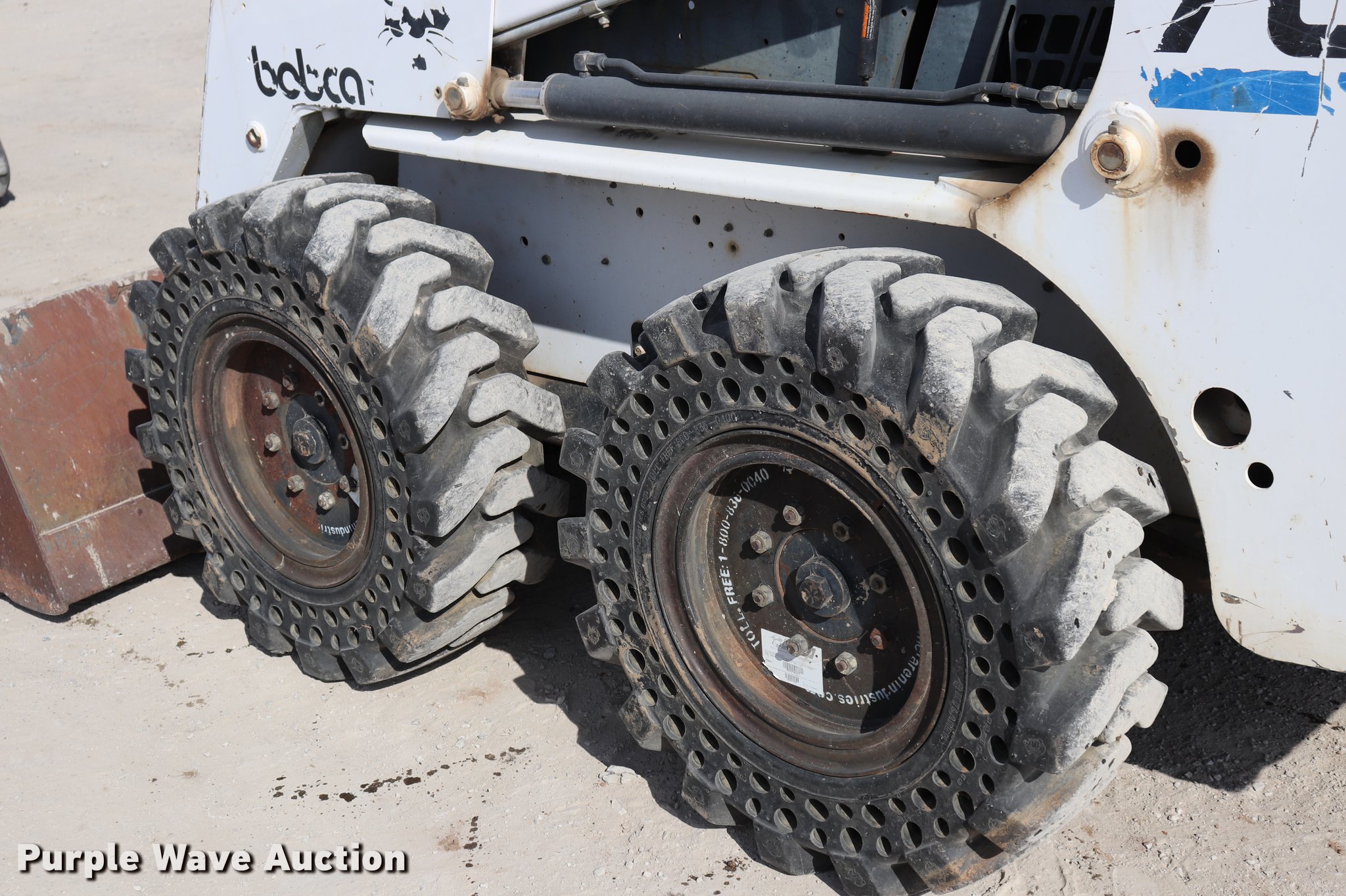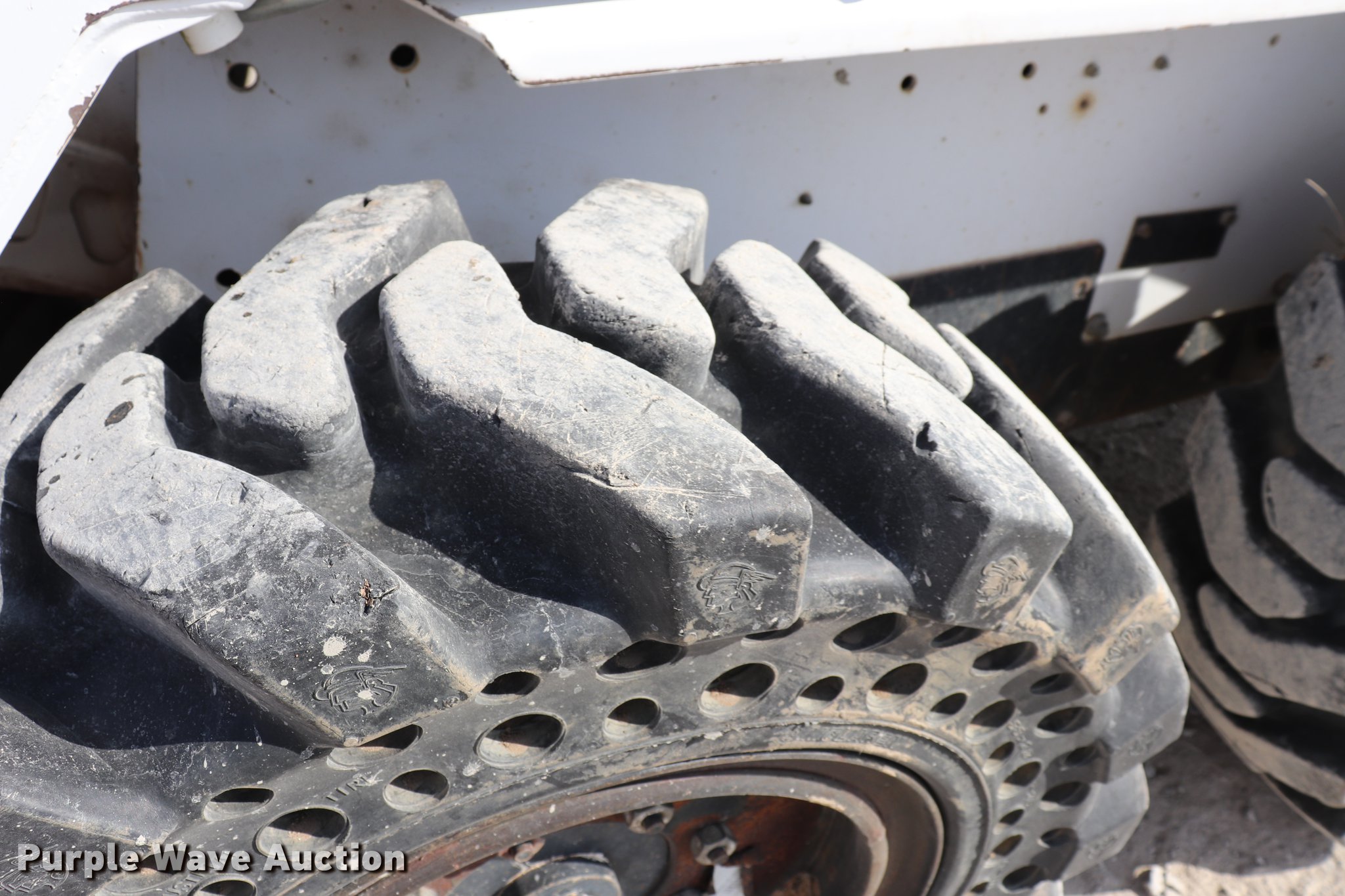 Purple Wave is selling a used Skid Steer Loader in Oklahoma. This item is a 1998 Bobcat 763 skid steer with the following: 1,408 hours on meter, Kubota four cylinder diesel engine, Hydrostatic transmission, Enclosed cab, Hand and foot controls, Spring suspension seat, Front work lights, 67"W bucket, Bolt-on cutting edge, Manual quick coupler, Auxiliary hydraulics, 33 x 12-16 solid tires, Cylinder leak, Bucket on unit not included, Serial 512230602