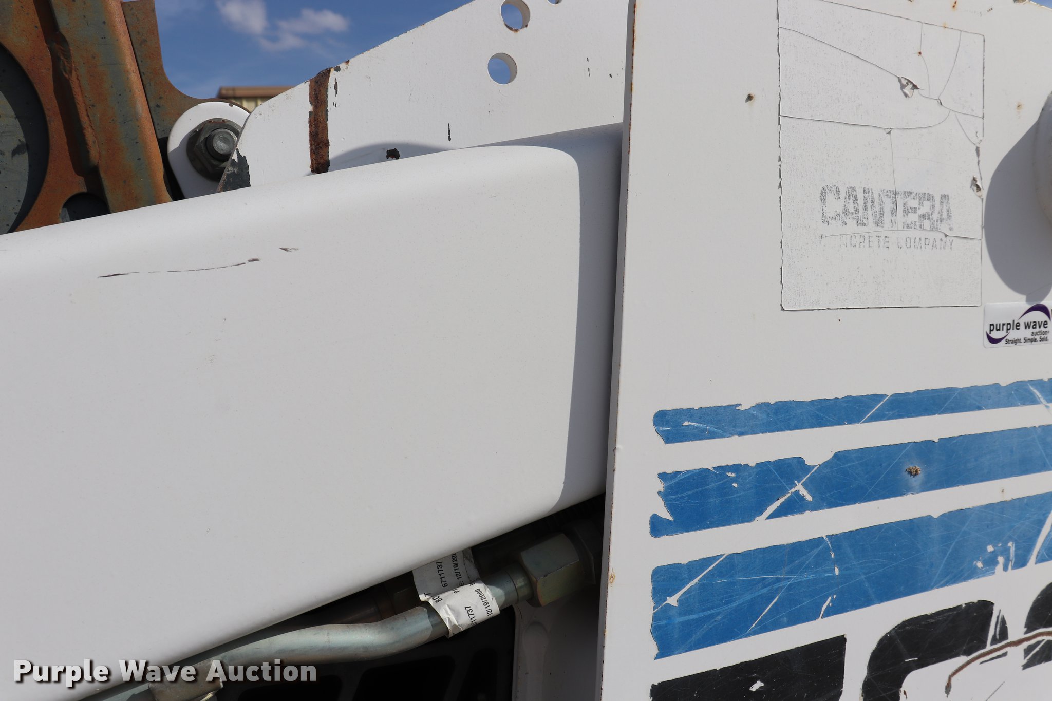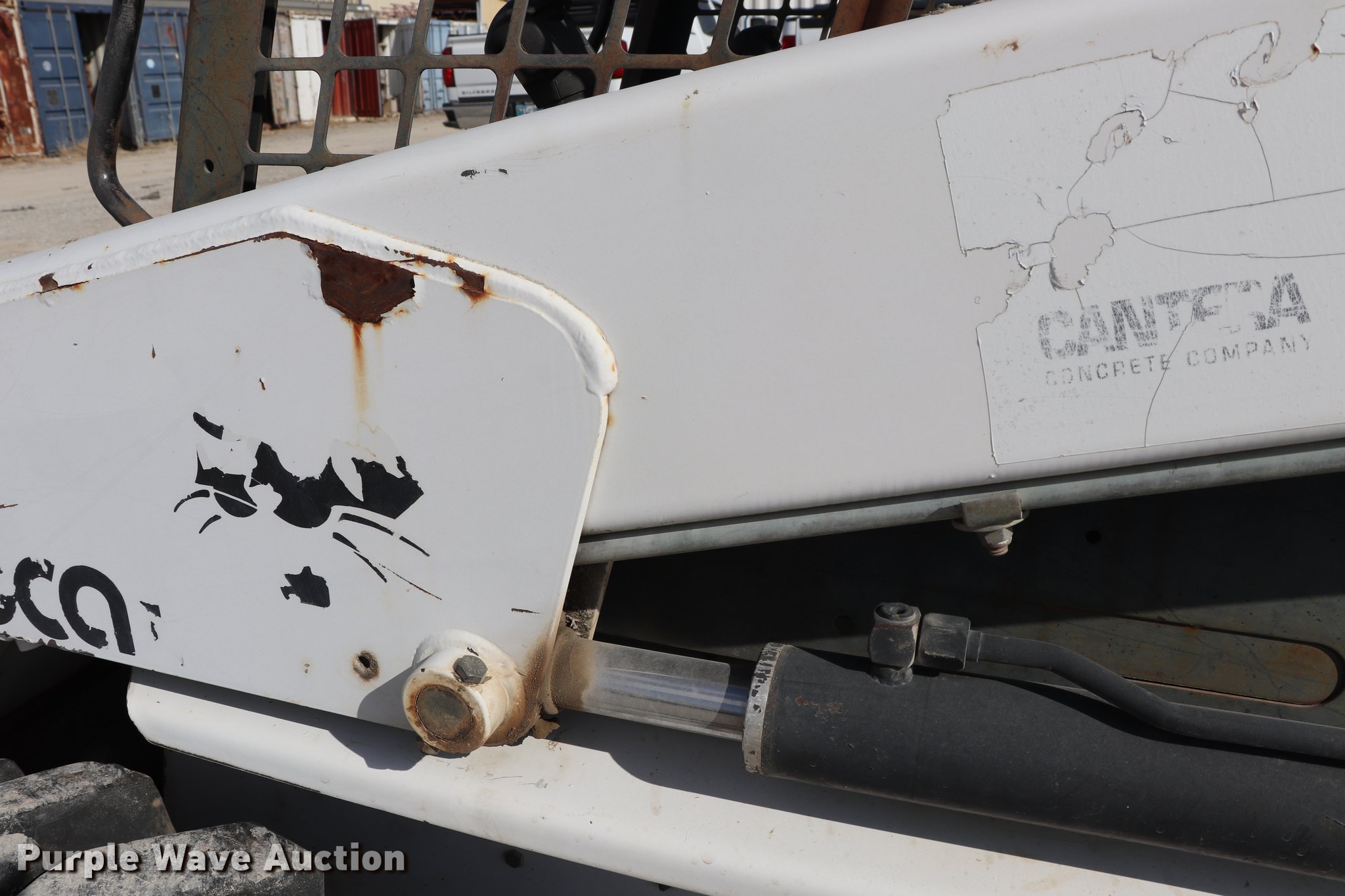 1998 Bobcat 763 skid steer. 1,408 hours on meter, Kubota four cylinder diesel engine, Hydrostatic transmission, Enclosed cab Hand and foot controls, Spring suspension seat, Front work lights, 67"W bucket Bolt-on cutting edge, Manual quick coupler, Auxiliary hydraulics, 33 x 12-16 solid tires, Cylinder leak, Bucket on unit not included, Serial 512230602. Cantera Concrete Company LLC. 5601 S 122nd E Ave. Tulsa, OK 74146