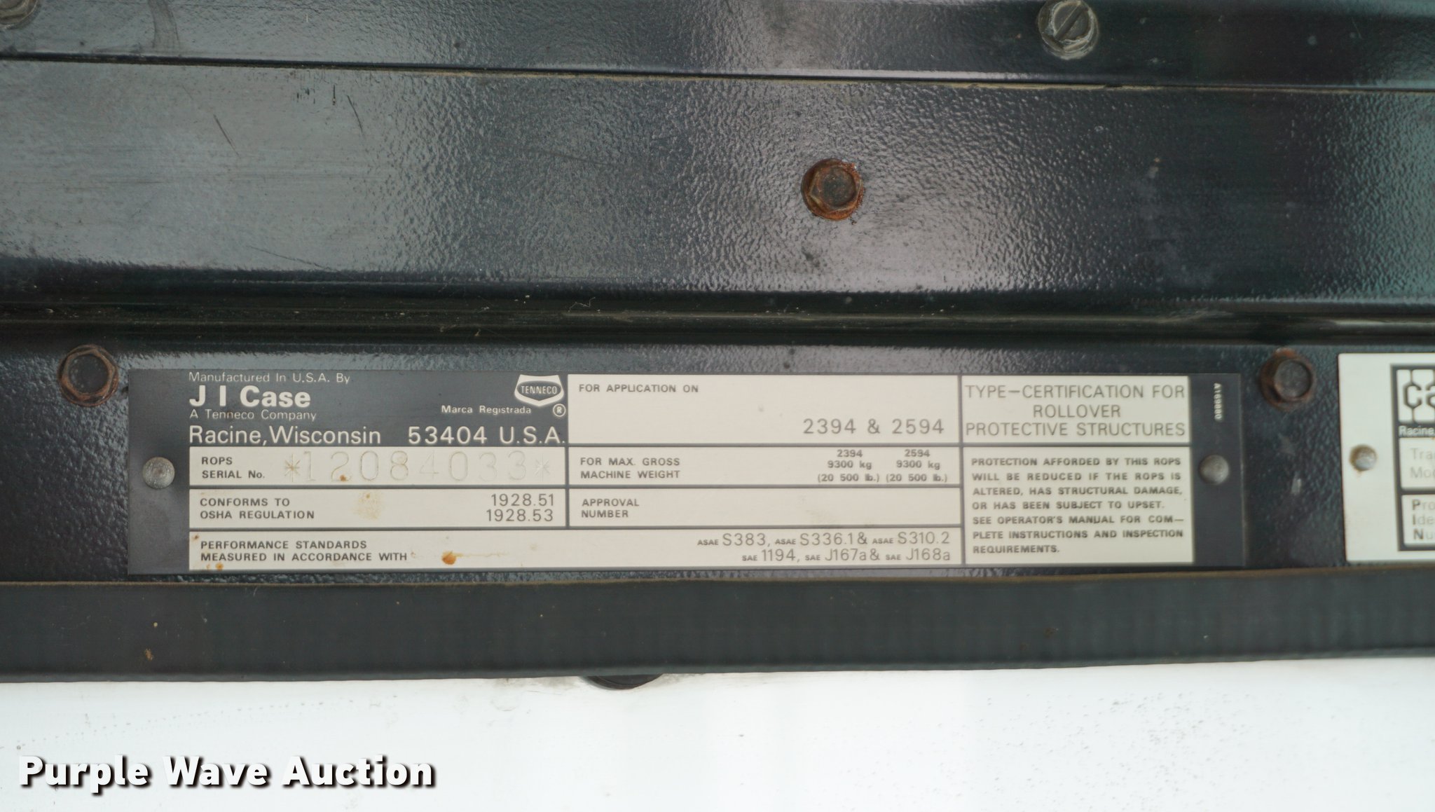 Purple Wave is selling a used Tractor in Kansas. This item is a 1983 Case IH 2394 tractor with the following: 6,854 hours on meter, Case 8.3L six cylinder turbo diesel engine, 197 HP, Serial 10351407, Powershift transmission, 24F-3R gears, AC and heat, Tilt steering wheel, AM/FM, Suspension seat, Radar, Three point, Top link, 1000 PTO, (3) rear hydraulic remote sets, 14-18.1 front tires, 18.4R42 rear tires, Serial 9929552