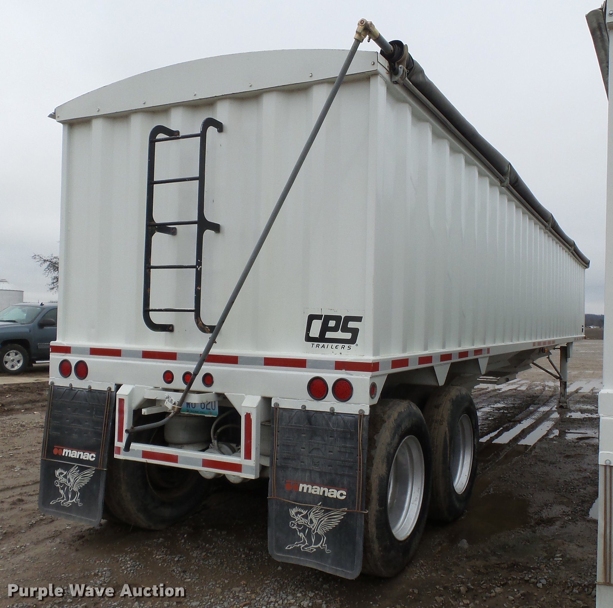 Purple Wave is selling a used Grain or Commodity Trailer in Missouri. This item is a 2008 Manac double hopper bottom grain trailer with the following: 40'L x 96"W, 62" side height, Manual trap gates, Front and rear ladders, Front platform, Shurco Shur-Lok roll tarp, Air suspension scale, Steel construction, Fifth wheel plate, Dual leg two speed landing gear, Air suspension, Air brakes, Tandem axle, Steel innner wheels, Aluminum outer wheels, 11R24.5 tires