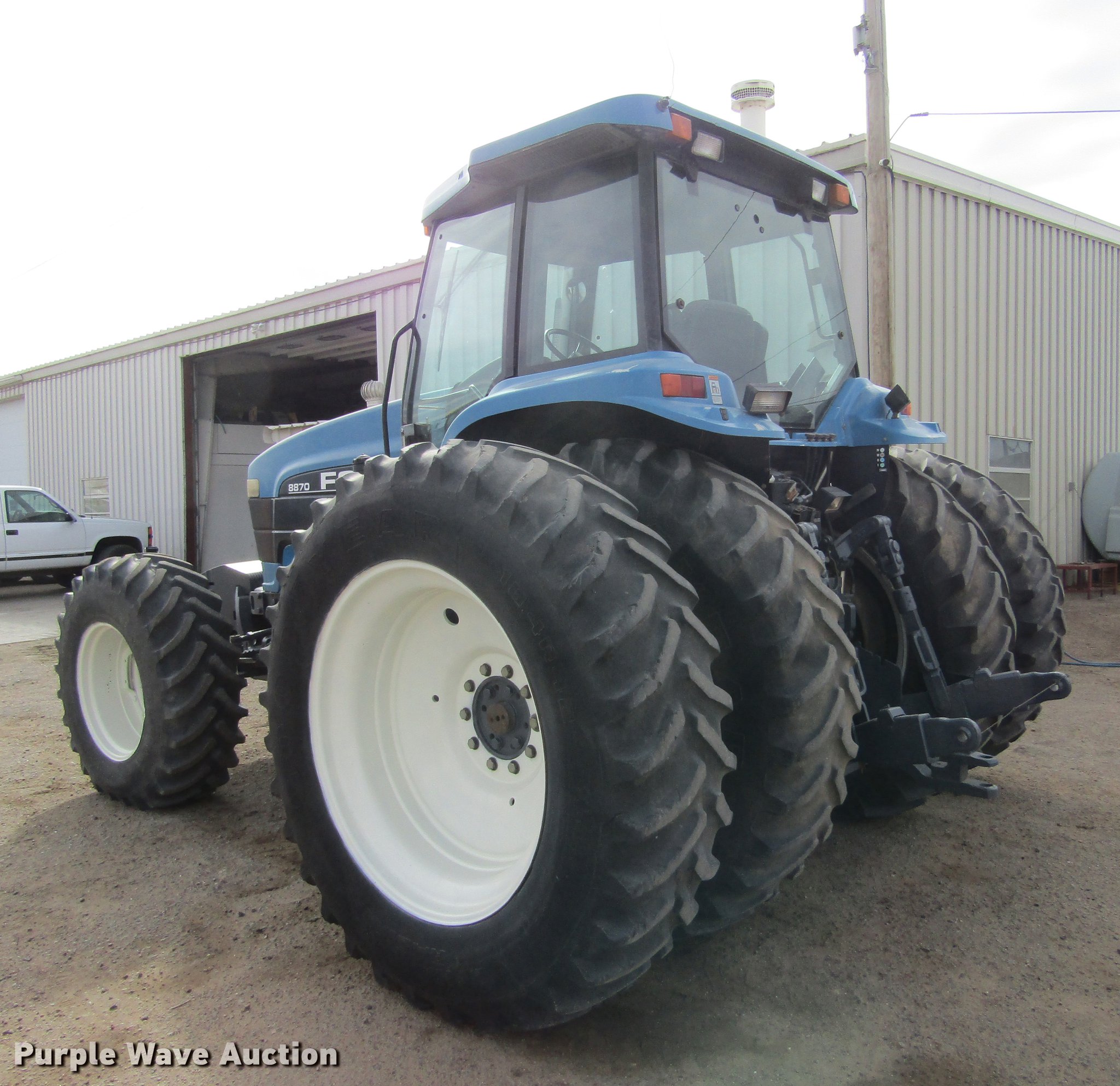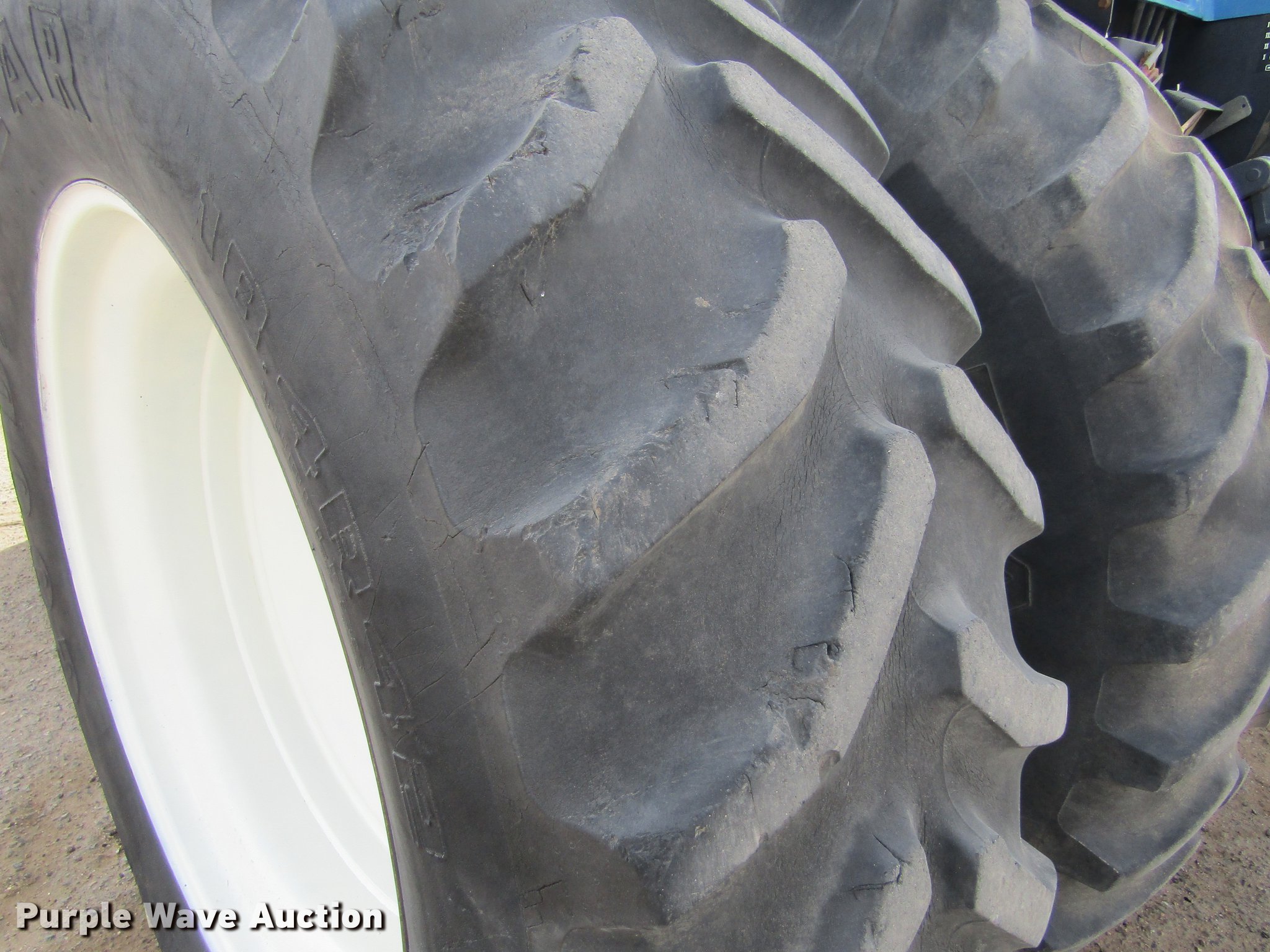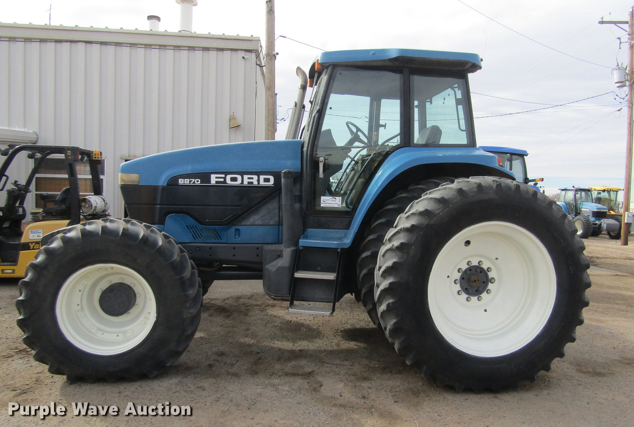 Purple Wave is selling a used Tractor in Kansas. This item is a 1994 Ford New Holland 8870 MFWD tractor with the following: 8,304 hours on meter, New Holland Constant Power Plus six cylinder turbo diesel engine, Serial VA439950, Powershift transmission, 16F-3R gears, AC and heat, Tilt steering wheel, AM/FM, Air suspension seat, Three point, Seven pin outlet, 1000 PTO, (4) rear hydraulic remote sets, (22) suitcase weights, Wheel weights, 420/85R28 front tires, 18.4R42 dual rear tires, Unknown operating condition of PTO, Hydraulic oil leak, Non-operational PTO and three point, possible electrical issue, Serial D400941