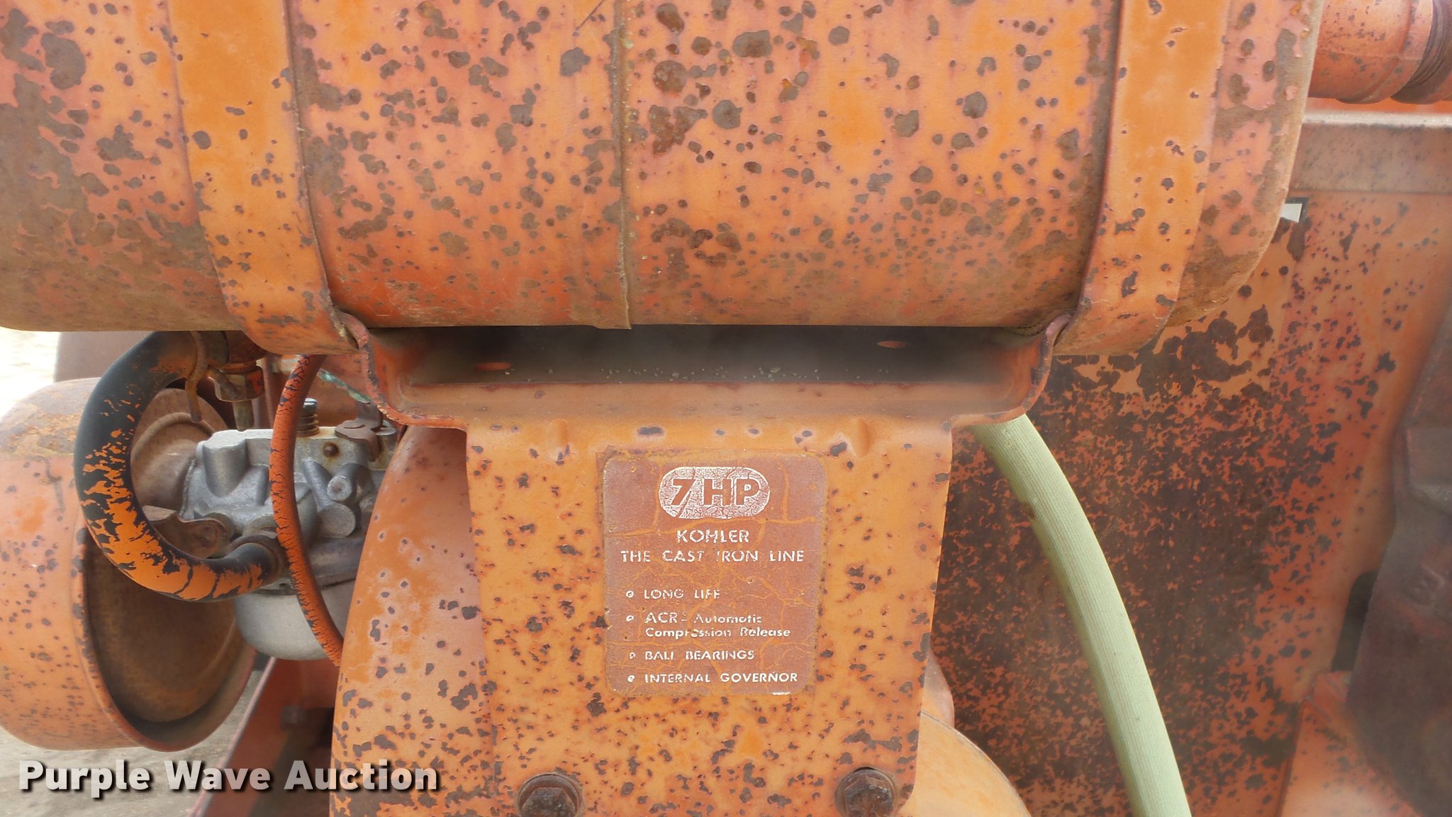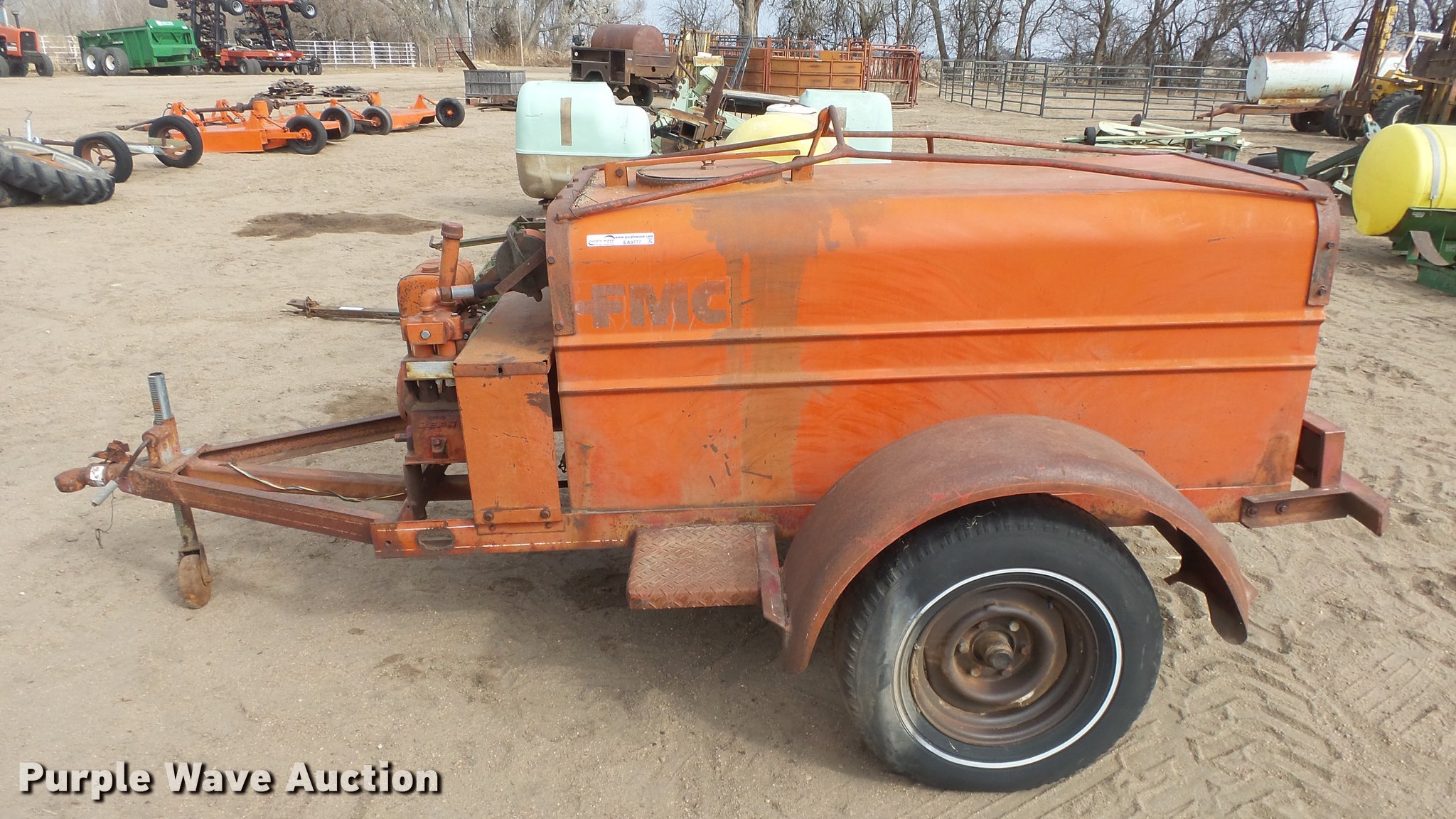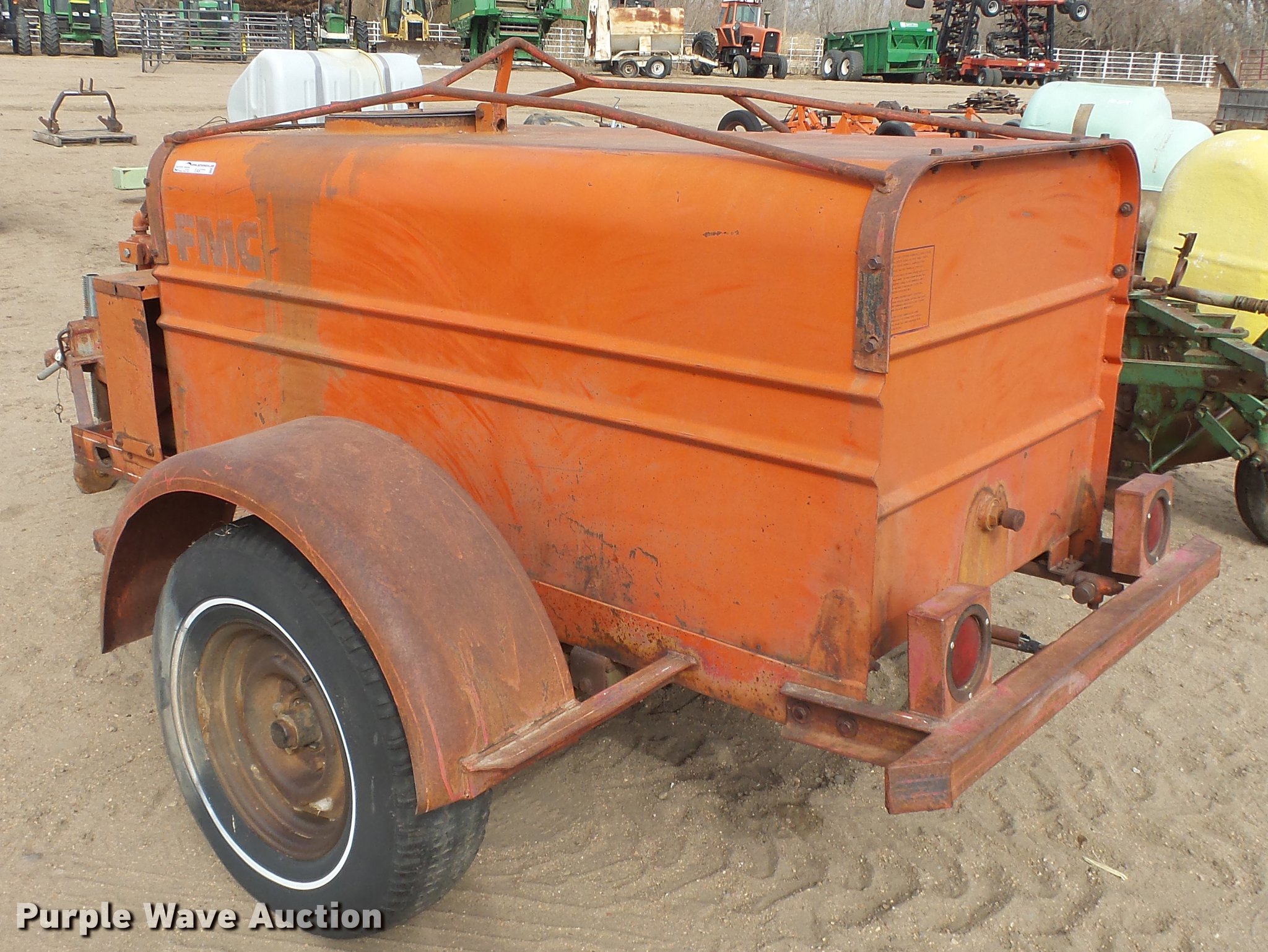 Purple Wave is selling a used Pump in Kansas. This item is a FMC Bean R10 pump with the following: Approx. 6'L x 36"W tank, Kohler 7 HP gas engine, Ball hitch, Spring suspension, Single axle, 225-15 tires