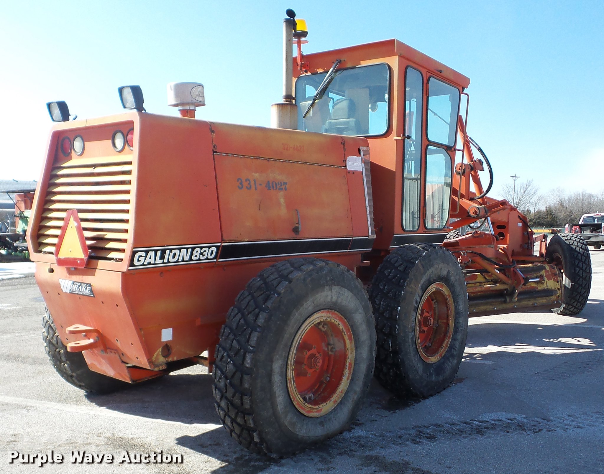 Purple Wave is selling a used Motor Grader in Kansas. This item is a 1997 Galion 830B motor grader with the following: 2,921 hours on meter, Cummins 5.9L L6 turbo diesel engine, Powershift transmission, 6F-3R gears, EROPS, AC and heat, AM/FM, Suspension seat, Ten control valves, Front work lights, 12'W moldboard, Tip control, Side shift, Circle slip clutch, Dymax front mounted lift group, Michelin 14.00R24 tires, Serial 3380020U202896, KDOT ID 331-4027