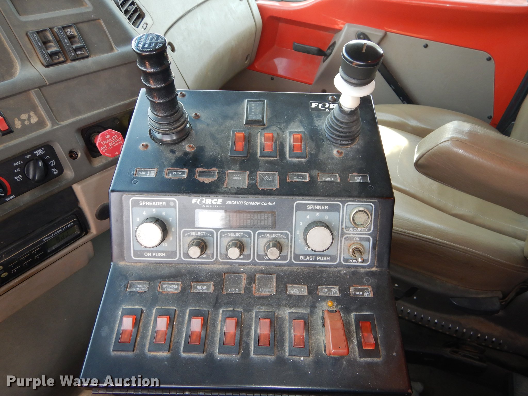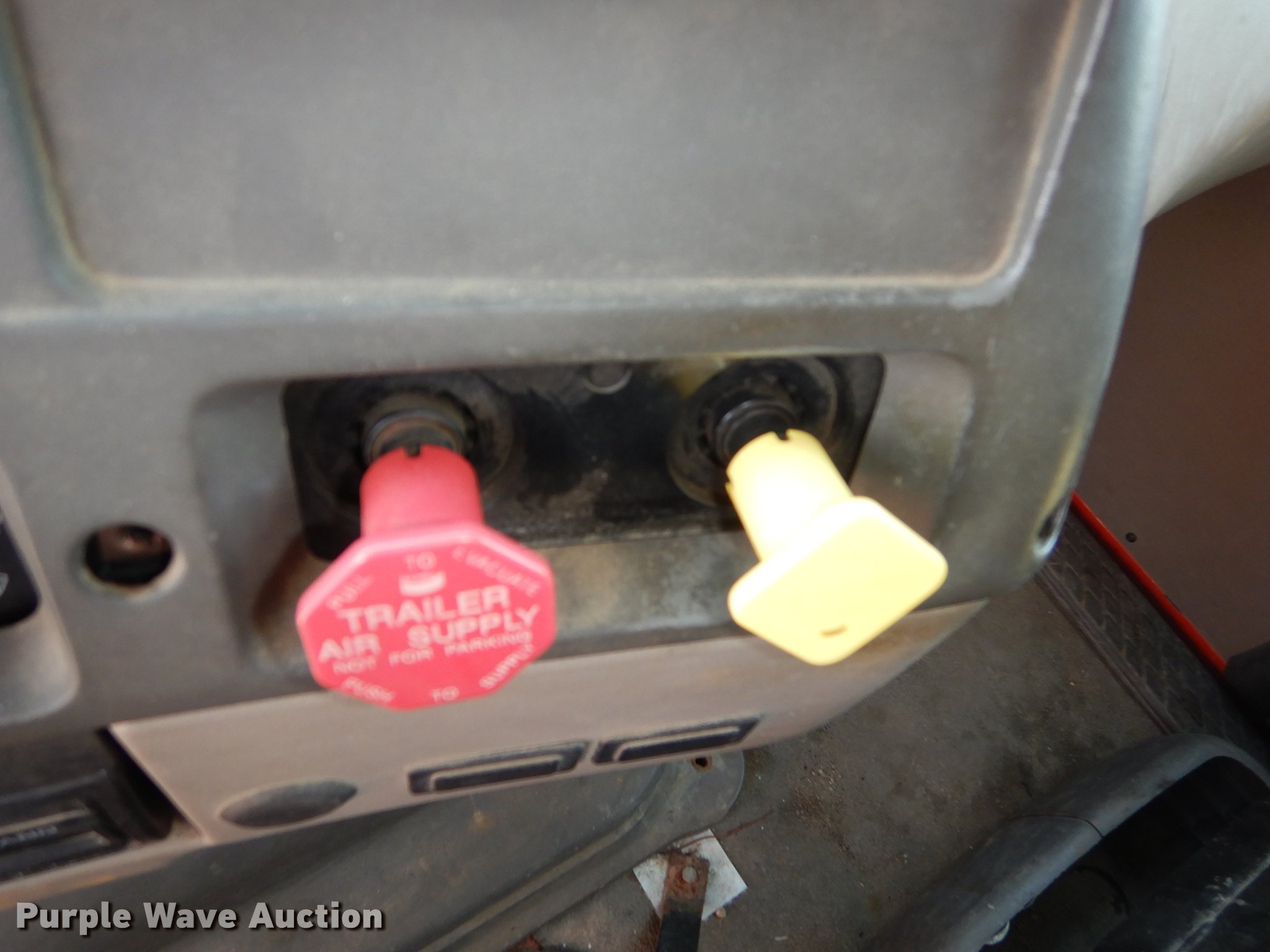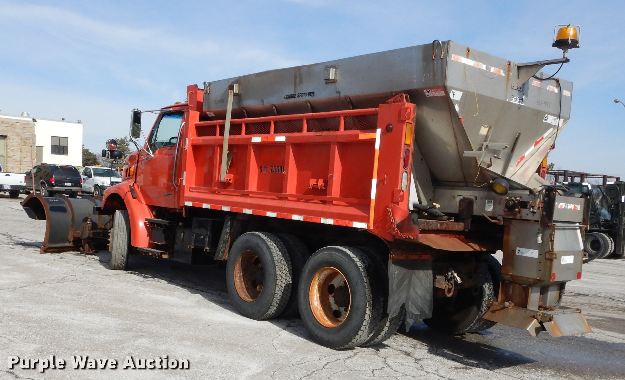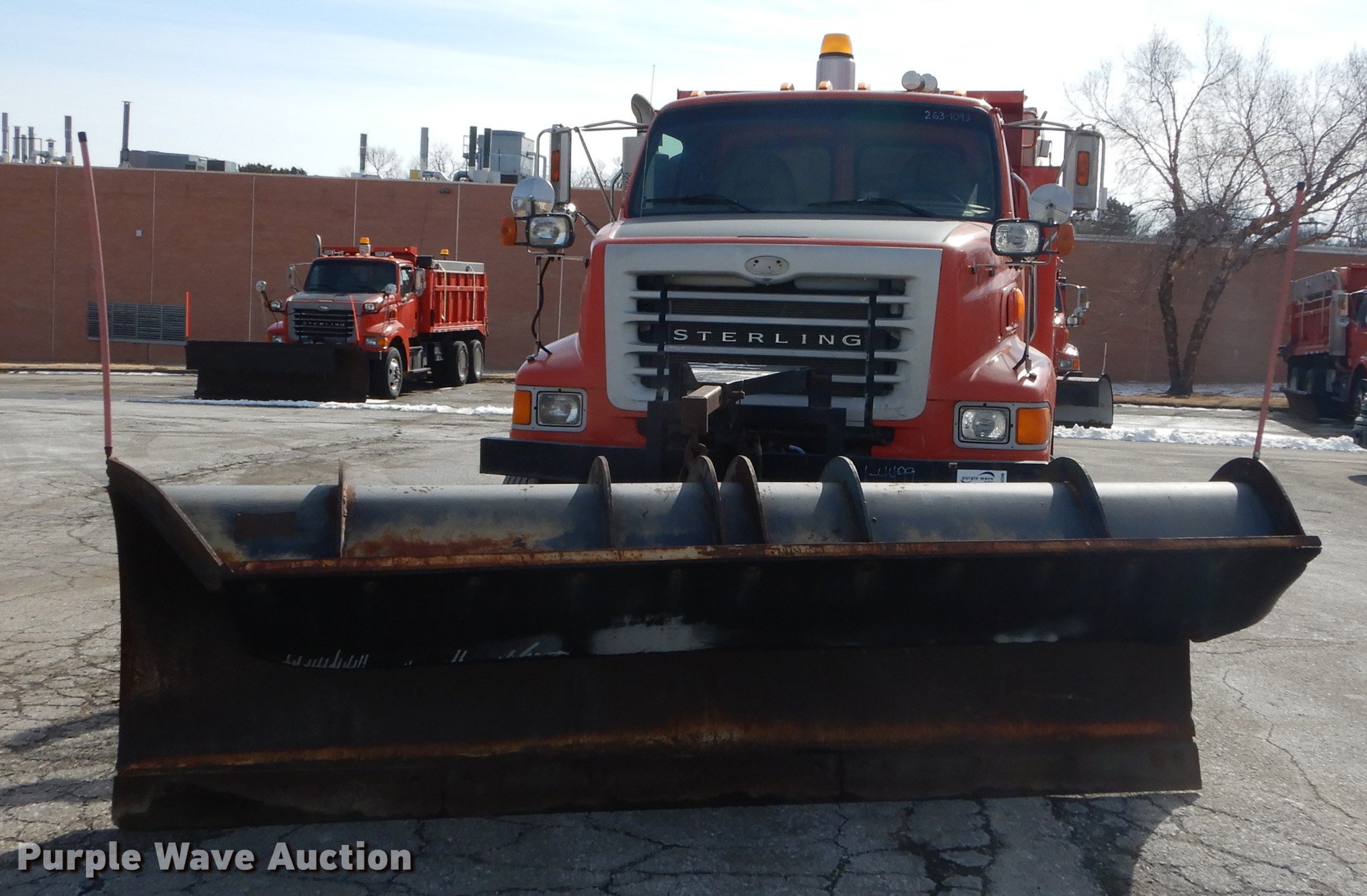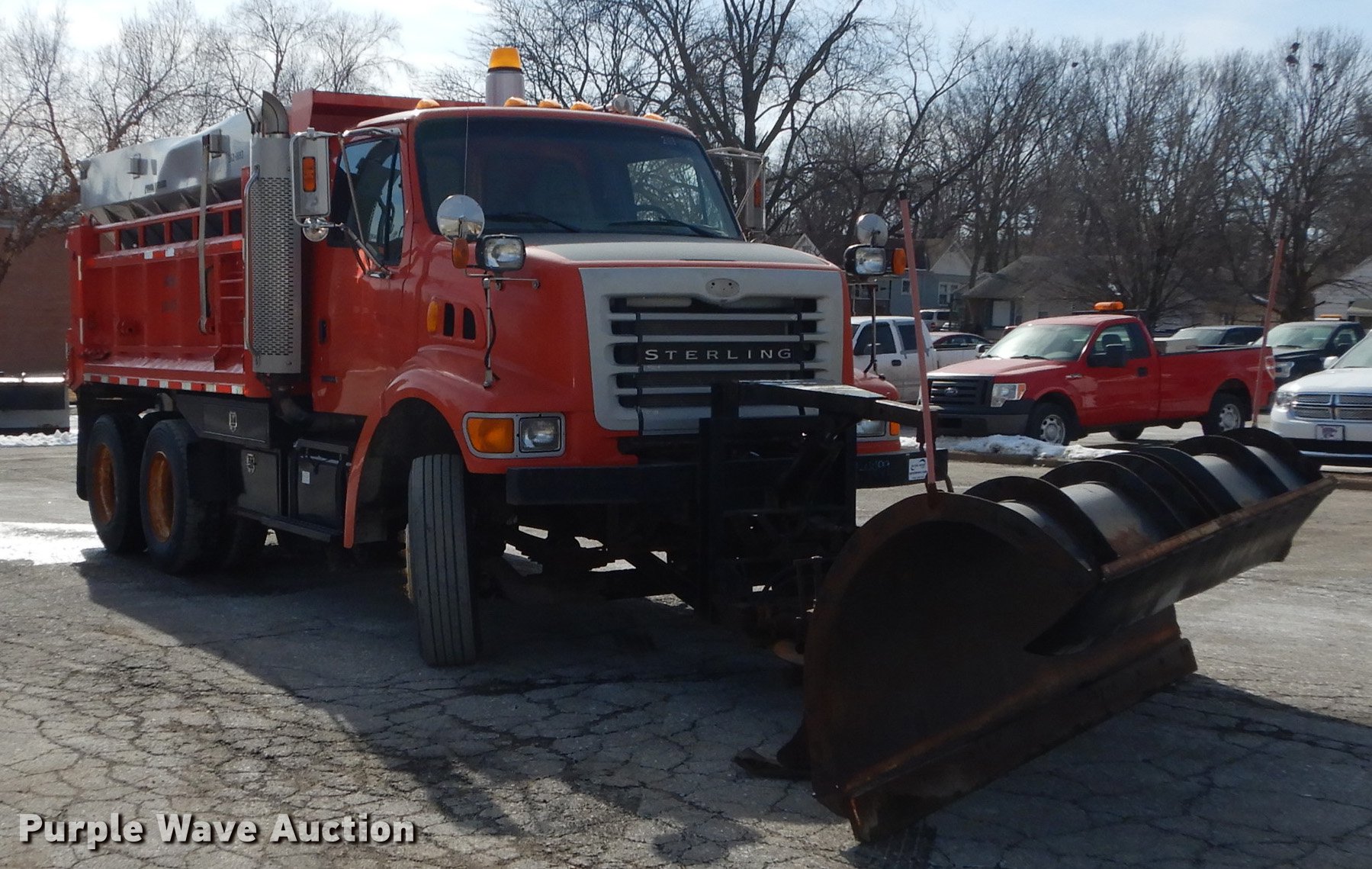 Purple Wave is selling a used Construction Dump Truck in Kansas. This item is a 2003 Sterling LT7500 dump truck with the following: 148,032 miles on odometer, 7,233 hours on meter, Caterpillar 3126 7.2L L6 turbo diesel engine, 250 HP, Serial HEP18589, Eaton Fuller Autoshift automatic transmission, Inter-axle differential lock, Tandem axle, AC and Heat, Cruise, AM/FM/Weather band, Heated mirrors, Air suspension seat, Front mounted PTO, Block heater, 13'L x 96"W steel dump bed, 40" side height, Single ram hoist, Air operated end gate, Toolboxes, Nine cu.yd. capacity spreader, Valk 11'W snow plow, Single fuel tank, Pintle hitch, Spring suspension, Air brakes, 275/80R22.5 tires, GVWR 53,880 lbs, FAWR 13,880 lbs, IAWR 20,000 lbs, RAWR 20,000 lbs, KDOT ID 263-1093, 603-1462