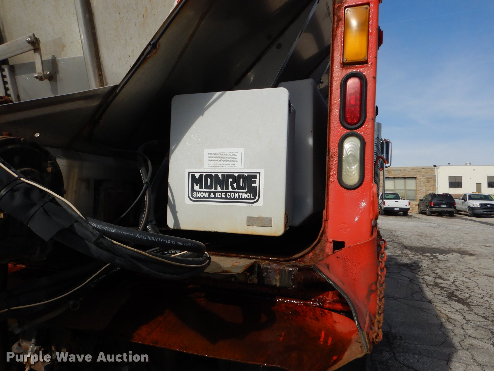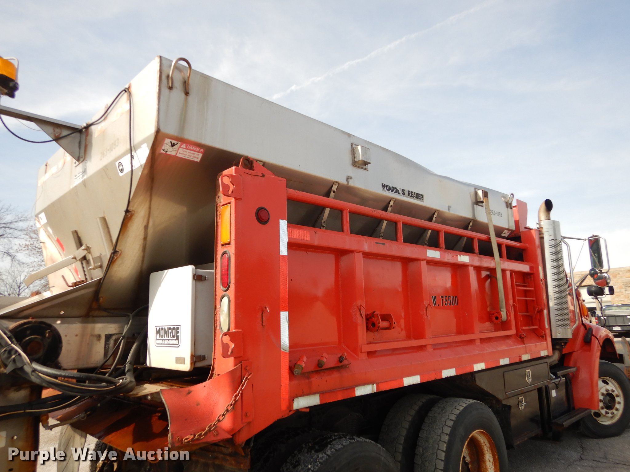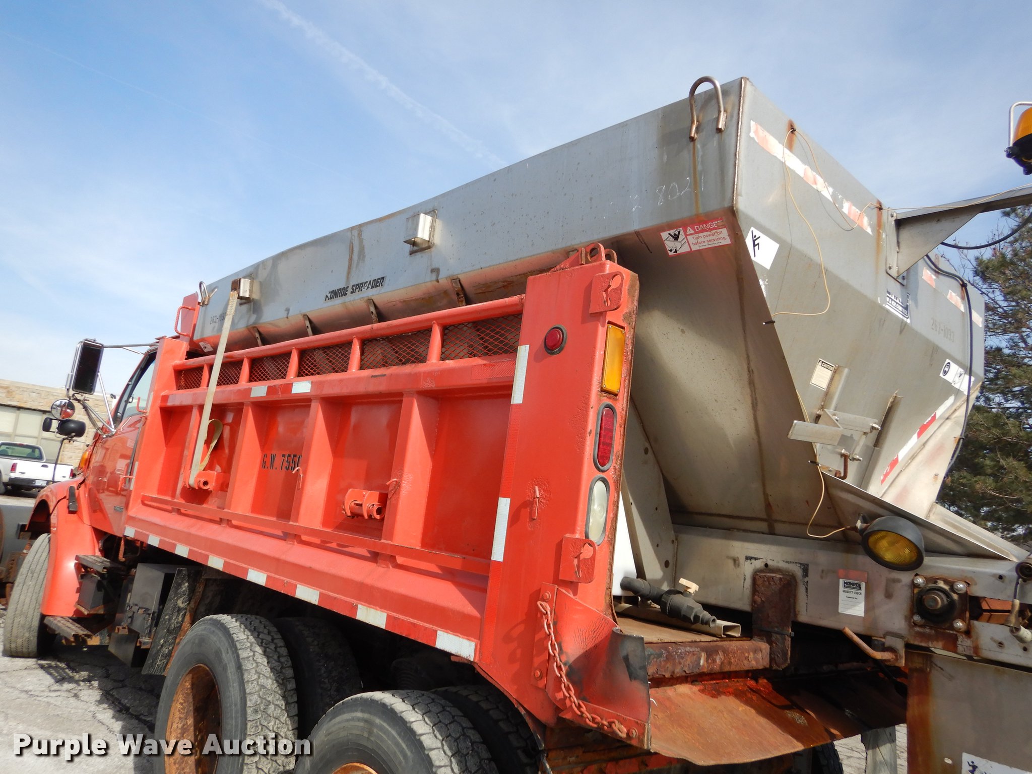 2003 Sterling LT7500 dump truck. 148,032 miles on odometer, 7,233 hours on meter, Caterpillar 3126 7.2L L6 turbo diesel engine 250 HP, Serial HEP18589, Eaton Fuller Autoshift automatic transmission, Inter-axle differential lock, Tandem axle, AC and Heat, Cruise, AM/FM/Weather band, Heated mirrors, Air suspension seat, Front mounted PTO, Block heater, 13'L x 96"W steel dump bed 40" side height, Single ram hoist, Air operated end gate, Toolboxes, Nine cu.yd. capacity spreader, Valk 11'W snow plow, Single fuel tank, Pintle hitch, Spring suspension, Air brakes, 275/80R22.5 tires, GVWR 53,880 lbs, FAWR 13,880 lbs, IAWR 20,000 lbs, RAWR 20,000 lbs, KDOT ID 263-1093, 603-1462. Kansas title. Titles will be distributed after confirmation of payment and removal. 2FZHATAK23AL69682. Kansas Department of Transportation - Topeka. 101 SW Gage Blvd. Topeka, KS 66606