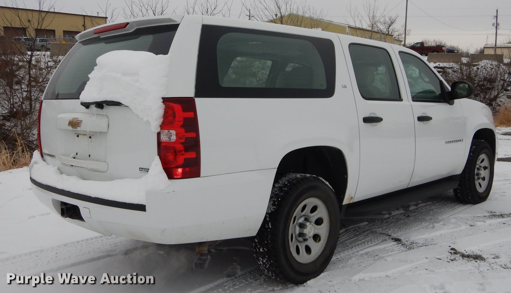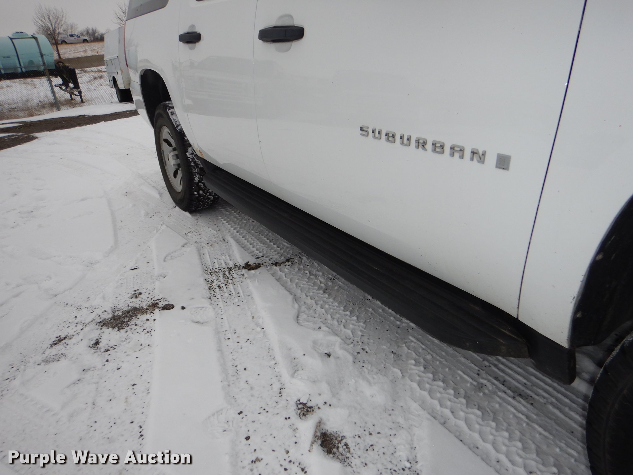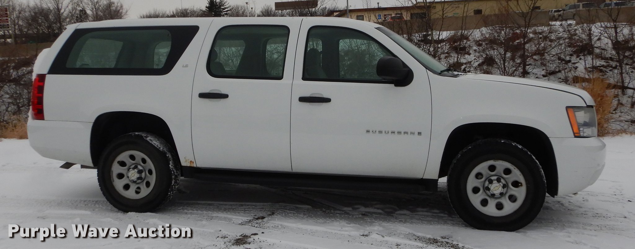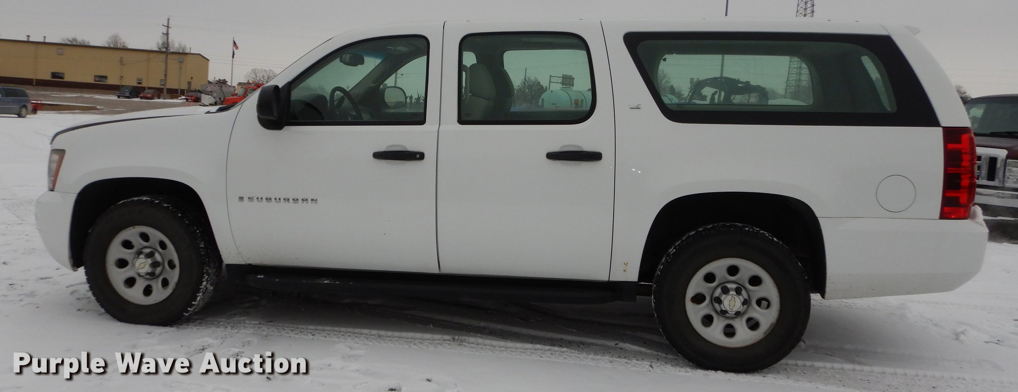 Purple Wave is selling a used Passenger Vehicle in Kansas. This item is a 2008 Chevrolet Suburban 1500 SUV with the following: 197,287 miles on odometer, 5.3L V8 OHV 16V FFV gas engine, Automatic transmission, Four wheel drive, AC and heat, Tilt, Cruise, AM/FM/CD, Power windows, locks, mirrors, and seat, Cloth interior, Running boards, Front tow hook, Receiver hitch, Trailer wiring, BF Goodrich 265/70R17 tires, Battery dead, Rust, KDOT ID 032-0048