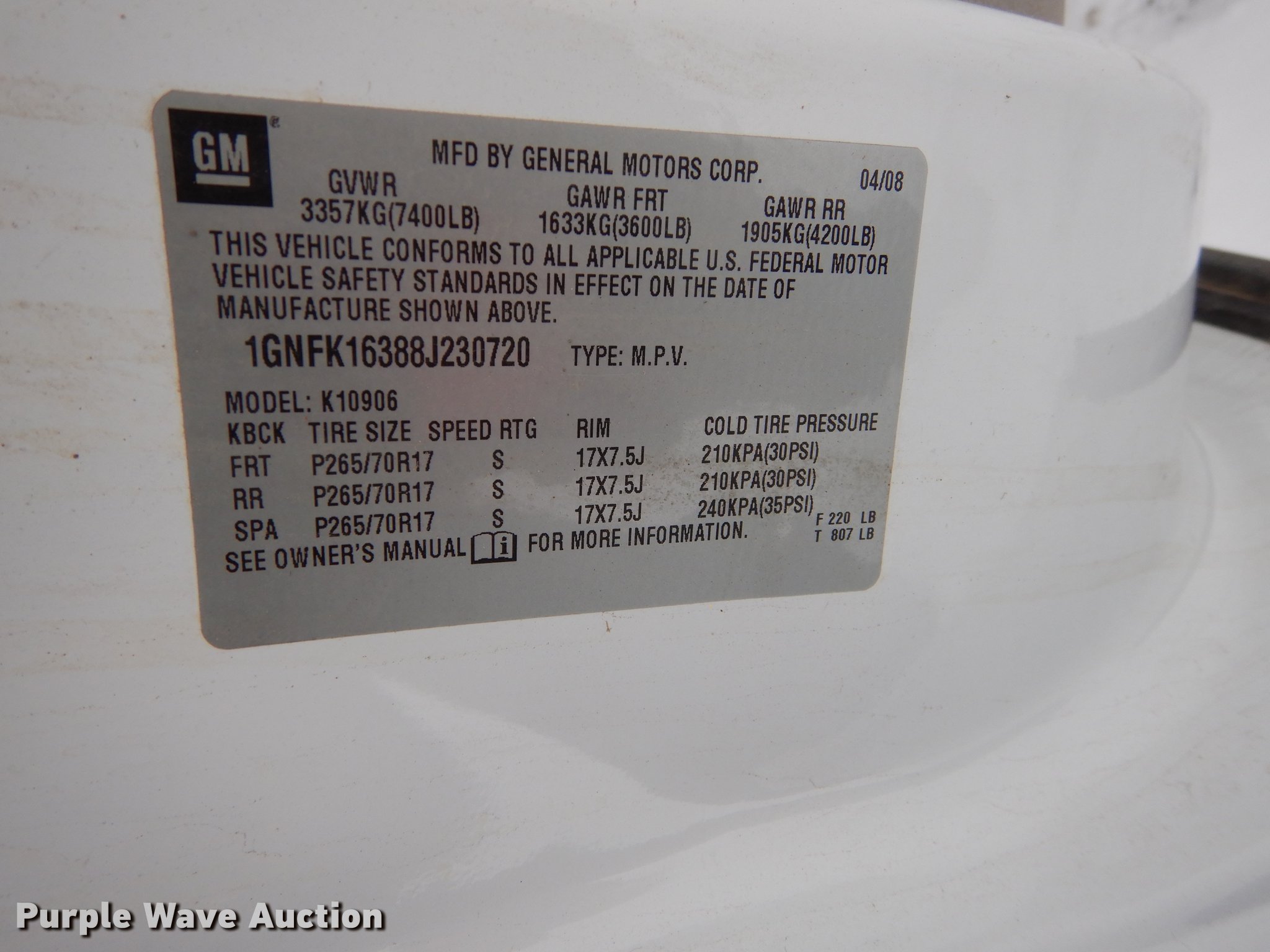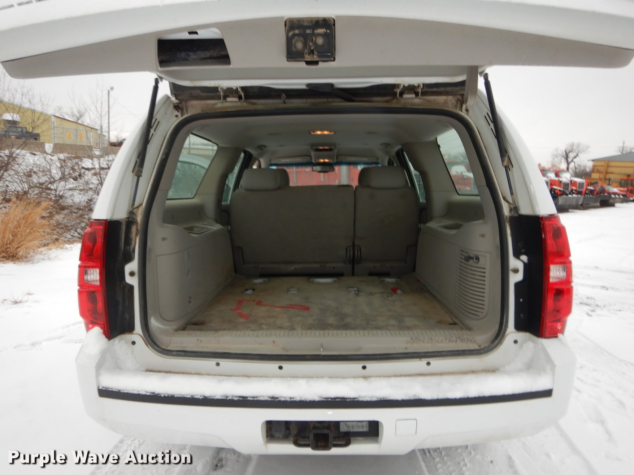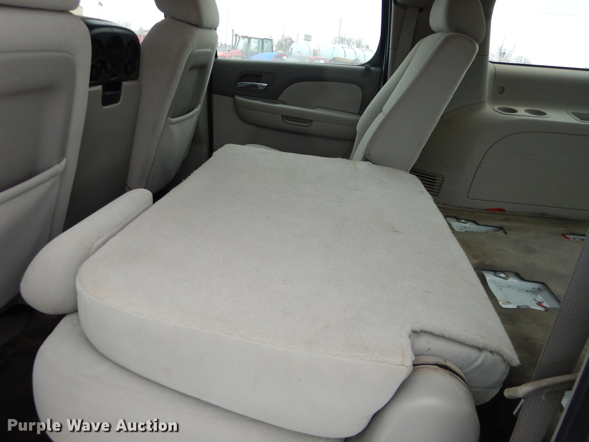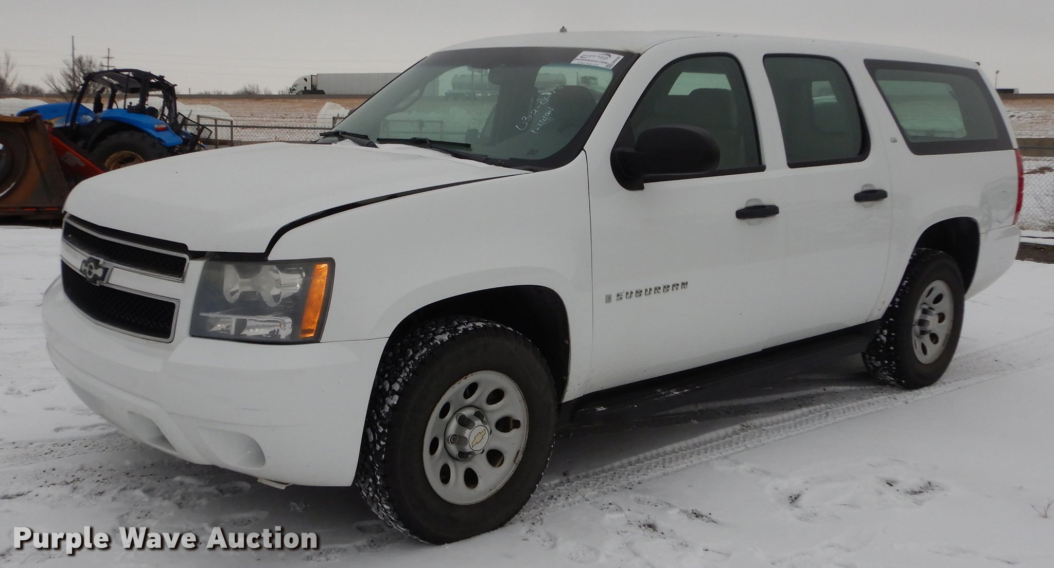 Purple Wave is selling a used Passenger Vehicle in Kansas. This item is a 2008 Chevrolet Suburban 1500 SUV with the following: 197,287 miles on odometer, 5.3L V8 OHV 16V FFV gas engine, Automatic transmission, Four wheel drive, AC and heat, Tilt, Cruise, AM/FM/CD, Power windows, locks, mirrors, and seat, Cloth interior, Running boards, Front tow hook, Receiver hitch, Trailer wiring, BF Goodrich 265/70R17 tires, Battery dead, Rust, KDOT ID 032-0048