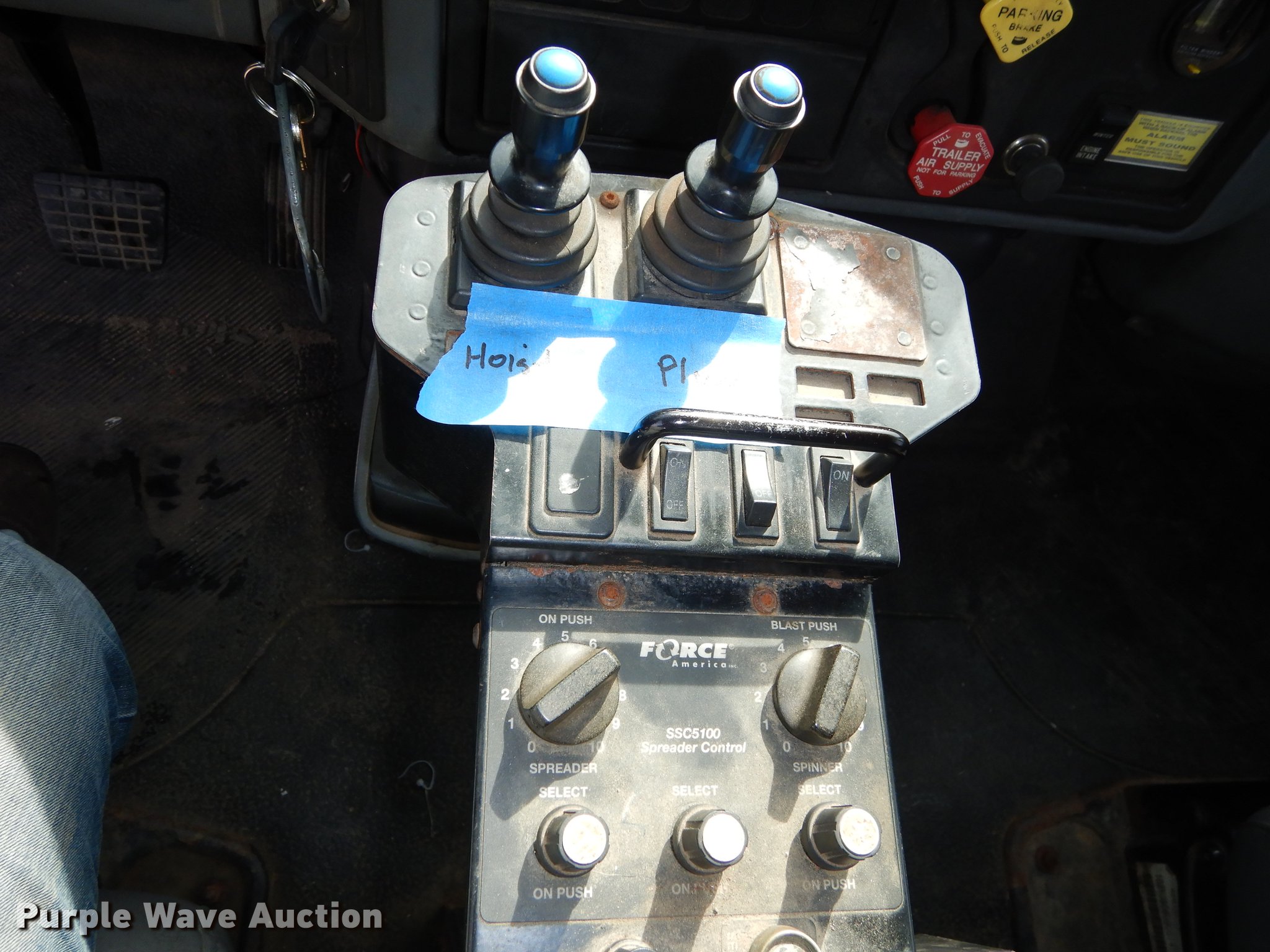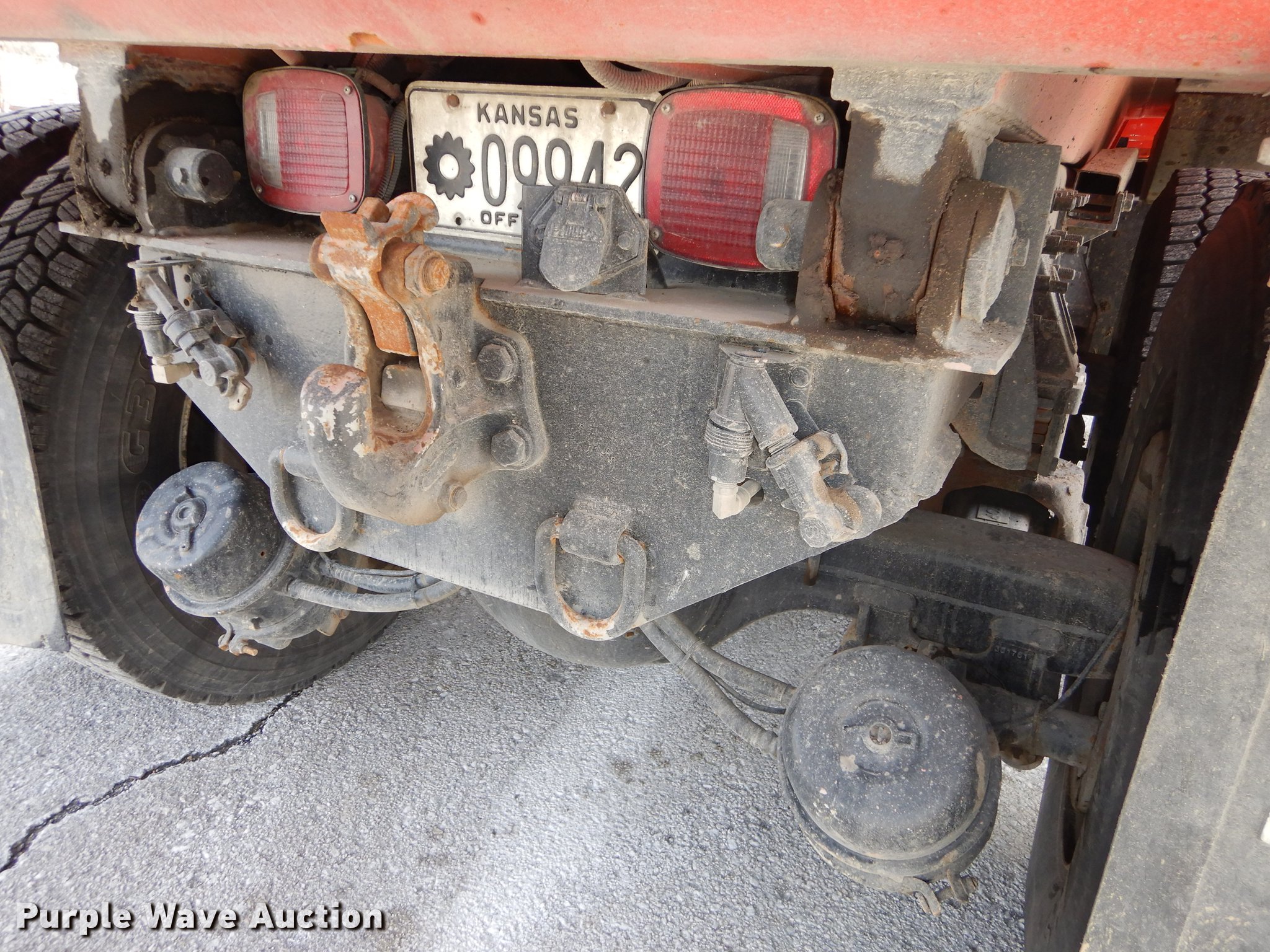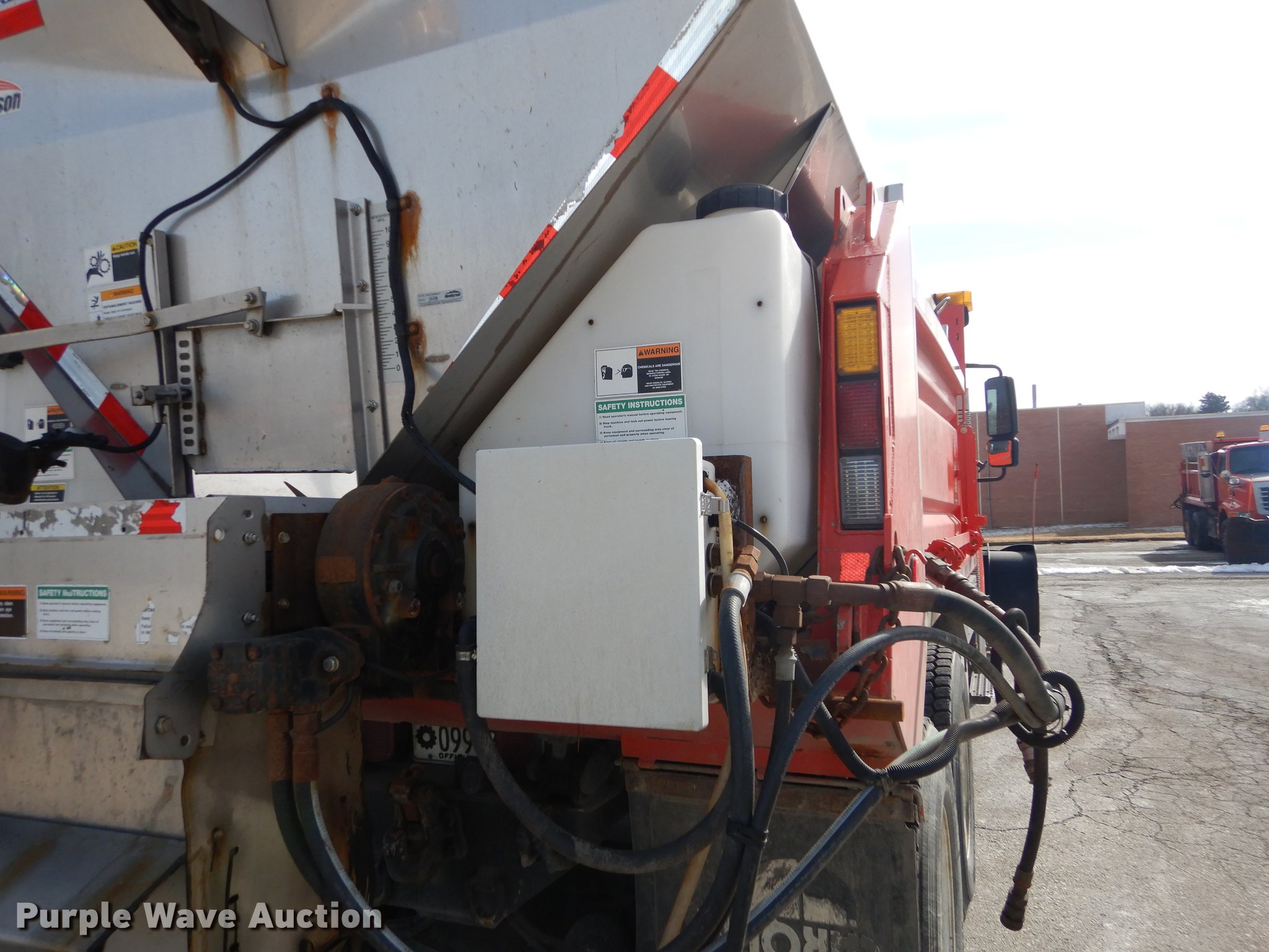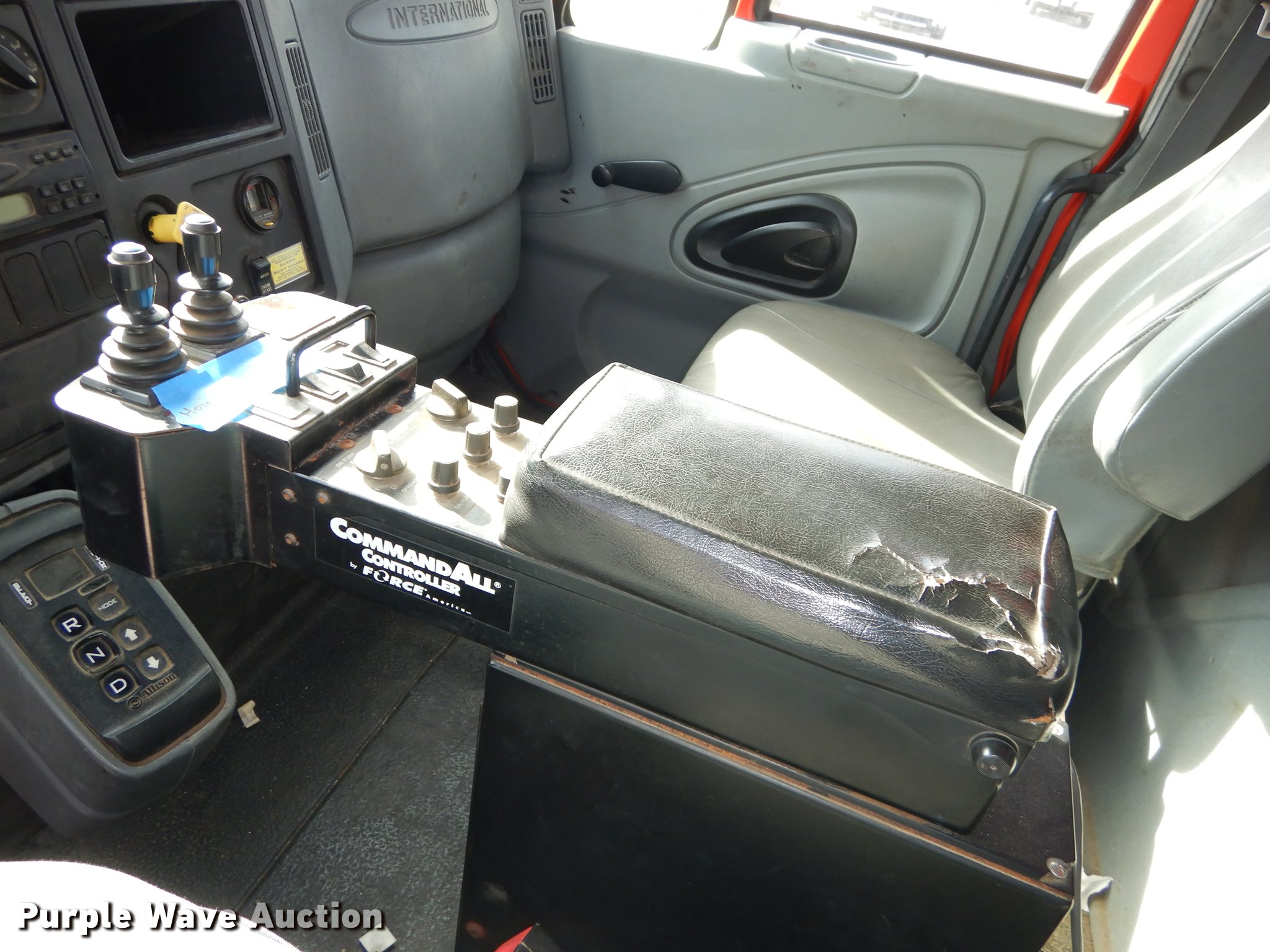 Purple Wave is selling a used Construction Dump Truck in Kansas. This item is a 2007 International 7400 dump truck with the following: 156,086 miles on odometer, 7,181 hours on meter, International DT466 7.6L L6 turbo diesel engine, Allison automatic transmission, Inter-axle differential lock, Tandem axle, AC and heat, Cruise, AM/FM, Heated mirrors, Air suspension seat, Front mounted PTO, Block heater, Henderson steel dump bed, 13.5'L x 96"W, 36" side height, Single ram hoist, Air operated end gate, Toolboxes, Light bar, Henderson spreader, 13'L, Nine cu.yd. capacity, Henderson 11'W snow plow, Single fuel tank, Pintle hitch, Spring over walking beam suspension, Air brakes, 275/80R22.5 front tires, 295/75R22.5 rear tires, GVWR 53,220 lbs, FAWR 13,220 lbs, IAWR 20,000 lbs, REAR 20,000 lbs, Engine pushes water out, KDOT ID 264-1037