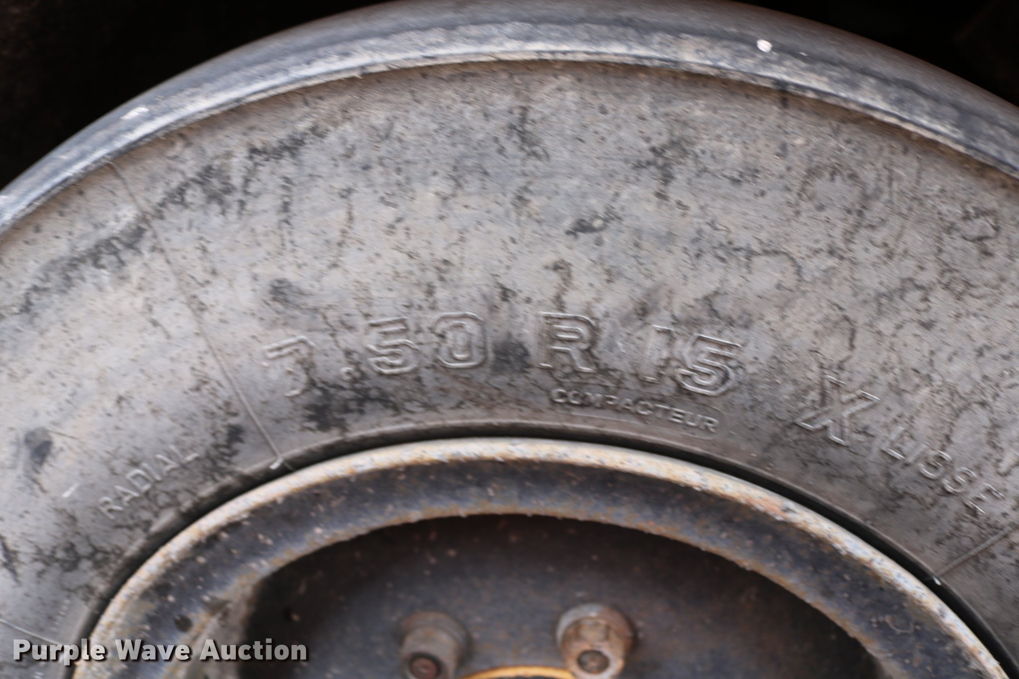 2000 Bomag BW11RH pneumatic roller. 531 hours on meter, Cummins B3.9C 3.9L four cylinder diesel engine 80 HP, Serial 45887142, Hydrostatic transmission, Canopy, Suspension seat, Dual operator stations, Vandal cover, Front and rear water application, Tire scraper, (9) Michelin 7.50R15 tires, Noise in left front drive motor, Serial 109A22201733, KDOT ID 641-3119. Kansas Department of Transportation - Salina. 1006 N 3rd St. Salina, KS 67401