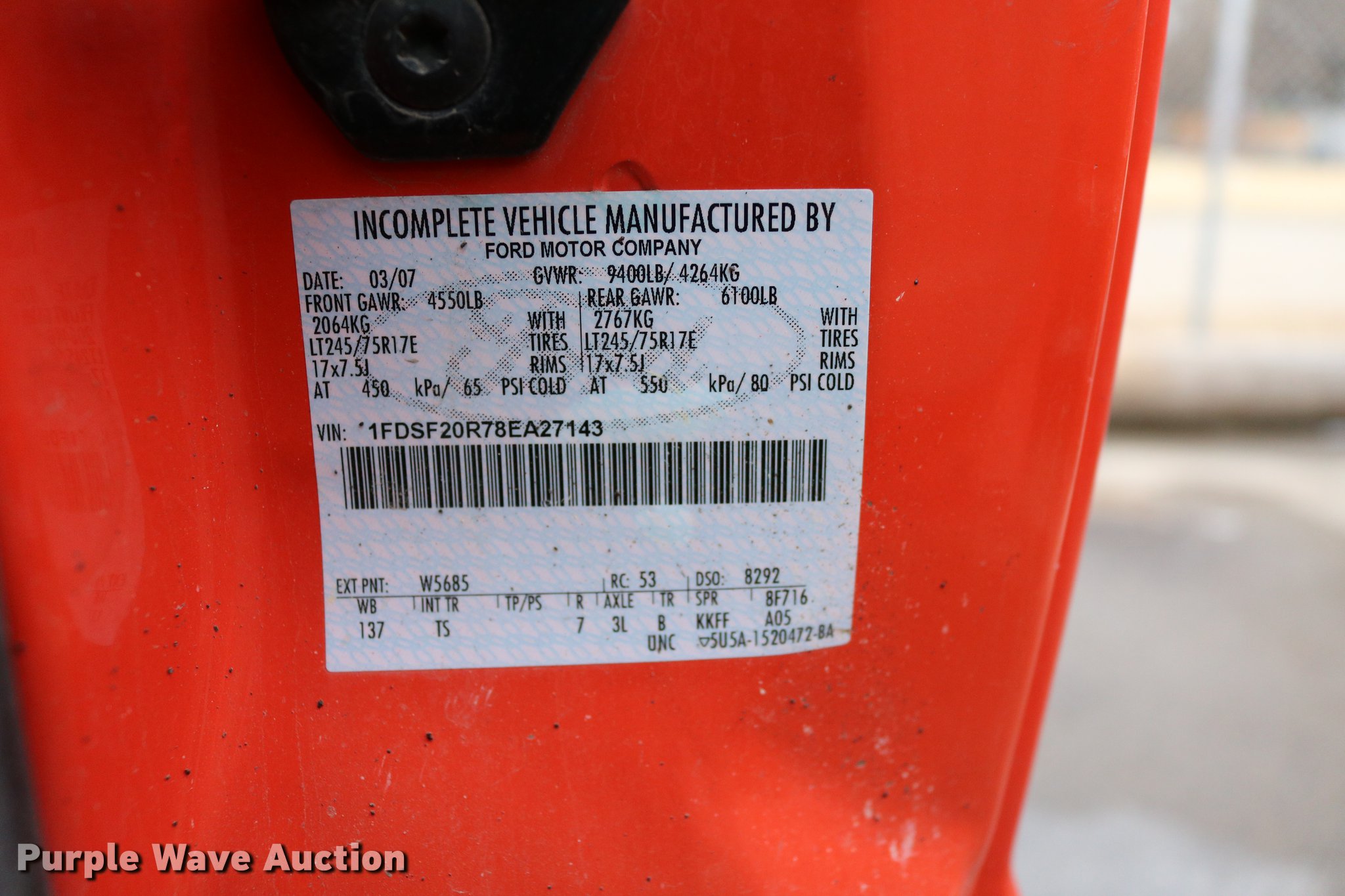 Purple Wave is selling a used 3/4 or 1 Ton Pickup or Van in Kansas. This item is a 2008 Ford F250 Super Duty utility bed pickup truck with the following: 196,390 miles on odometer, 6.4L V8 OHV 32V turbo diesel engine, Automatic transmission, AC and heat, Tilt, Cruise, AM/FM, Vinyl interior, Stahl utility bed, Auxiliary fuel tank, 98 gallon capacity, Pump,, Front tow hooks, Grill guard, Receiver hitch, Trailer wiring, LT245/75R17 tires, Batteries weak, Check engine light on, Bed rusted, Hail damage, KDOT ID 113-2017