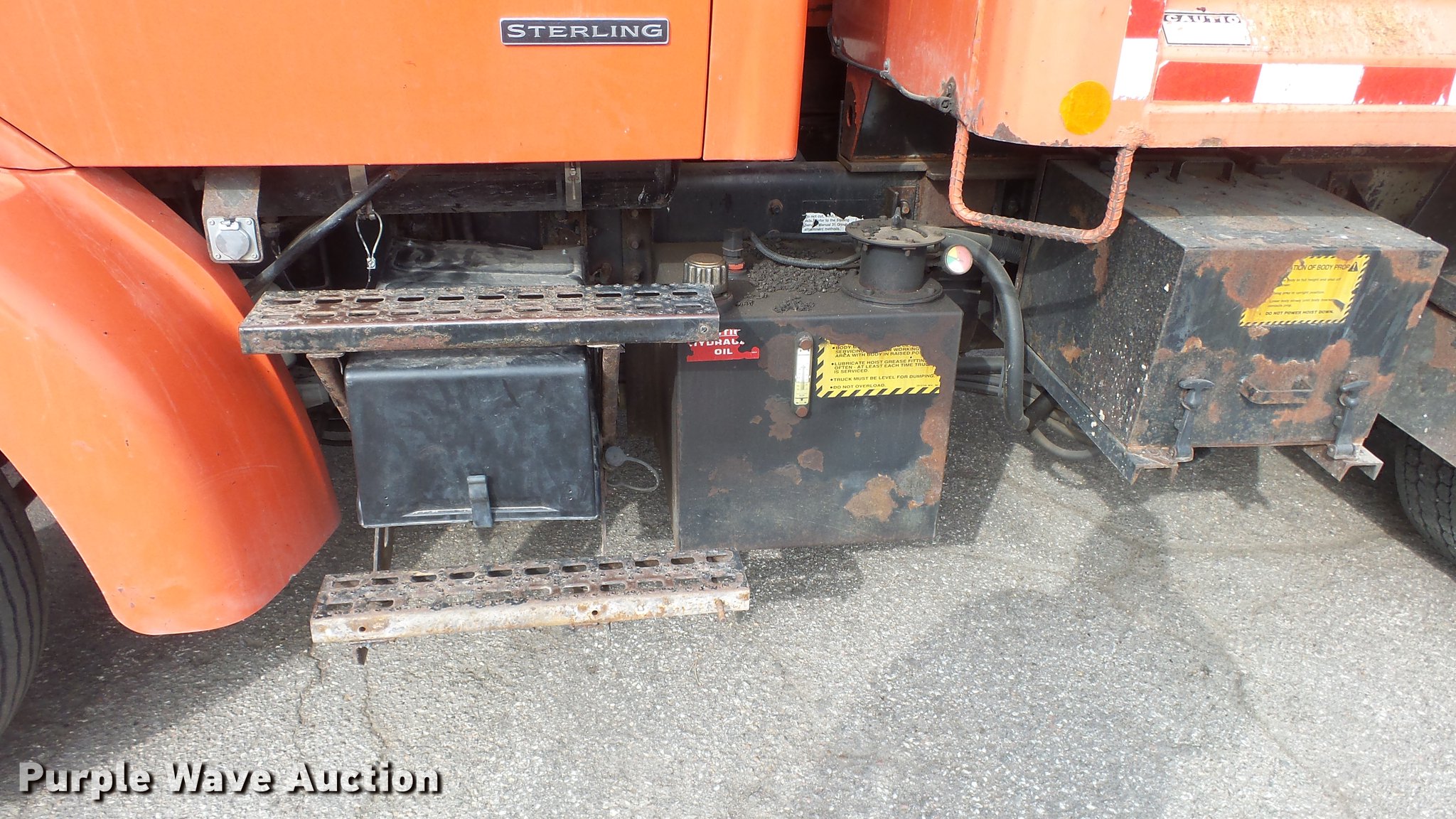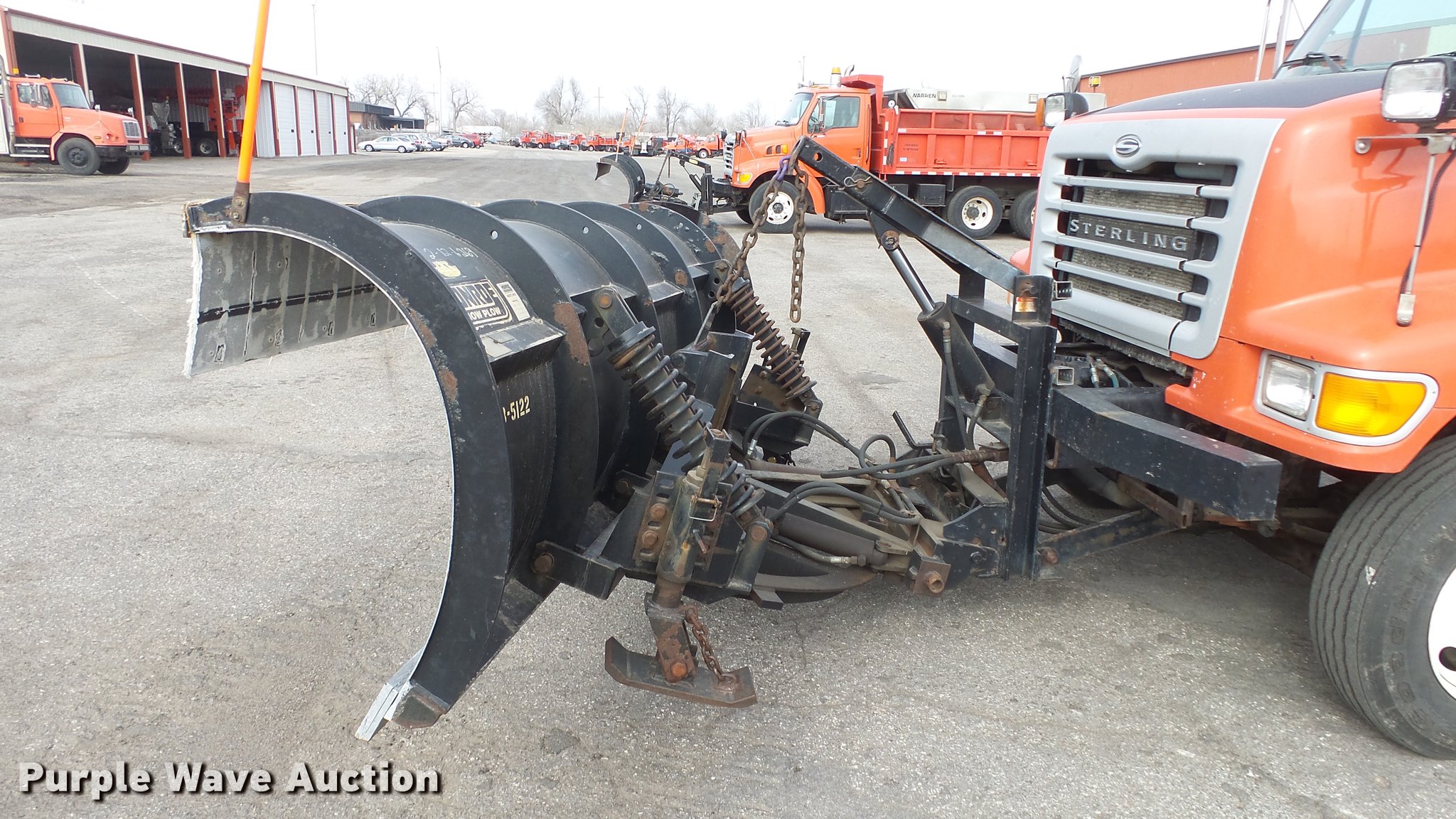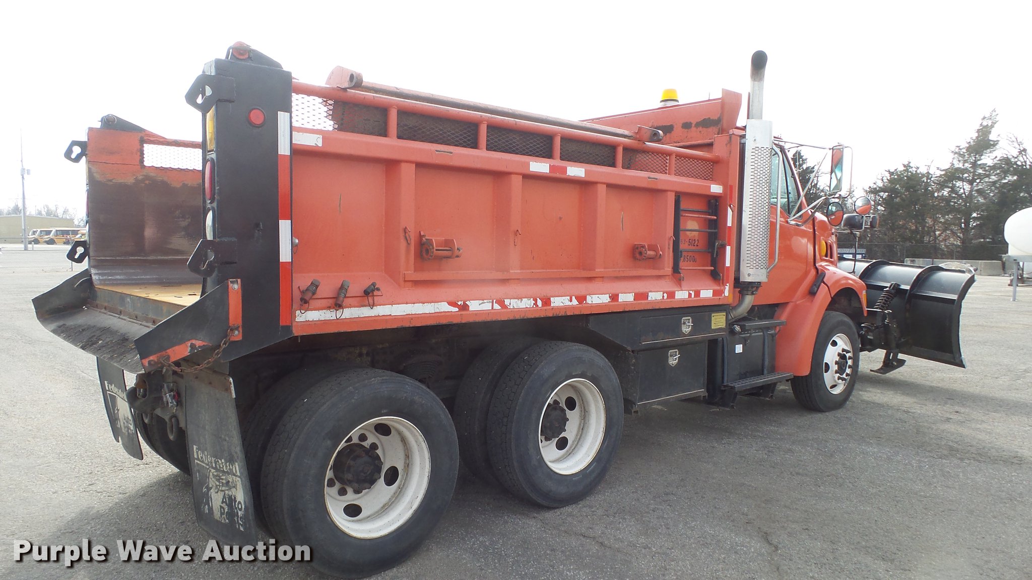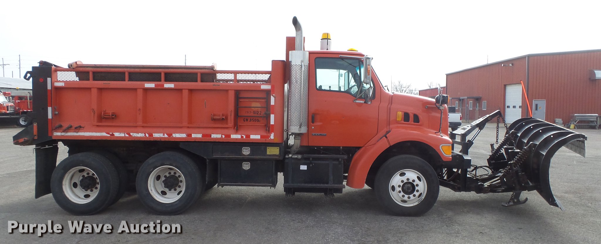 Purple Wave is selling a used Construction Dump Truck in Kansas. This item is a 2003 Sterling LT7501 dump truck with the following: 169,201 miles on odometer, 7,777 hours on meter, Caterpillar 3126 7.2L L6 turbo diesel engine, Allison MD3060 automatic transmission, Inter-axle differential lock, Tandem axle, AC and heat, Heated mirrors, Air suspension seat, Force SSc5100 in-cab controls, Front mounted PTO, Block heater, 13'L x 96"W steel dump bed, 32" side height, Single ram hoist, Monroe 11'W reversible snow plow, Single fuel tank, Pintle hitch, Trailer wiring, Spring suspension, Air brakes, 275/80R22.54 front tires, 295/75R22.5 rear tires, GVWR 53,880 lbs, FAWR 13,880 lbs, IAWR 20,000 lbs, RAWR 20,000 lbs, Batteries dead, Rust, Tires worn, KDOT ID 263-5122