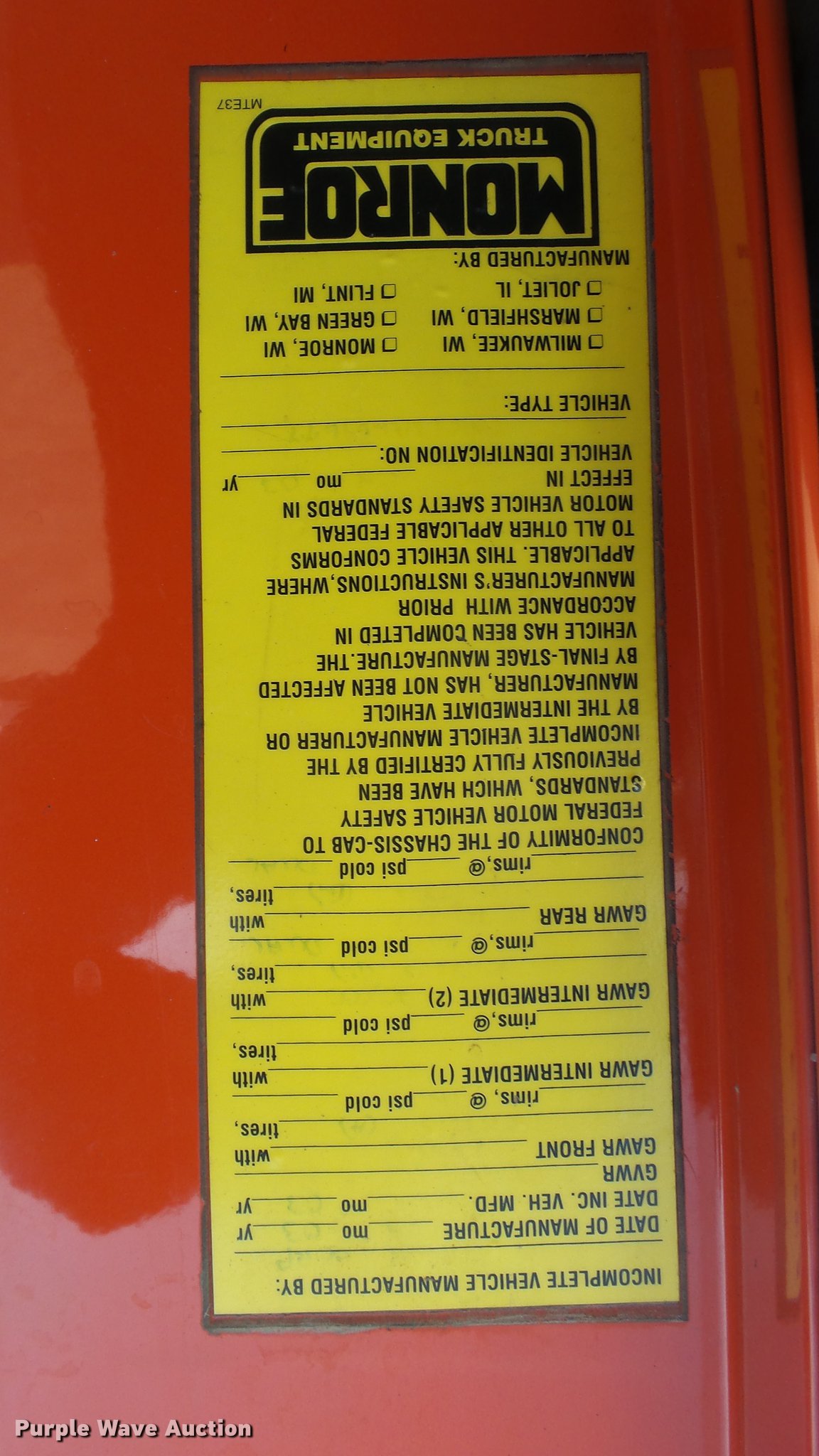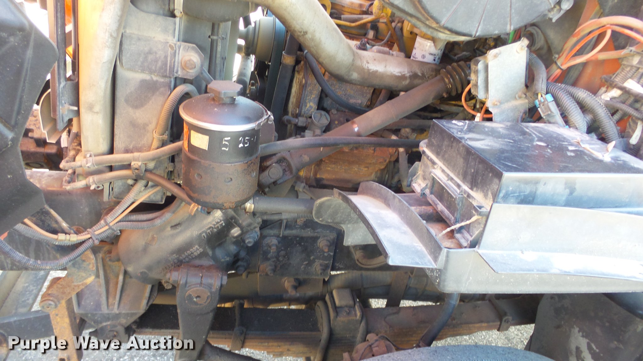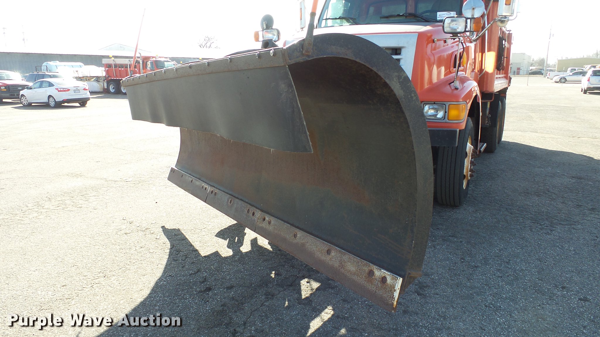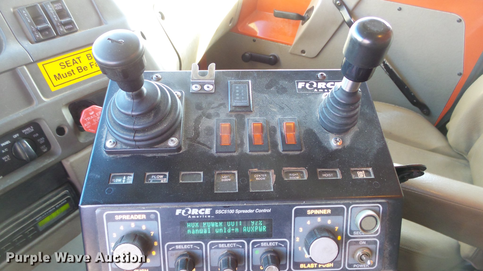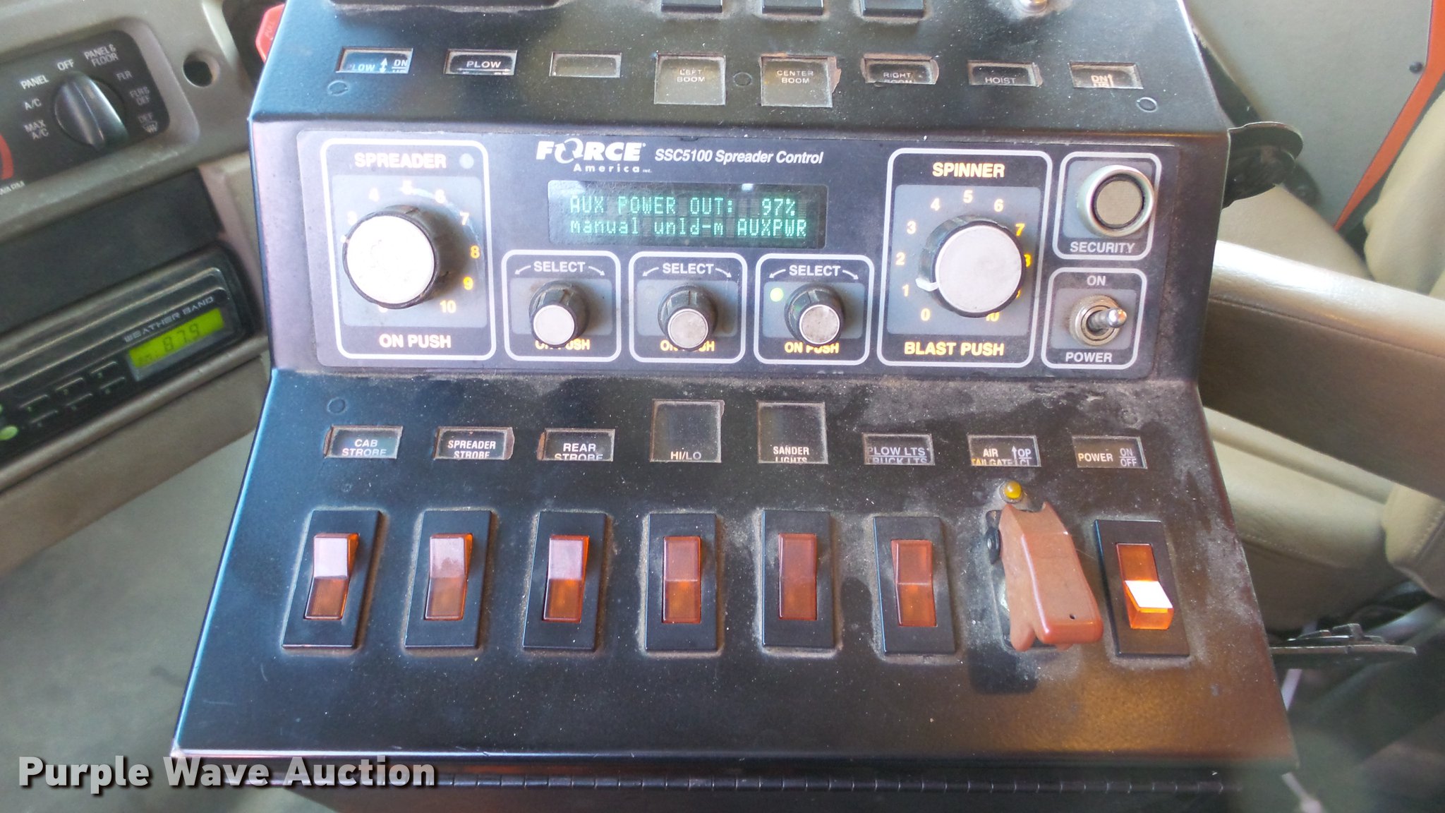 Purple Wave is selling a used Construction Dump Truck in Kansas. This item is a 2003 Sterling LT7501 dump truck with the following: 153,145 miles on odometer, 10,577 hours on meter, Caterpillar 3126 7.2L L6turbo diesel engine, Eaton Fuller Road Ranger RTO10710B-AS2 10 speed manual transmission, Inter-axle differential lock, Tandem axle, AC and heat, Heated mirorrs, Air suspension seat, Force SSC5100 spreader controls, Front mounted PTO, Block heater, 13'L x 8'W steel dump bed, 32" side height, Roll tarp, Single ram hoist, Tailgate, Monroe stainless steel spreader, Nine cu.yd. capacity, Monroe 11'W reversible snow plow, Single fuel tank, Pintle hitch, Trailer wiring, Spring suspension, Air brakes, 295/75R22.5 tires, GVWR 53,880 lbs, FAWR 13,880 lbs, IAWR 20,000 lbs, RAWR 20,000 lbs, Batteries dead, Scratches and dents, Rust, Tires worn, KDOT ID 263-5042