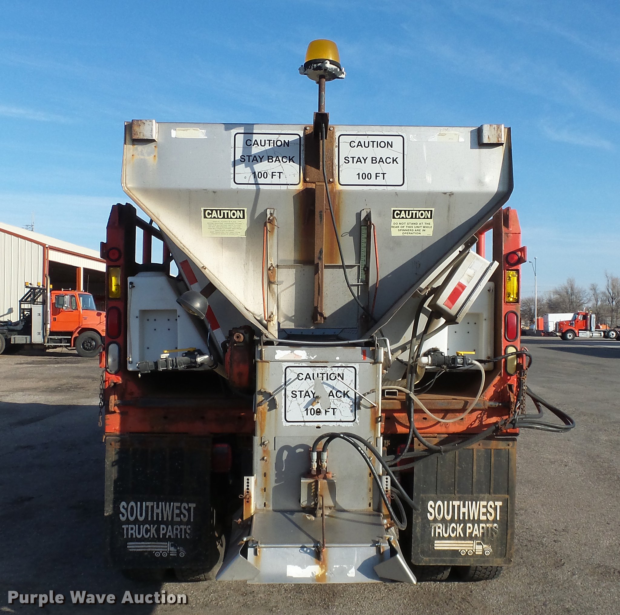 2001 Sterling LT7501 dump truck. 221,754 miles on odometer, 12,076 hours on meter, Caterpillar 3126 7.2L L6 turbo diesel engine, Allison MD3060 automatic transmission, Inter-axle differential lock, Tandem axle, AC and heat, Cruise, Heated mirrors, Air suspension seat, Force SSC5100 spreader controls, Front mounted PTO, Block heater, Warren steel dump bed 13'L x 8'W, 32" side height, Roll tarp, Single ram hoist, Flink stainless steel nine cu.yd. spreader, Flink 11'W reversible snow plow, Single fuel tank, Pintle hitch, Trailer wiring, Spring suspension, Air brakes, 295/75R22.5 tires, GVWR 53,200 lbs, FAWR 13,200 lbs, IAWR 20,000 lbs, RAWR 20,000 lbs, No tailgate, Batteries dead, Rust, Tires worn, KDOT ID 263-5060. Kansas title. Titles will be distributed after confirmation of payment and removal. 2FZHATAK31AH88818. Kansas Department of Transportation - Hutchinson. 500 Hendricks St. Hutchinson, KS 67501