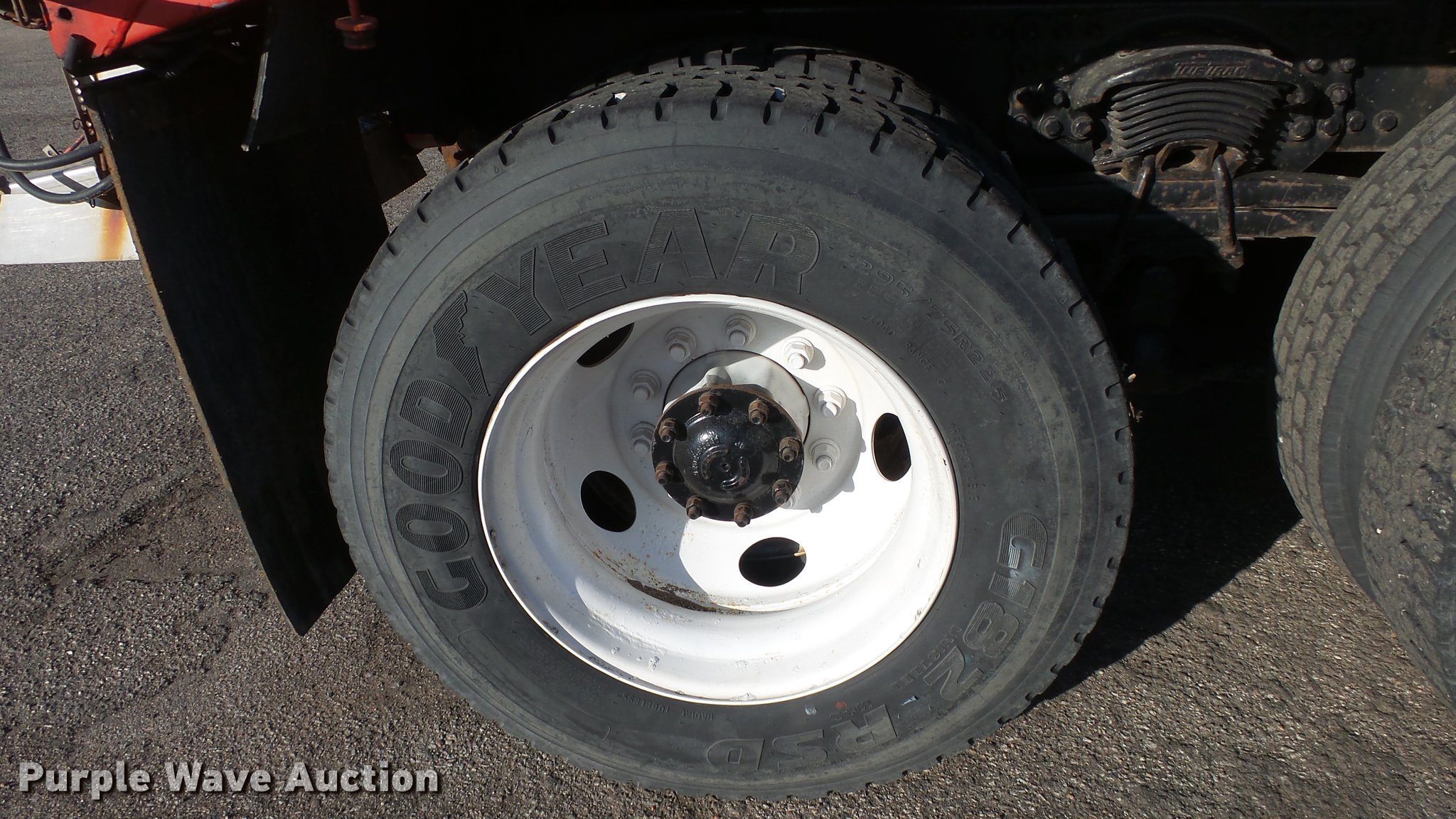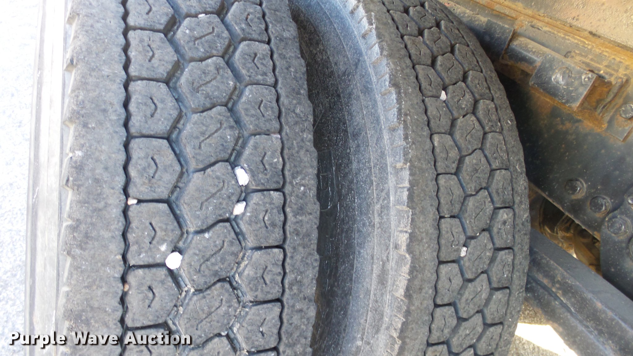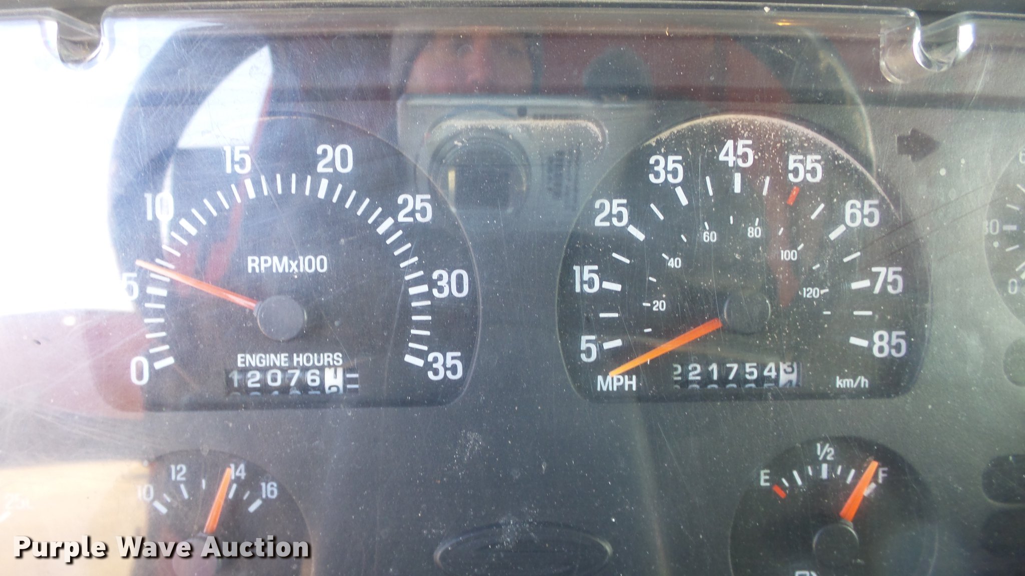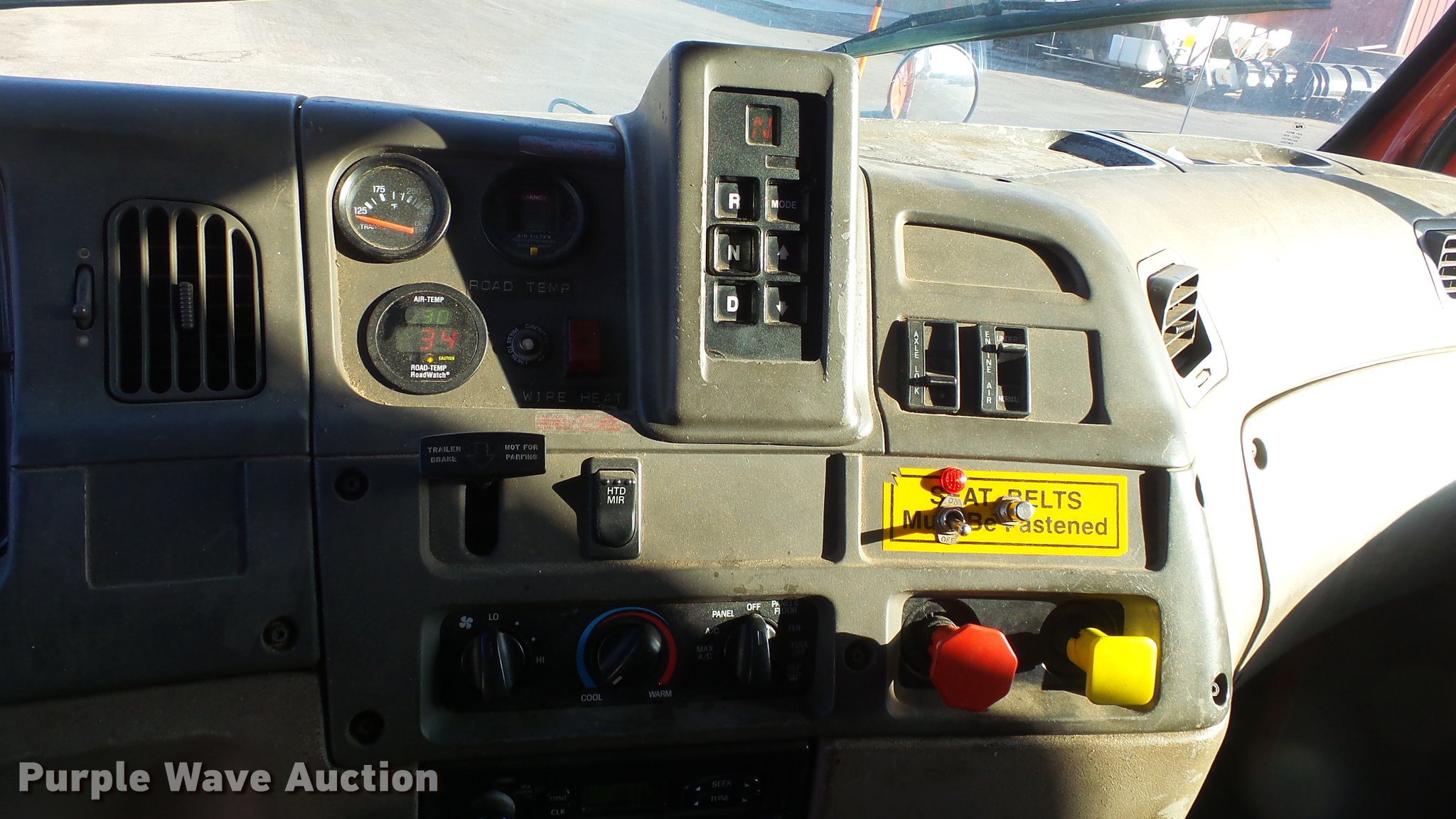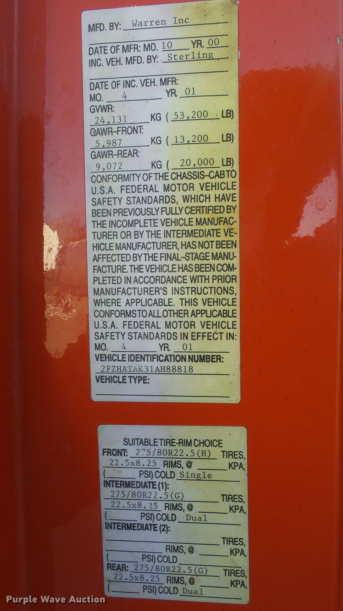 Purple Wave is selling a used Construction Dump Truck in Kansas. This item is a 2001 Sterling LT7501 dump truck with the following: 221,754 miles on odometer, 12,076 hours on meter, Caterpillar 3126 7.2L L6 turbo diesel engine, Allison MD3060 automatic transmission, Inter-axle differential lock, Tandem axle, AC and heat, Cruise, Heated mirrors, Air suspension seat, Force SSC5100 spreader controls, Front mounted PTO, Block heater, Warren steel dump bed, 13'L x 8'W, 32" side height, Roll tarp, Single ram hoist, Flink stainless steel nine cu.yd. spreader, Flink 11'W reversible snow plow, Single fuel tank, Pintle hitch, Trailer wiring, Spring suspension, Air brakes, 295/75R22.5 tires, GVWR 53,200 lbs, FAWR 13,200 lbs, IAWR 20,000 lbs, RAWR 20,000 lbs, No tailgate, Batteries dead, Rust, Tires worn, KDOT ID 263-5060
