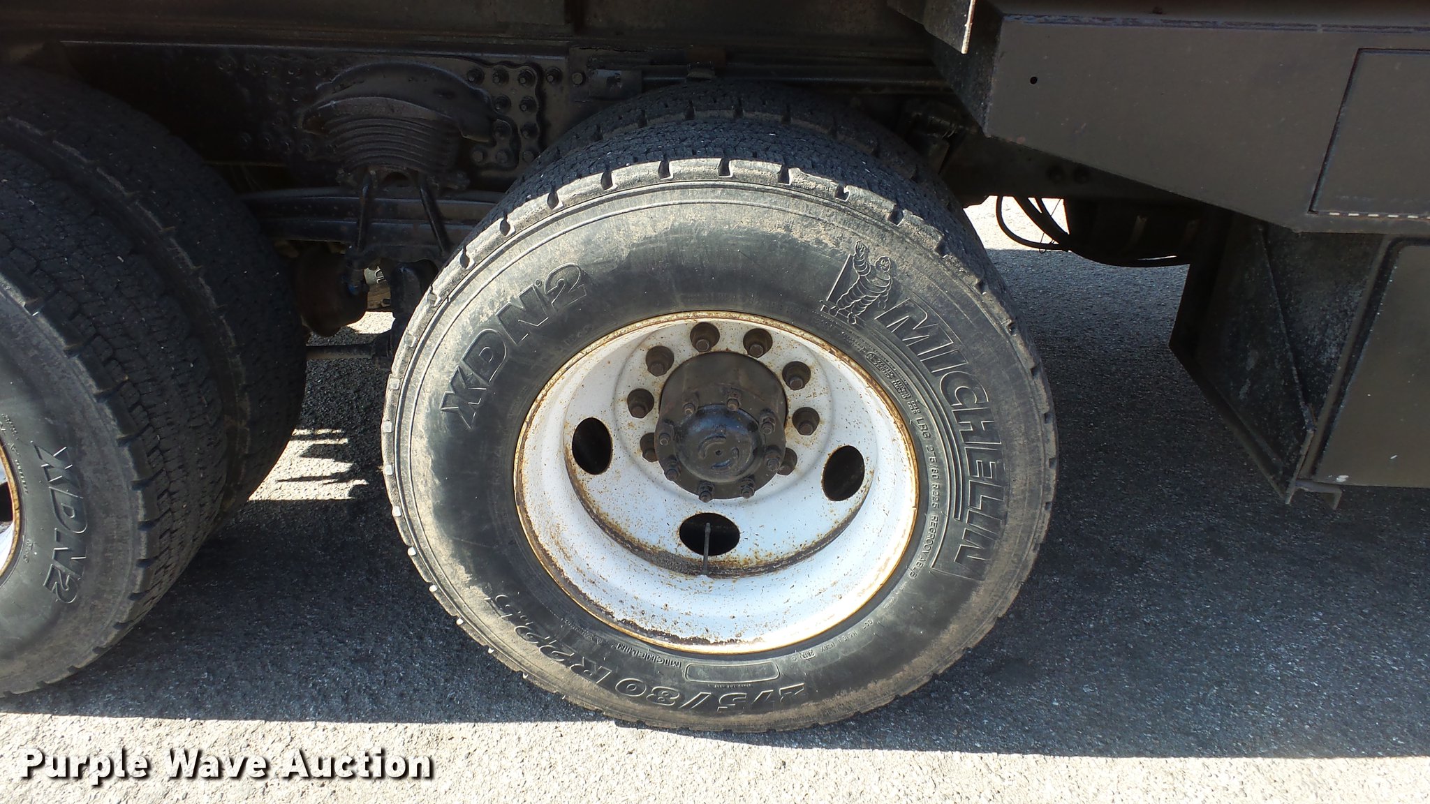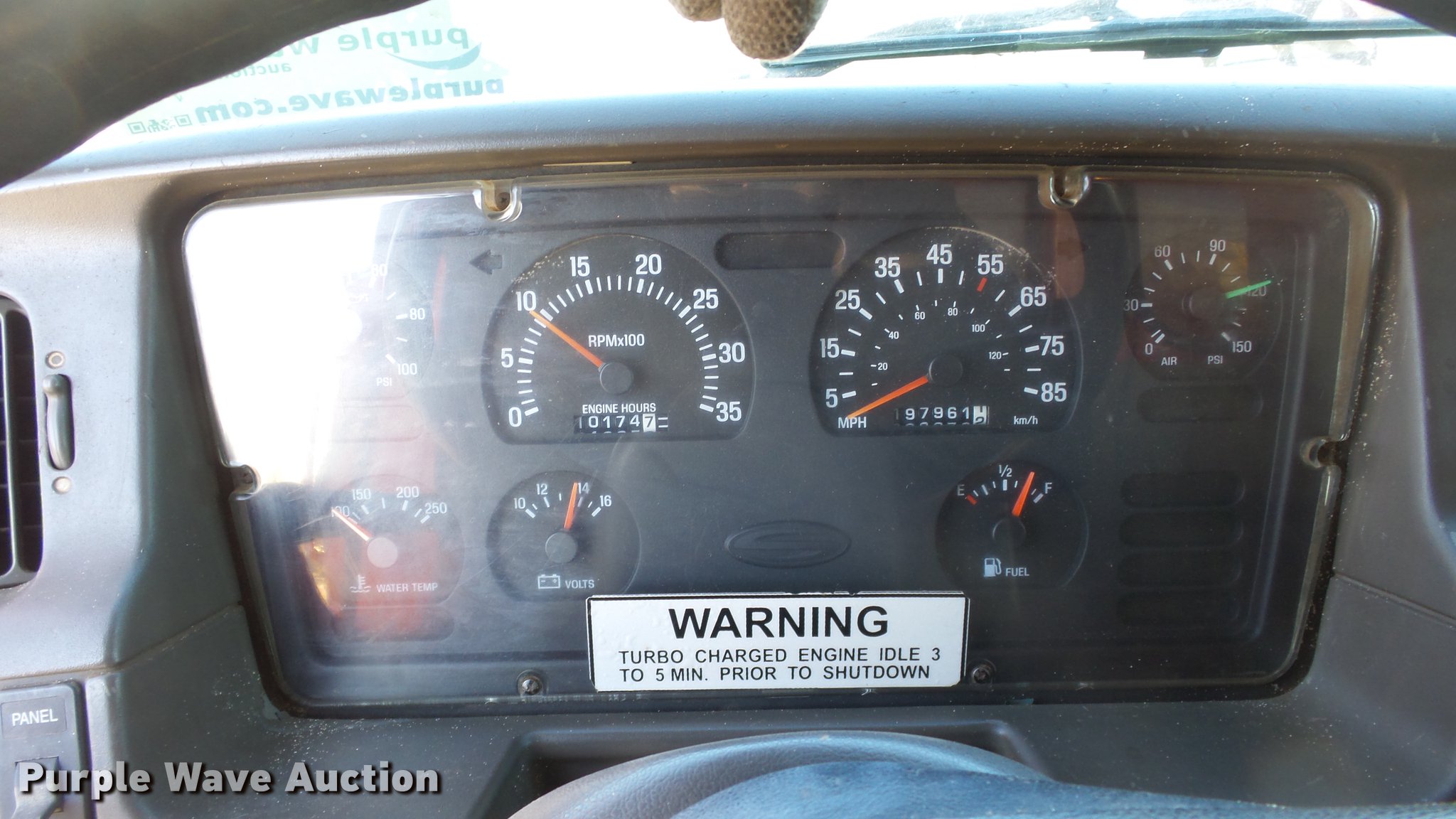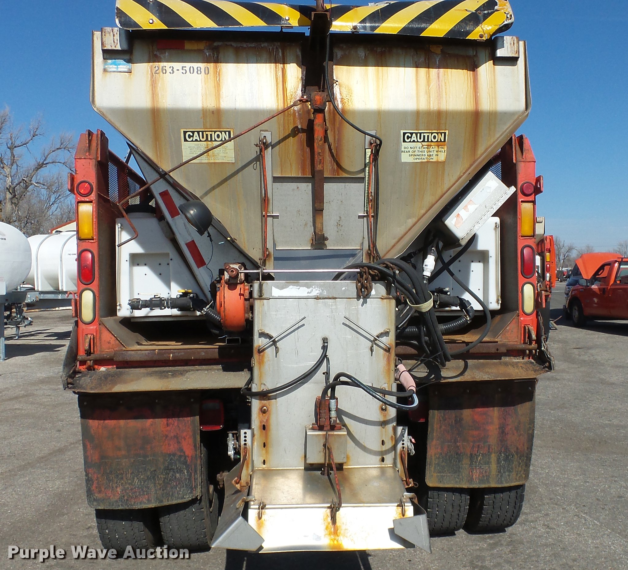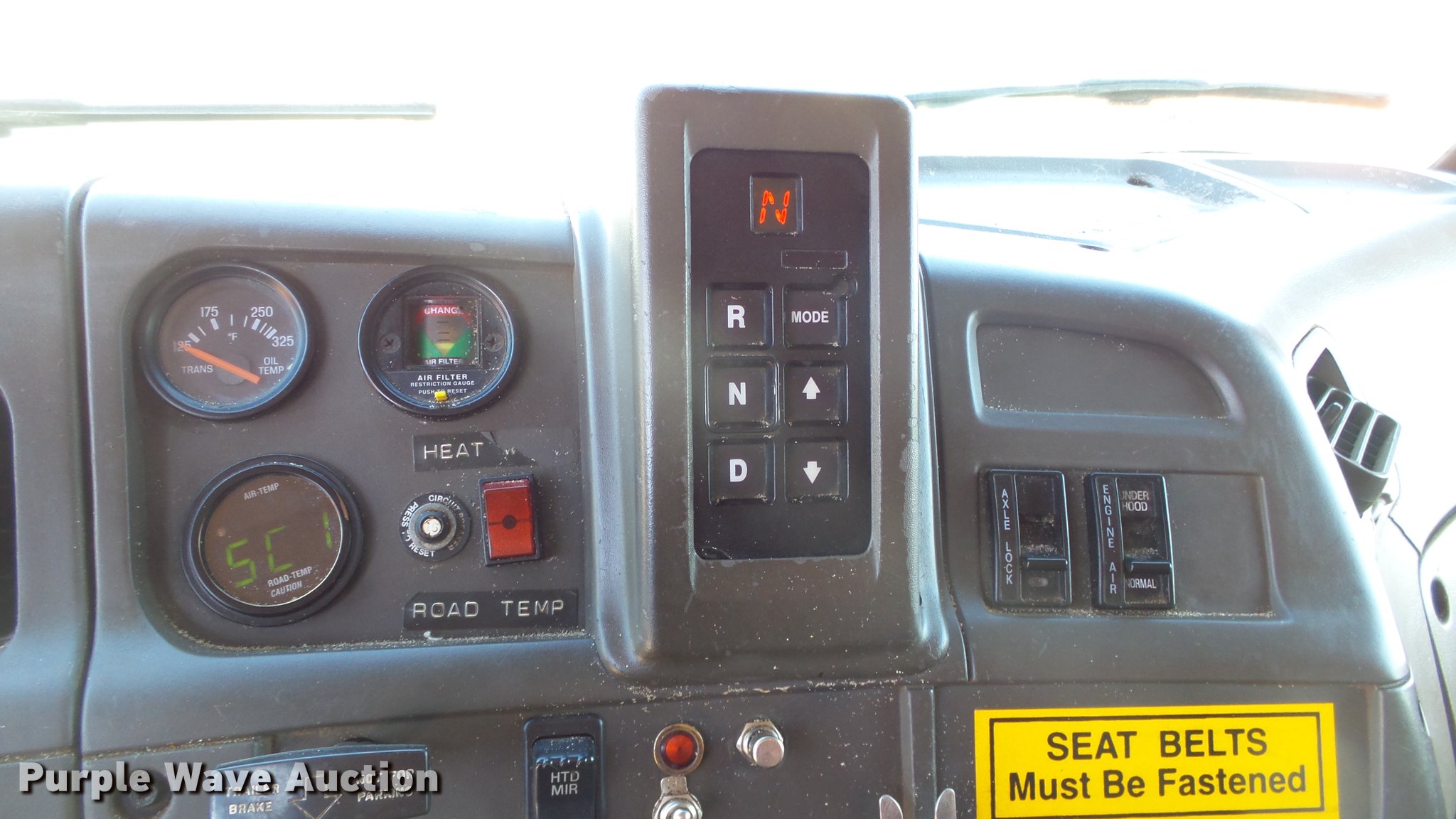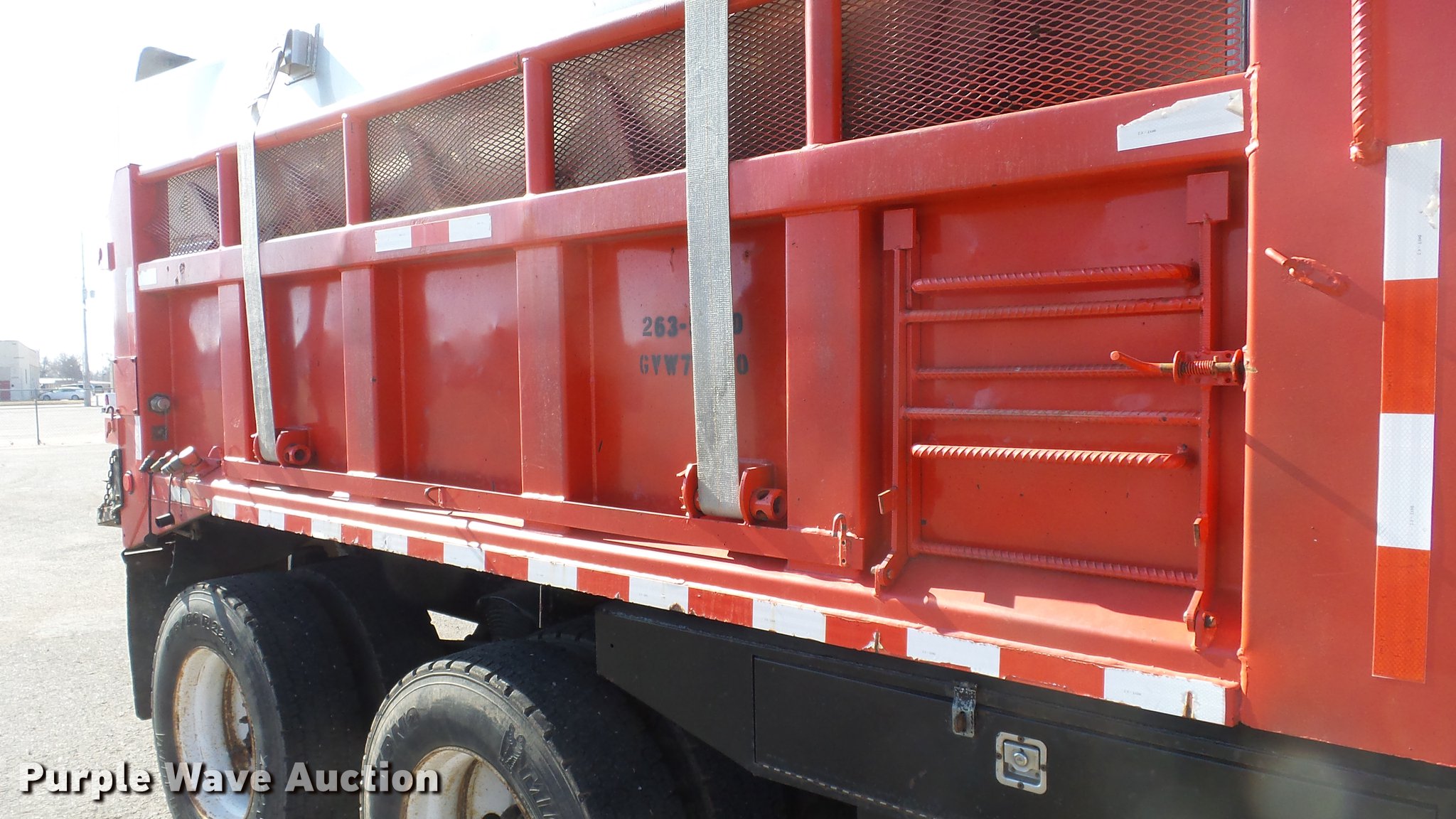 Purple Wave is selling a used Construction Dump Truck in Kansas. This item is a 2001 Sterling LT7501 dump truck with the following: 197,961 miles on odometer, 10,174 hours no meter, Caterpillar 3126 7.2L L6 turbo diesel engine, Allison MD3060 automatic transmission, Inter-axle differential lock, Tandem axle, AC and heat, Heated mirrors, Air suspension seat, Force SSC5100 spreader controls, Front mounted PTO, Block heater, Warren steel dump bed, 13'L x 8'W, 32" side height, Roll tarp, Single ram hoist, Warren stainless steel spreader, Nine cu.yd. capacity, Flink 11'W reversible spreader, Single fuel tank, Pintle hitch, Trailer wiring, Spring suspension, Air brakes, GVWR 53,200 lbs, FAWR 13,200 lbs, IAWR 20,000 lbs, RAWR 20,000 lbs, No tailgate, Diesel fuel in coolant, Wheel seal leaking, Batteries dead, Rust, Tires worn, KDOT ID 263-5080