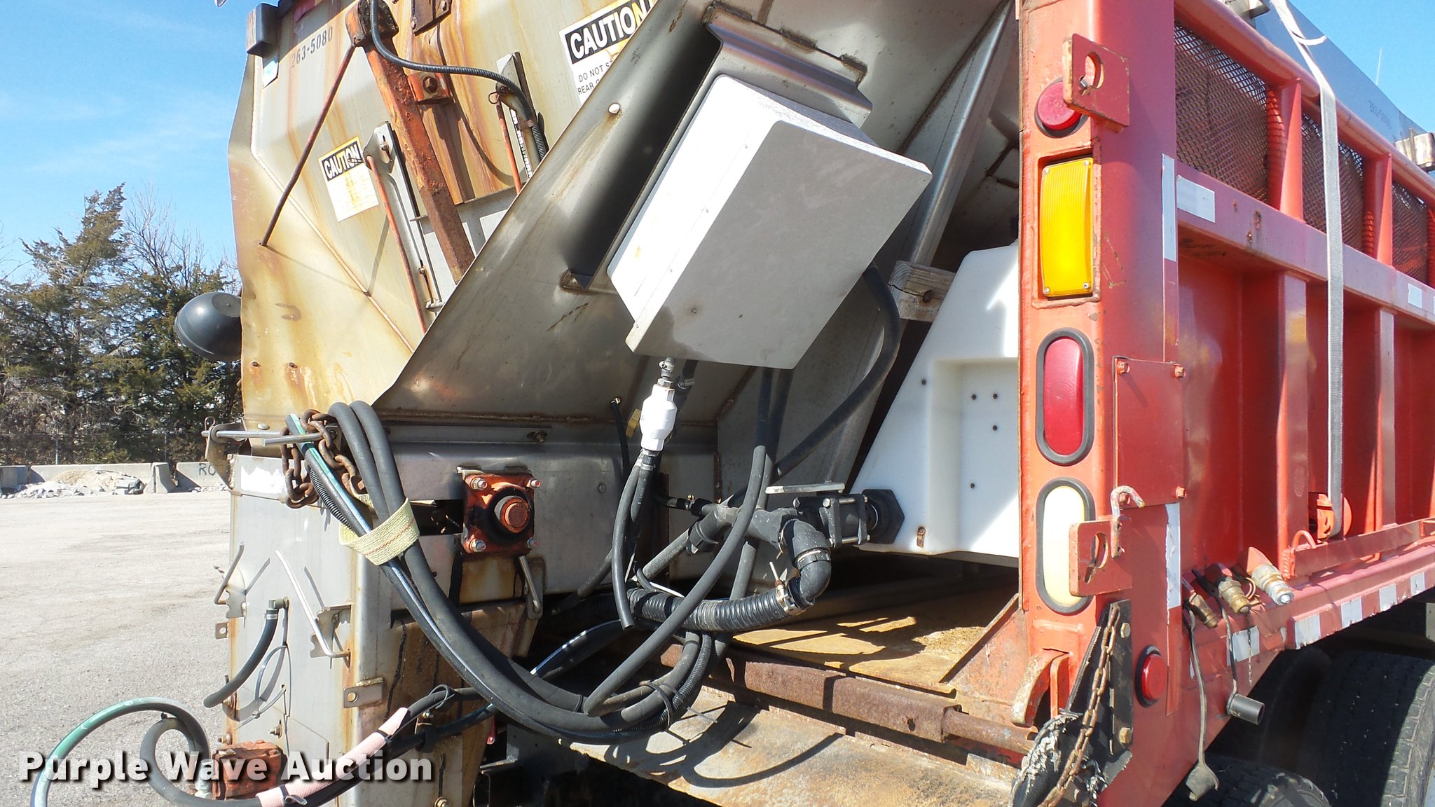 2001 Sterling LT7501 dump truck. 197,961 miles on odometer, 10,174 hours no meter, Caterpillar 3126 7.2L L6 turbo diesel engine, Allison MD3060 automatic transmission, Inter-axle differential lock, Tandem axle, AC and heat, Heated mirrors, Air suspension seat, Force SSC5100 spreader controls, Front mounted PTO, Block heater, Warren steel dump bed 13'L x 8'W, 32" side height, Roll tarp, Single ram hoist, Warren stainless steel spreader Nine cu.yd. capacity, Flink 11'W reversible spreader, Single fuel tank, Pintle hitch, Trailer wiring, Spring suspension, Air brakes, GVWR 53,200 lbs, FAWR 13,200 lbs, IAWR 20,000 lbs, RAWR 20,000 lbs, No tailgate, Diesel fuel in coolant, Wheel seal leaking, Batteries dead, Rust, Tires worn, KDOT ID 263-5080. Kansas title. Titles will be distributed after confirmation of payment and removal. 2FZHATAK51AH88819. Kansas Department of Transportation - Hutchinson. 500 Hendricks St. Hutchinson, KS 67501