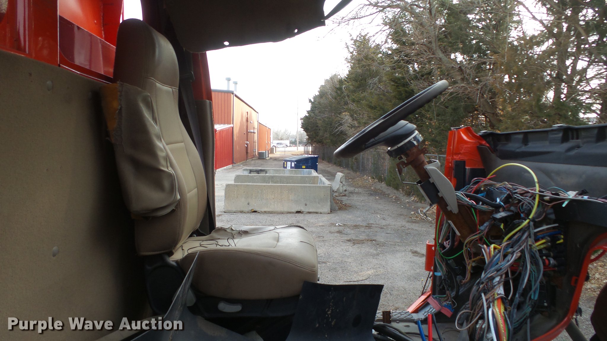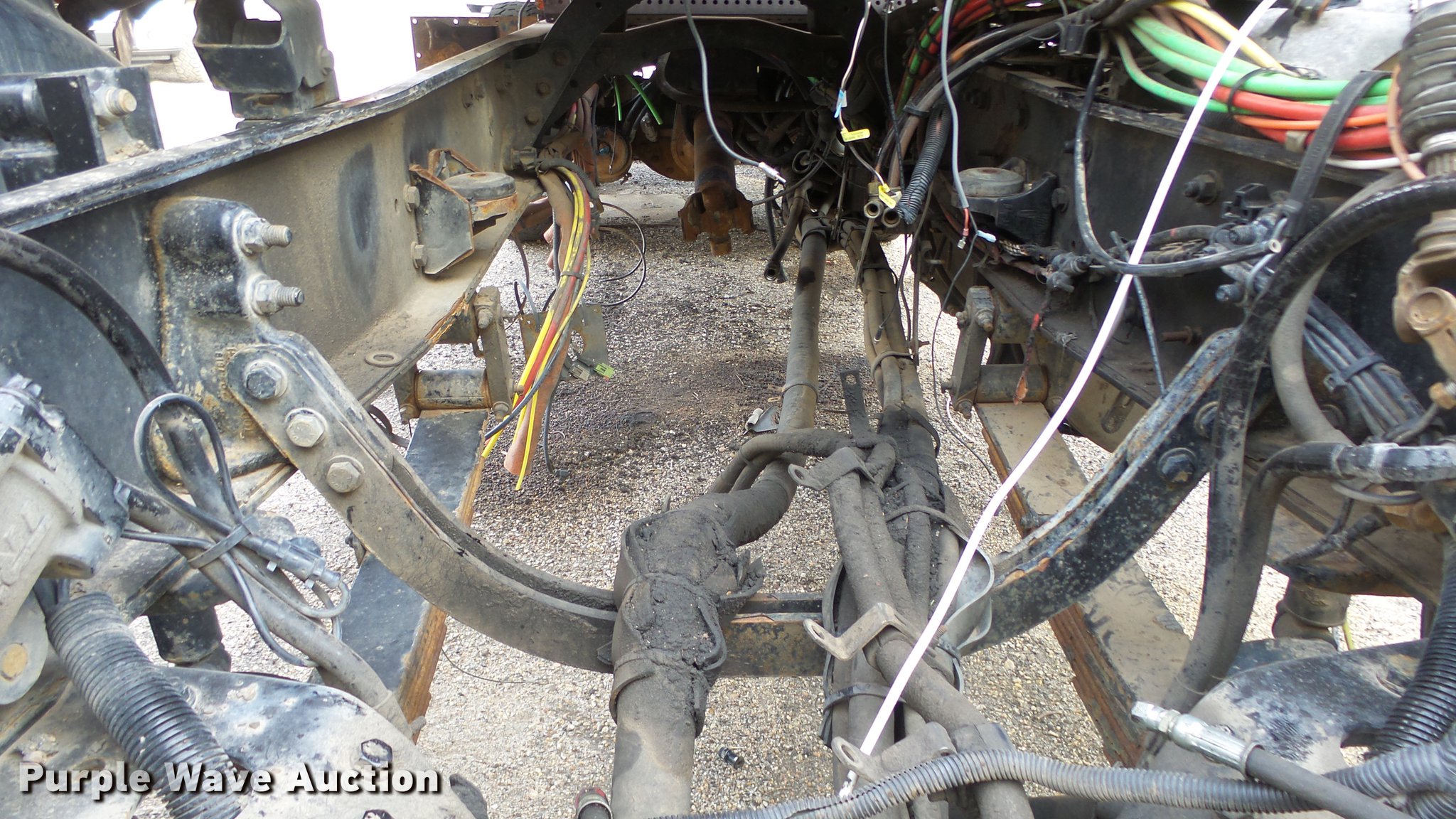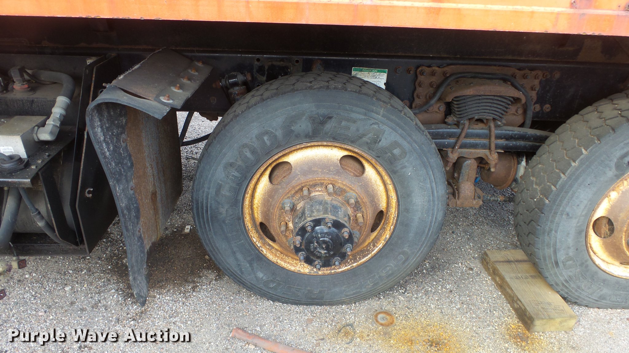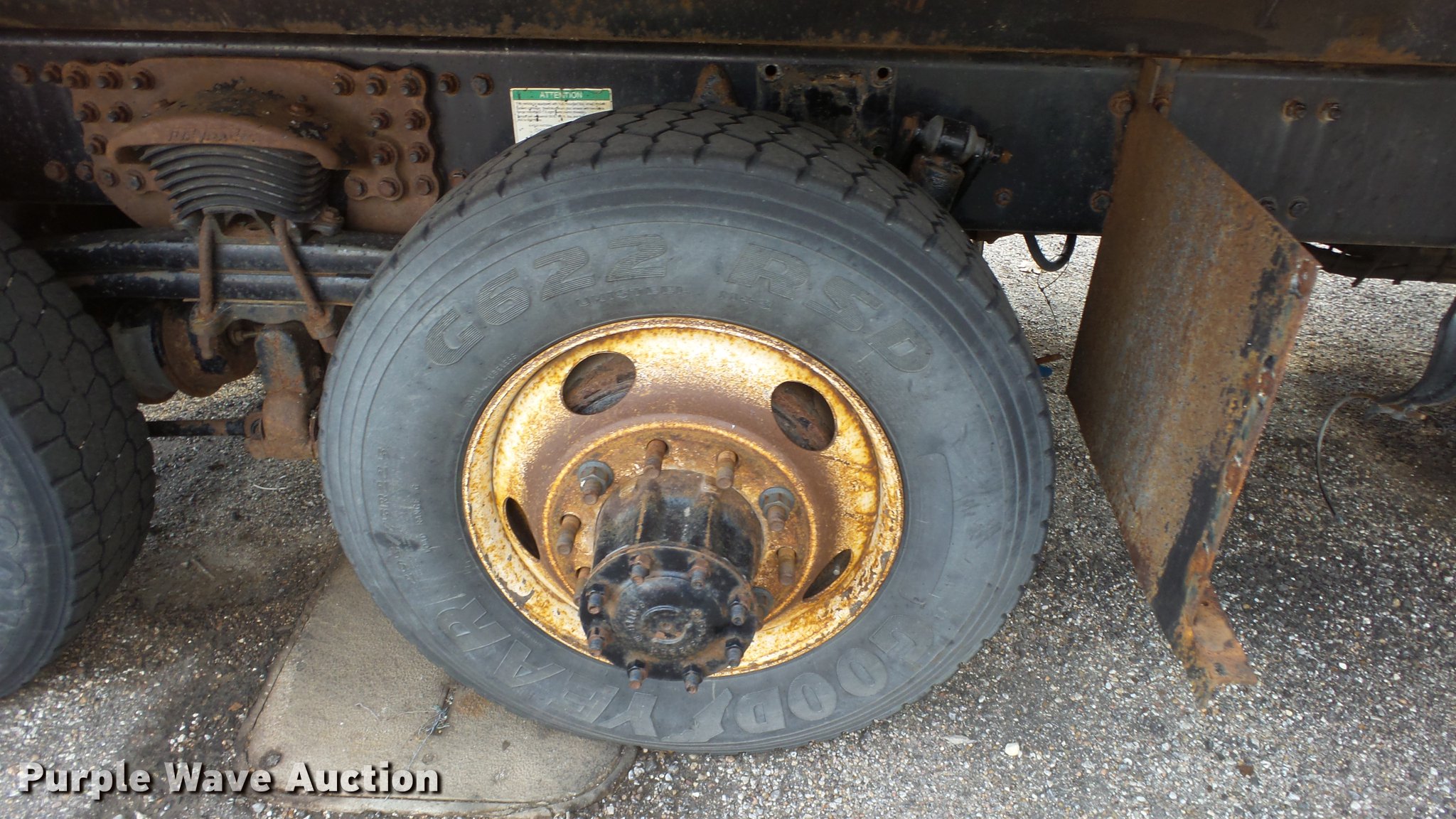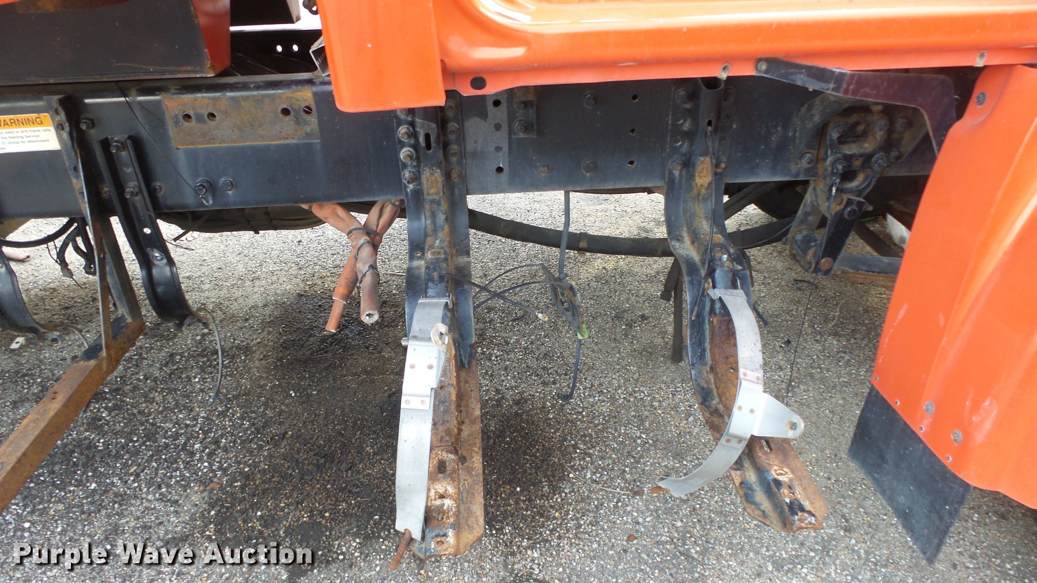 Purple Wave is selling a used Construction Dump Truck in Kansas. This item is a 2009 Sterling LT7501 dump truck with the following: 93,552 miles on odometer, No engine, No transmission, Tandem axle, Henderson 13.5XHX25277XKDOT steel dump bed, 13.5'L x 8'W, Single ram hoist, Pintle htich, Spring suspension, Air brakes, 275/80R22.5 front tires, 295/75R22.5 rear tires, Vehicle wrecked, Parts missing, Hydraulics removed, Body parts missing, Outer rear wheels missing, Lug nuts missing, KDOT ID 263-3118