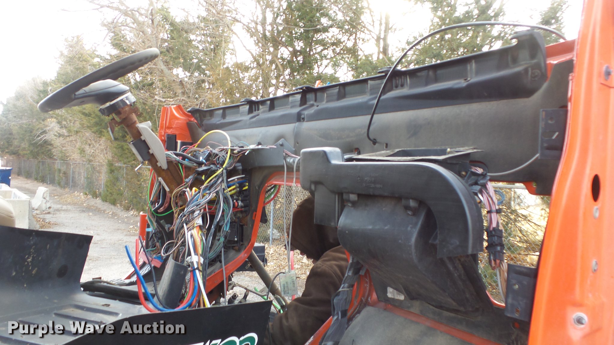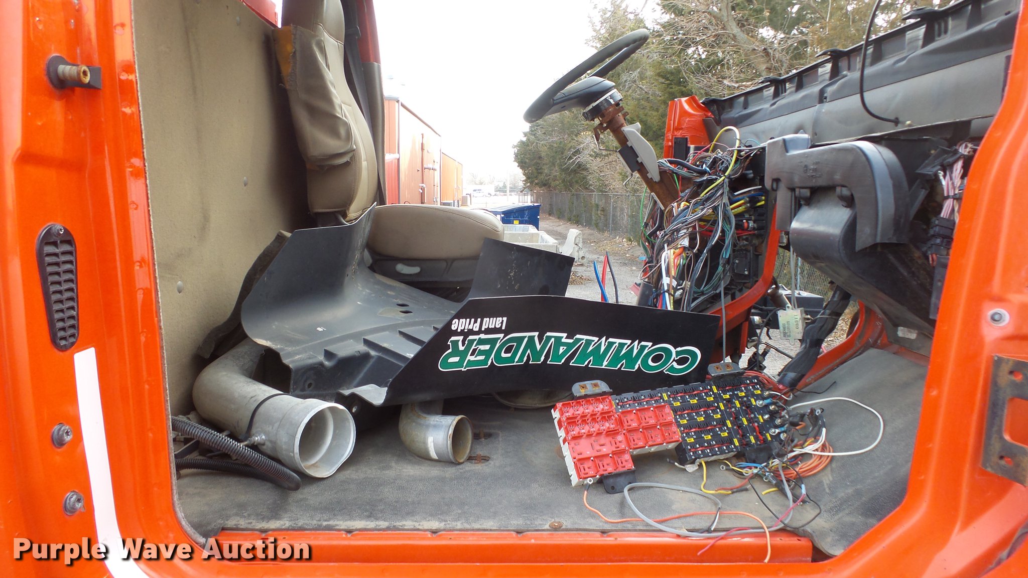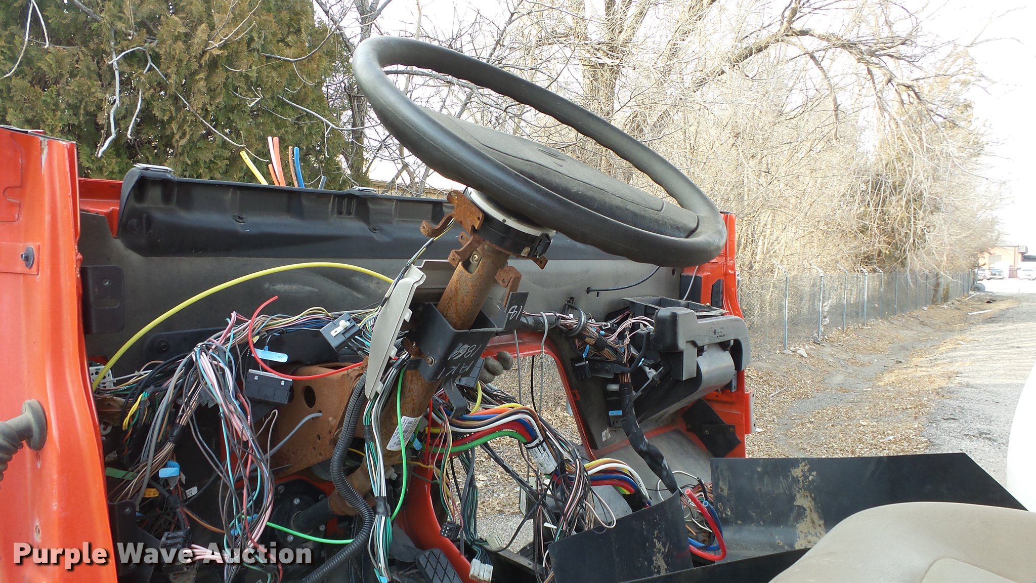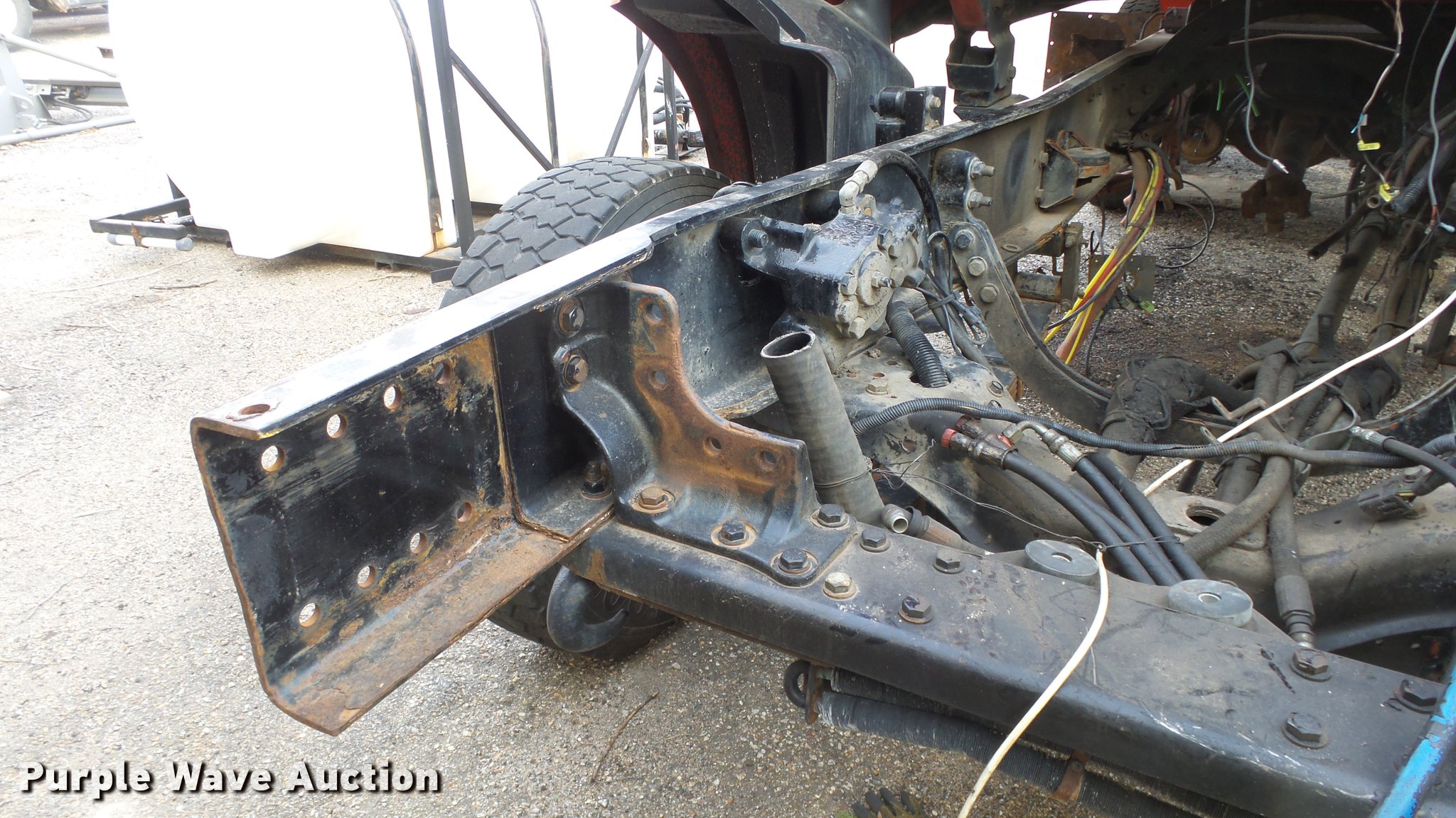 Purple Wave is selling a used Construction Dump Truck in Kansas. This item is a 2009 Sterling LT7501 dump truck with the following: 93,552 miles on odometer, No engine, No transmission, Tandem axle, Henderson 13.5XHX25277XKDOT steel dump bed, 13.5'L x 8'W, Single ram hoist, Pintle htich, Spring suspension, Air brakes, 275/80R22.5 front tires, 295/75R22.5 rear tires, Vehicle wrecked, Parts missing, Hydraulics removed, Body parts missing, Outer rear wheels missing, Lug nuts missing, KDOT ID 263-3118