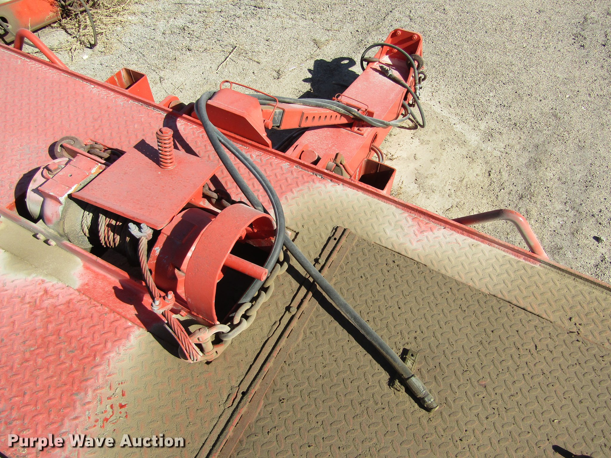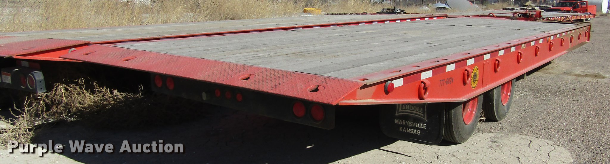 Purple Wave is selling a used Equip. Trailer in Kansas. This item is a 1994 Landoll 345-31 tilt deck equipment trailer with the following: 38'L x 102"W overall, 31'L wood deck, D-ring tie downs, Stake pockets, Braden winch, Hydraulic controls, Recessed toolbox, Pintle hitch, Dual leg landing gear, Spring suspension, Air brakes, Sliding tandem axle, Steel wheels, 10R17.5 tires, GVWR 40,000 lbs, KDOT ID 777-6024
