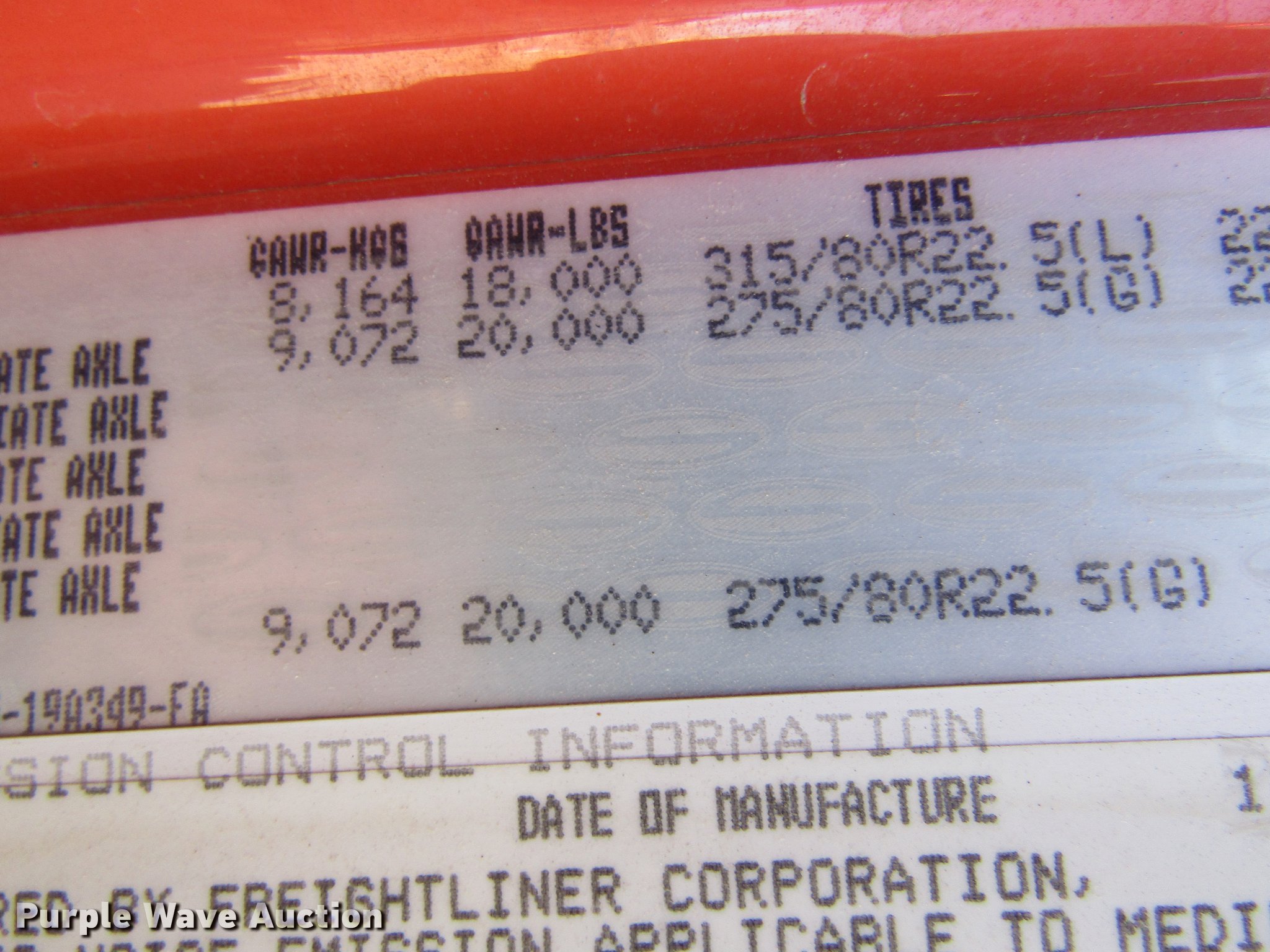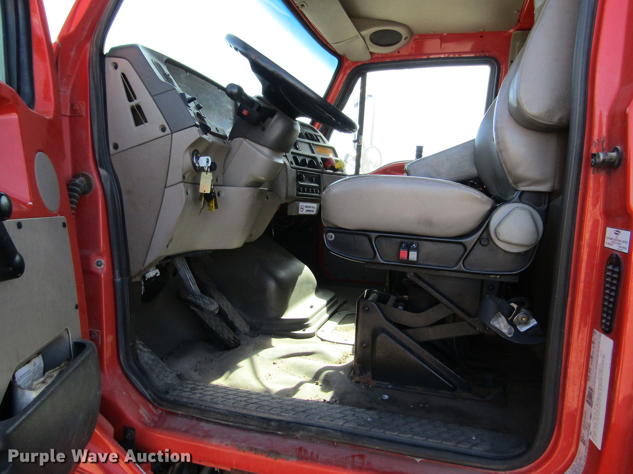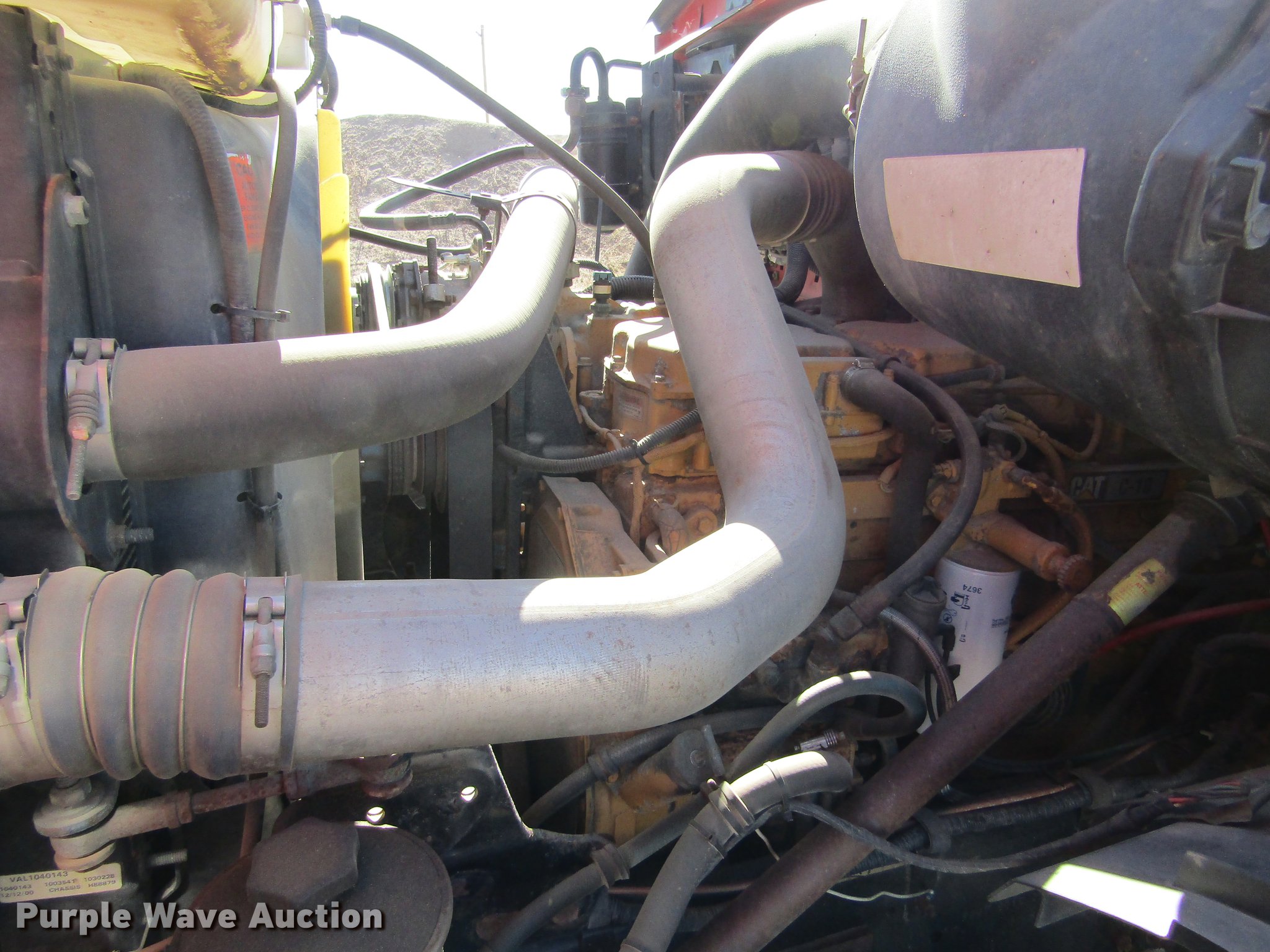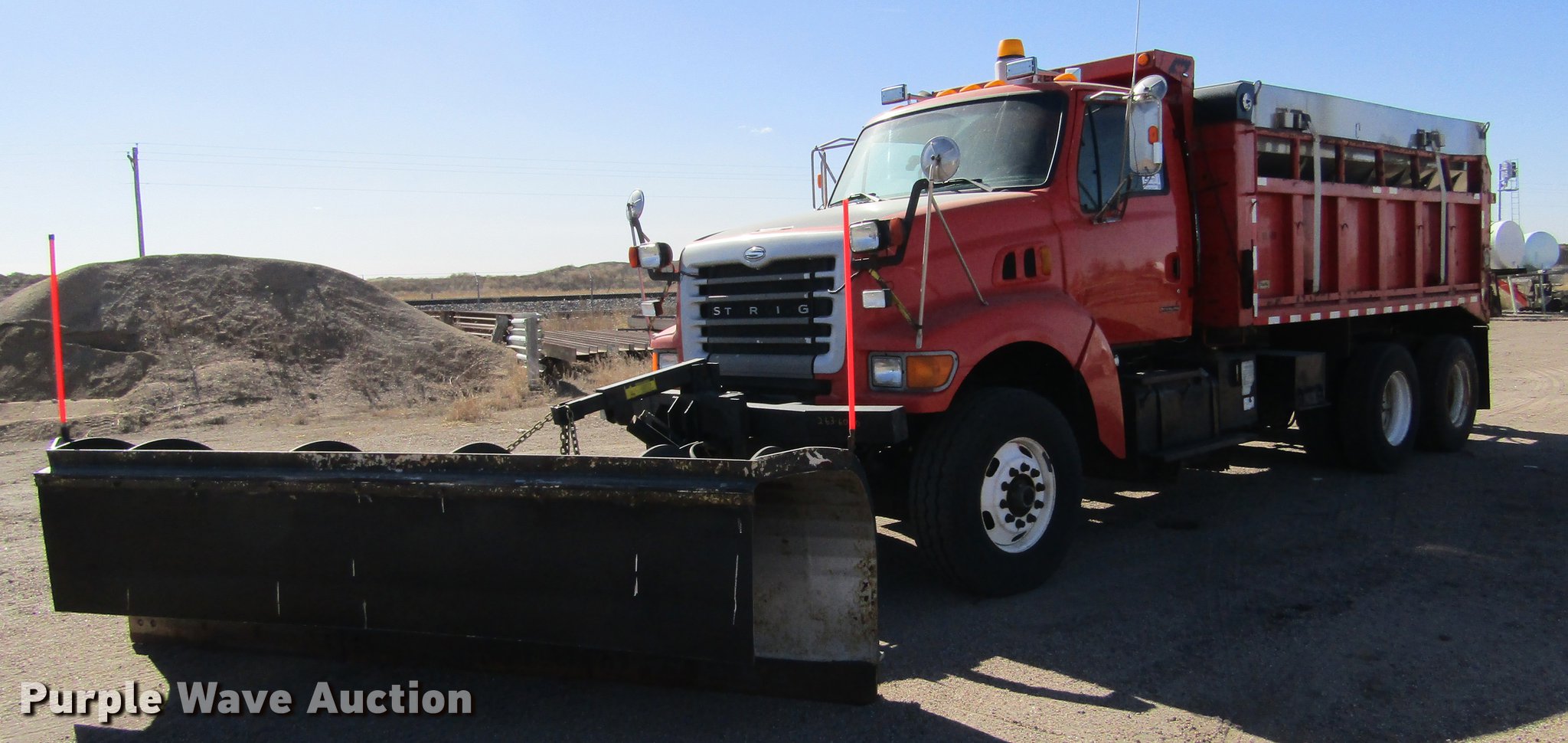 Purple Wave is selling a used Construction Dump Truck in Kansas. This item is a 2001 Sterling LT9511 dump truck with the following: 173,151 miles on odometer, 7,057 hours on meter, Caterpillar C10 10.3L L6 turbo diesel engine, Serial 3CS18933, Eaton Fuller eight speed manual transmission, Tandem axle, AC and heat, Cruise, AM/FM, Air suspension seat, PTO, Block heater, Force hydraulics, Warren WFL650-15-FDOT steel dump bed, 15'L x 8'W, 32" side height, Nine yd. capacity, Roll tarp, Manual end gate, 12'W plow, Henke 8'W wing plow, Warren spreader, Nine yd. capacity, Single fuel tank, Pintle hitch, Trailer wiring, Spring suspension, Air brakes, 295/75R22.5 front tires, 315/80R22.5 rear tires, GVWR 58,000 lbs, FAWR 18,000 lbs, RAWR 20,000 lbs, Steering is loose, Spreader chain needs to be adjusted, Front blade will not turn right, possible hydraulic cylinder issue, KDOT ID 263-6060