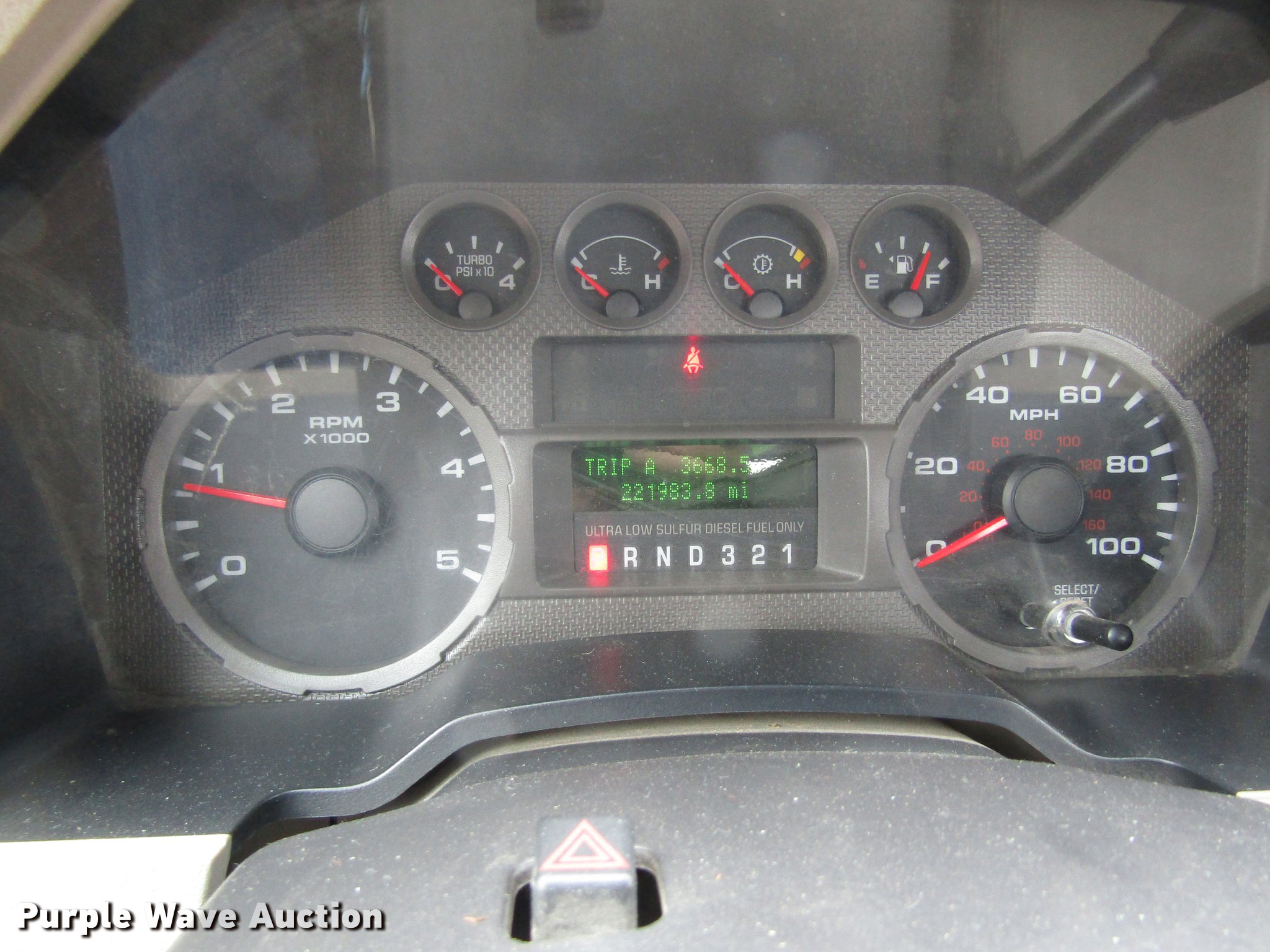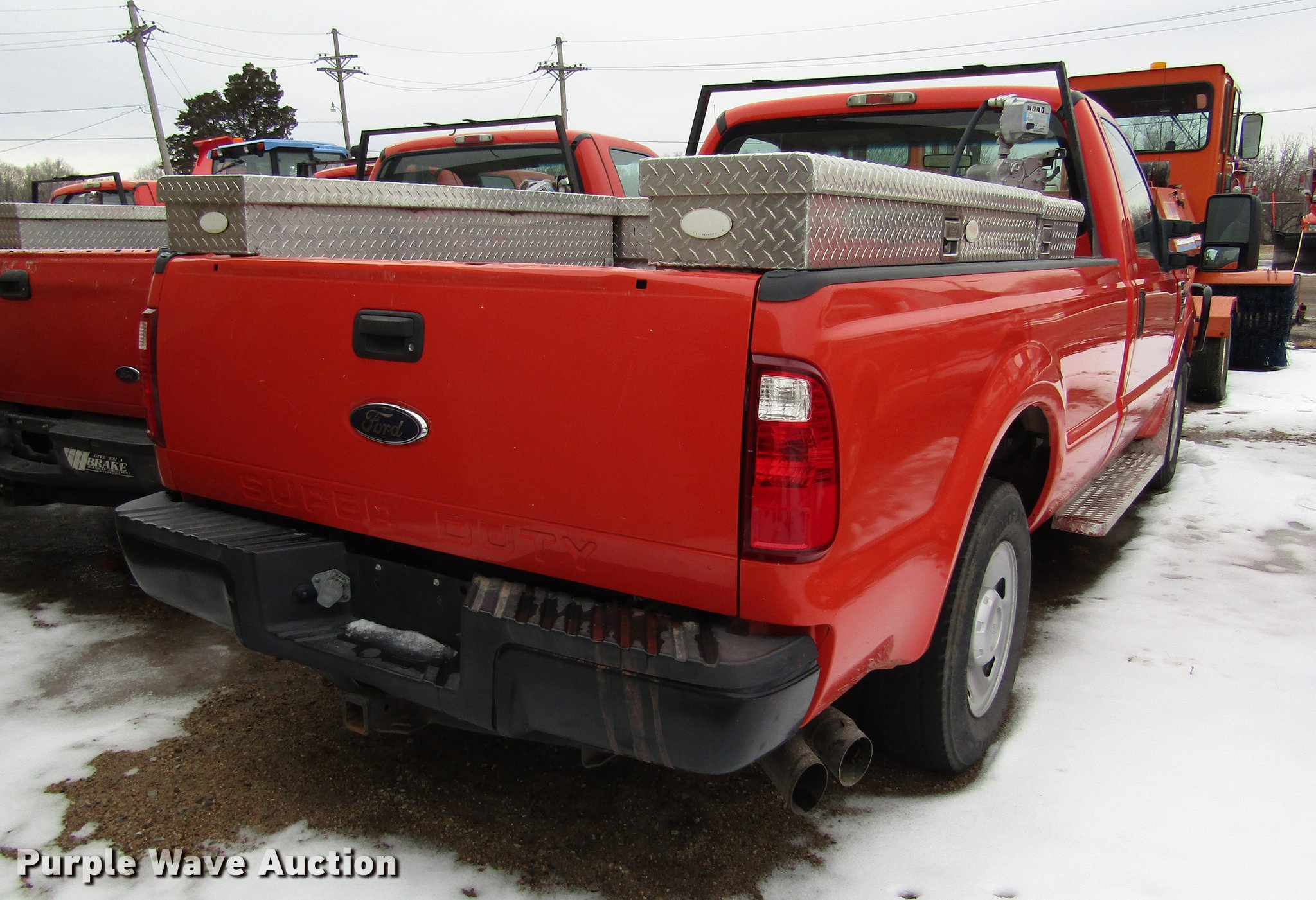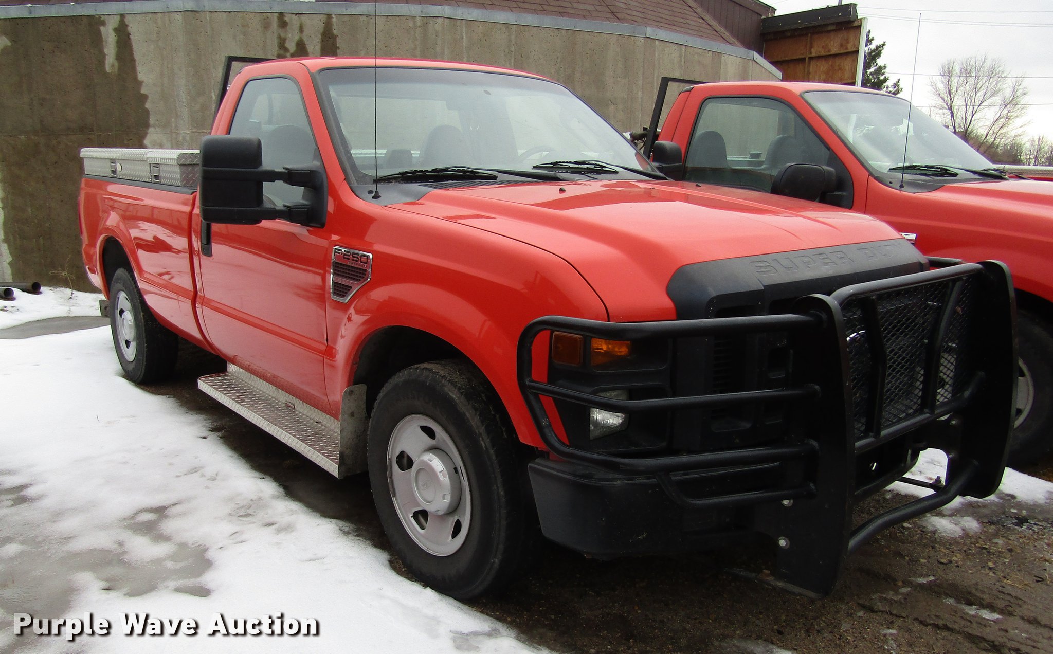 Purple Wave is selling a used 3/4 or 1 Ton Pickup or Van in Kansas. This item is a 2008 Ford F250 Super Duty pickup truck with the following: 221,983 miles on odometer, 6.4L V8 OHV 32V turbo diesel engine, Automatic transmission, AC and heat, Tilt, Cruise, Vinyl interior, Toolboxes, Auxiliary fuel tank, Electric fuel pump, Grill guard, Running boards, Front tow hook, Receiver hitch, Trailer wiring, 245/75R17 tires, Drive side window issue, Windshield cracked, KDOT ID 113-3057