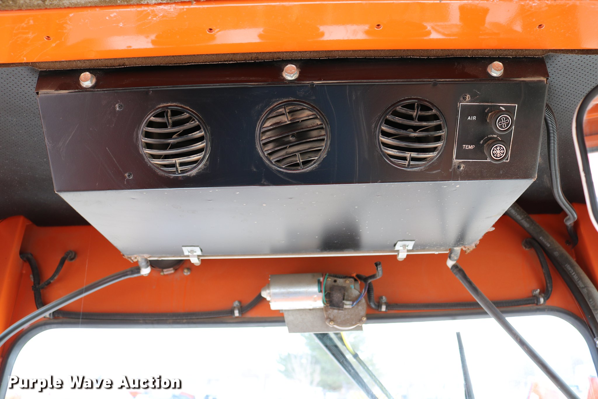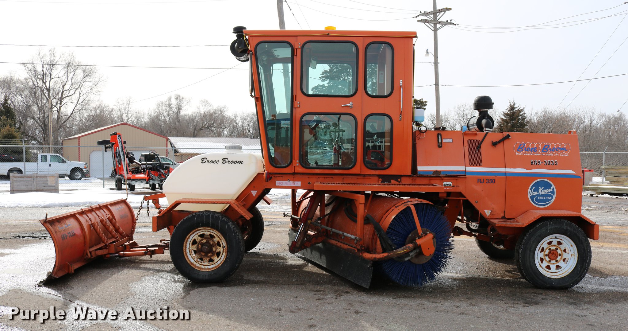 Purple Wave is selling a used Broom in Kansas. This item is a 2004 Broce RJ350 broom with the following: 1,502 hours on meter, John Deere 4.5L four cylinder diesel engine, Serial PE4045D390206, Hydrostatic transmission, Enclosed cab, AC and heat, Suspension seat, Wipers, 8'W broom, Hydraulic lift, tilt, and rotation, Front spray boom water application, Tank, 90"W front blade, Front work lights, Strobe light, 225/75R16 tires, Blade rusted, Serial 404381, KDOT ID 689-3035