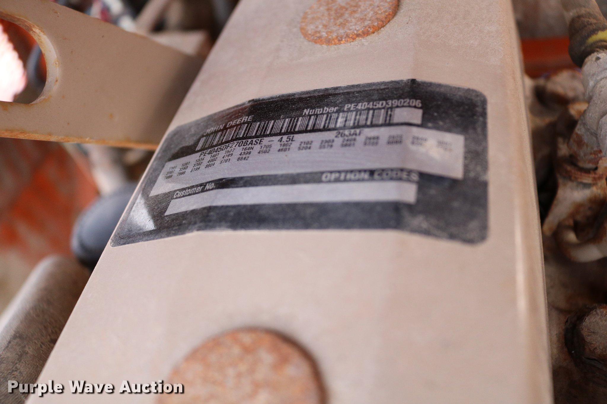 2004 Broce RJ350 broom. 1,502 hours on meter, John Deere 4.5L four cylinder diesel engine Serial PE4045D390206, Hydrostatic transmission, Enclosed cab, AC and heat, Suspension seat, Wipers, 8'W broom Hydraulic lift, tilt, and rotation, Front spray boom water application, Tank, 90"W front blade, Front work lights, Strobe light, 225/75R16 tires, Blade rusted, Serial 404381, KDOT ID 689-3035. Kansas Department of Transportation - Norton. 312 S 2nd Ave. Norton, KS 67654