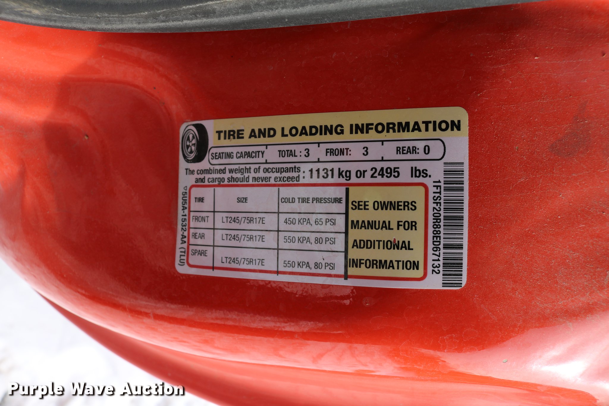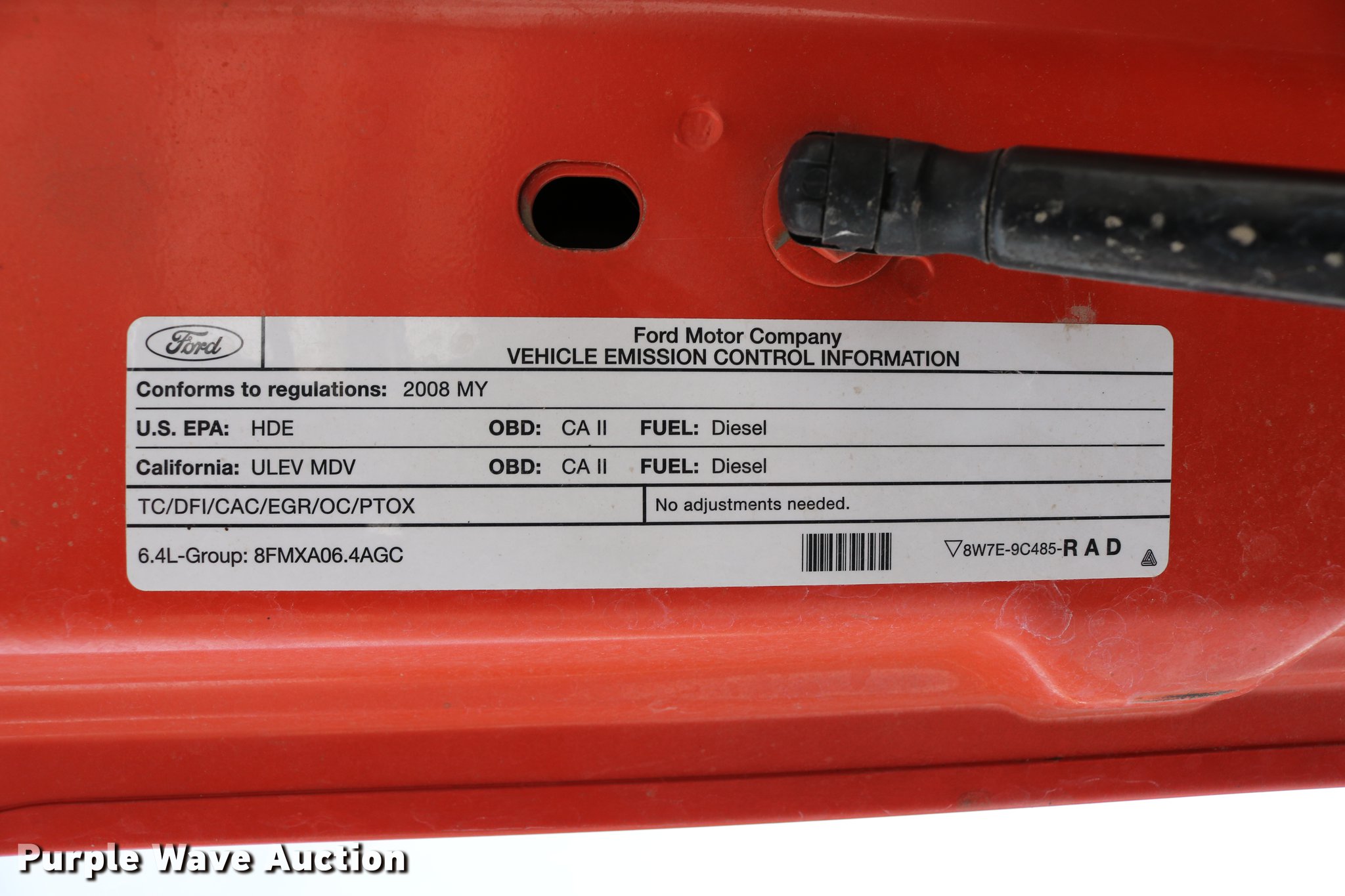 Purple Wave is selling a used 3/4 or 1 Ton Pickup or Van in Kansas. This item is a 2008 Ford F250 Super Duty pickup truck with the following: 150,089 miles on odometer, 6.4L V8 OHV 32V turbo diesel engine, Automatic transmission, AC and heat, Tilt, Cruise, AM/FM, Vinyl interior, Toolboxes, Auxiliary fuel tank, 80 gallon capacity, Electric fuel pump, Grill guard, 245/75R17 tires, Non-operational vehicle, Engine knock, Battery dead, Seat broken, KDOT ID 113-3088