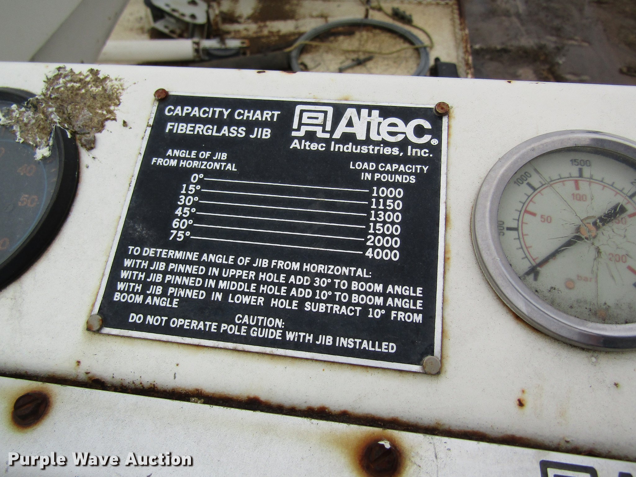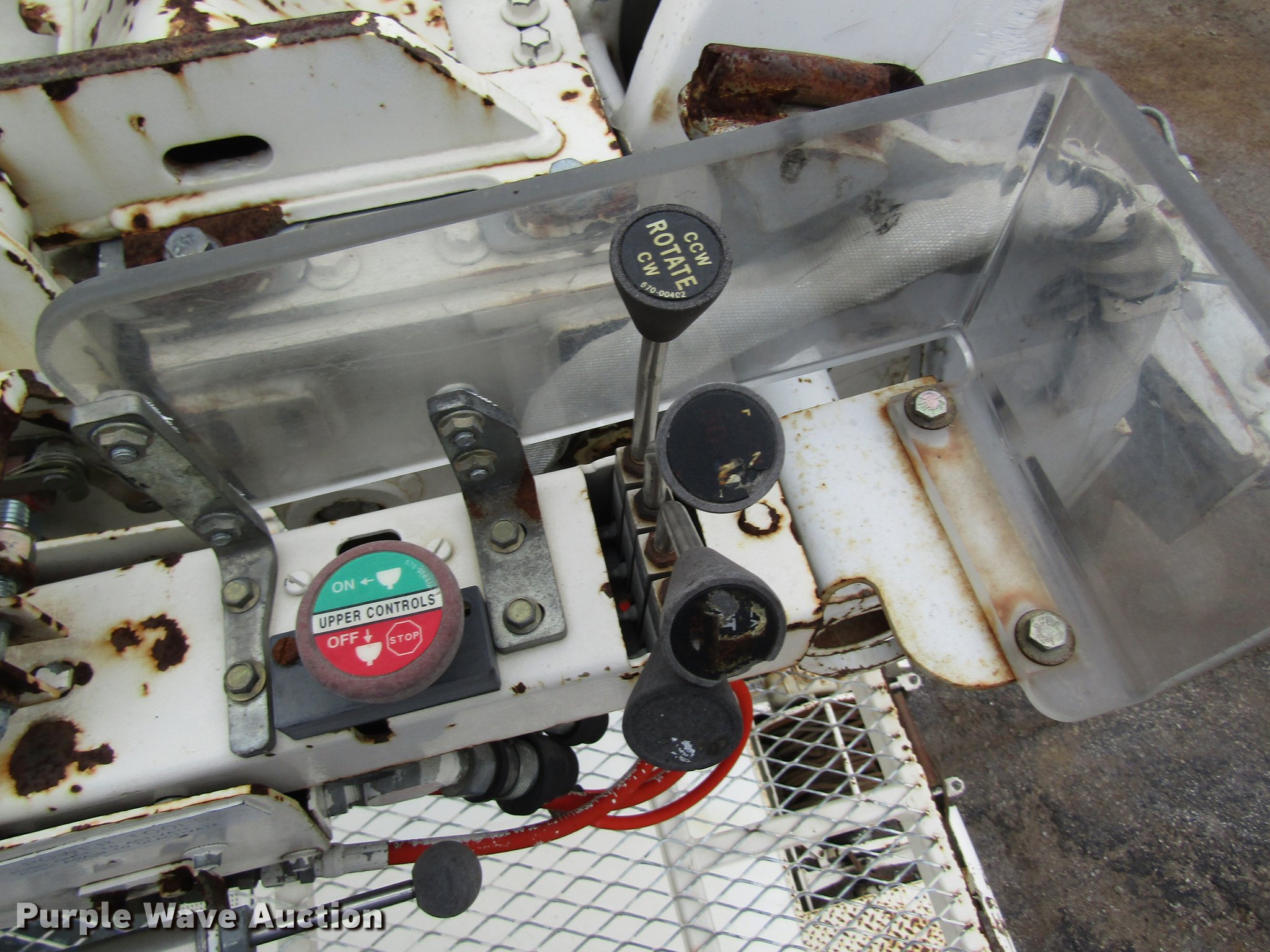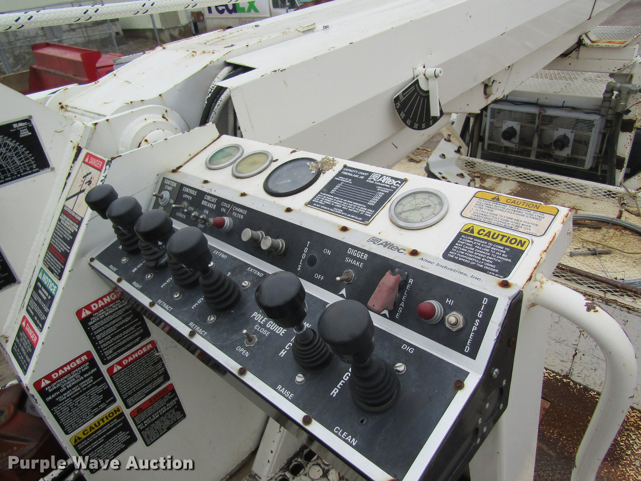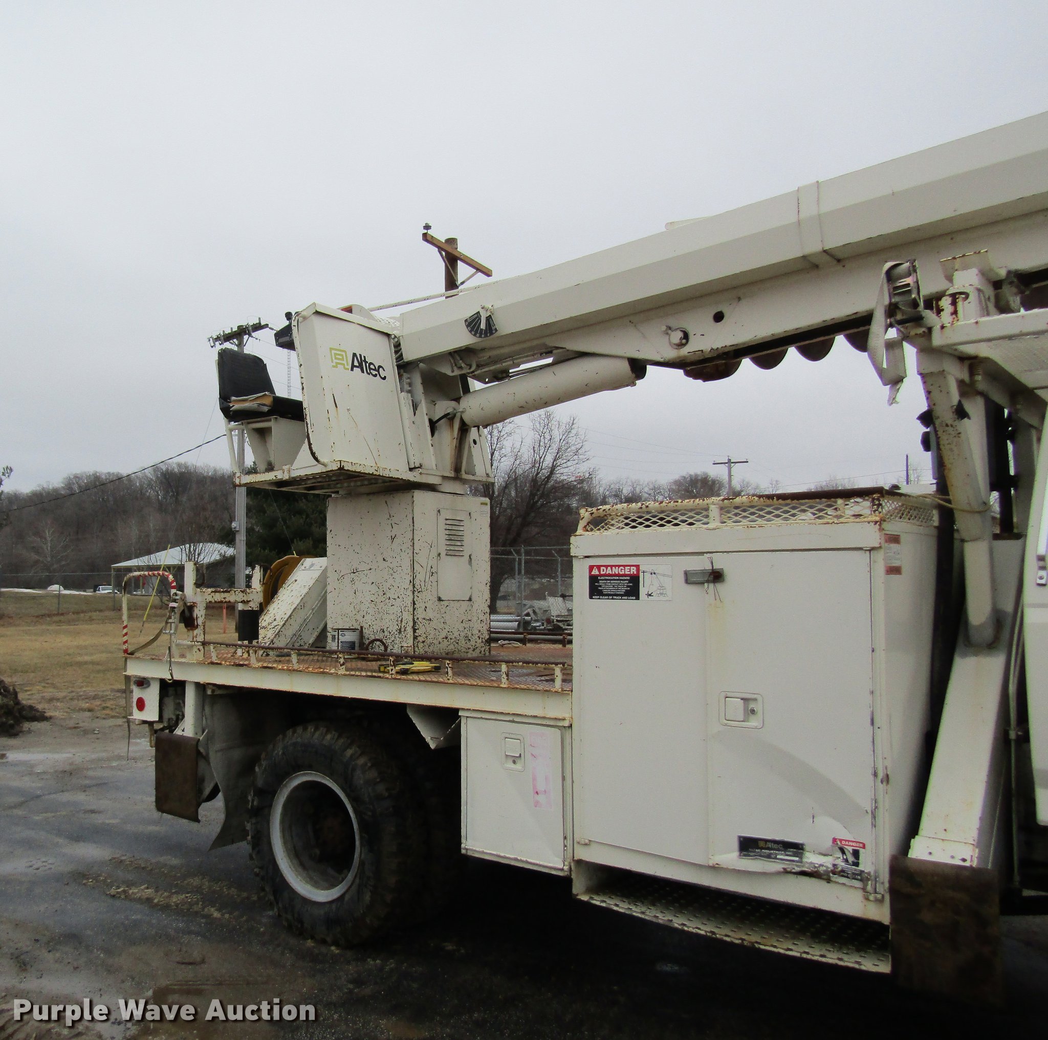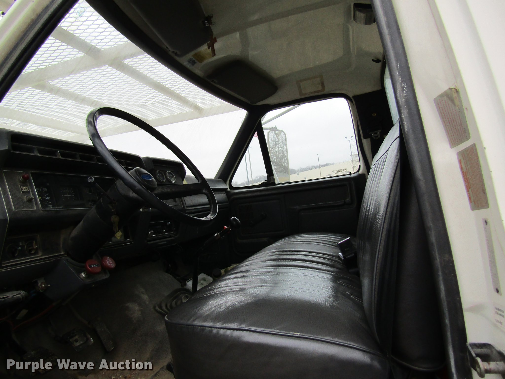 Purple Wave is selling a used Bucket Truck in Missouri. This item is a 1993 Ford F700 digger derrick truck with the following: 46,384 miles on odometer, 85,301 hours on meter, 7.0L V8 gas engine, Five speed manual transmission, Two speed rear end, Single axle, Heat, AM/FM, Suspension seat, Front tow hooks, PTO, Altec D945 service bed, 13'L, Winch, Serial 37-63813, Altec D945 digger derrick, 20,000 lbs max lift capacity, 45' max lift height, Ground boom controls, Boom rotation, Telescopic boom, 18" diameter auger, Rope material handler, Outriggers, Serial 0293RA0148, Pintle hitch, Trailer wiring, Spring suspension, Hydraulic brakes, 10.00-20 tires, View dielectric test, 06/2017, Unit# 8