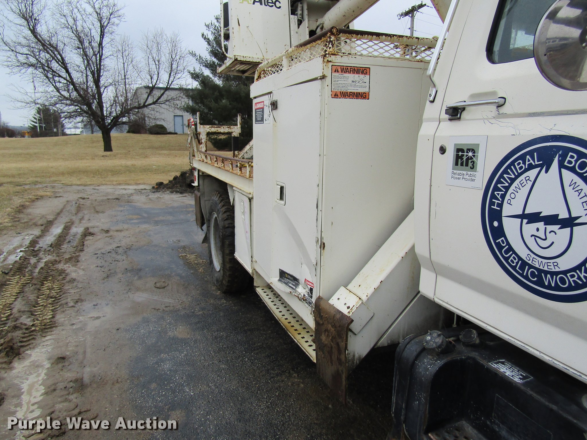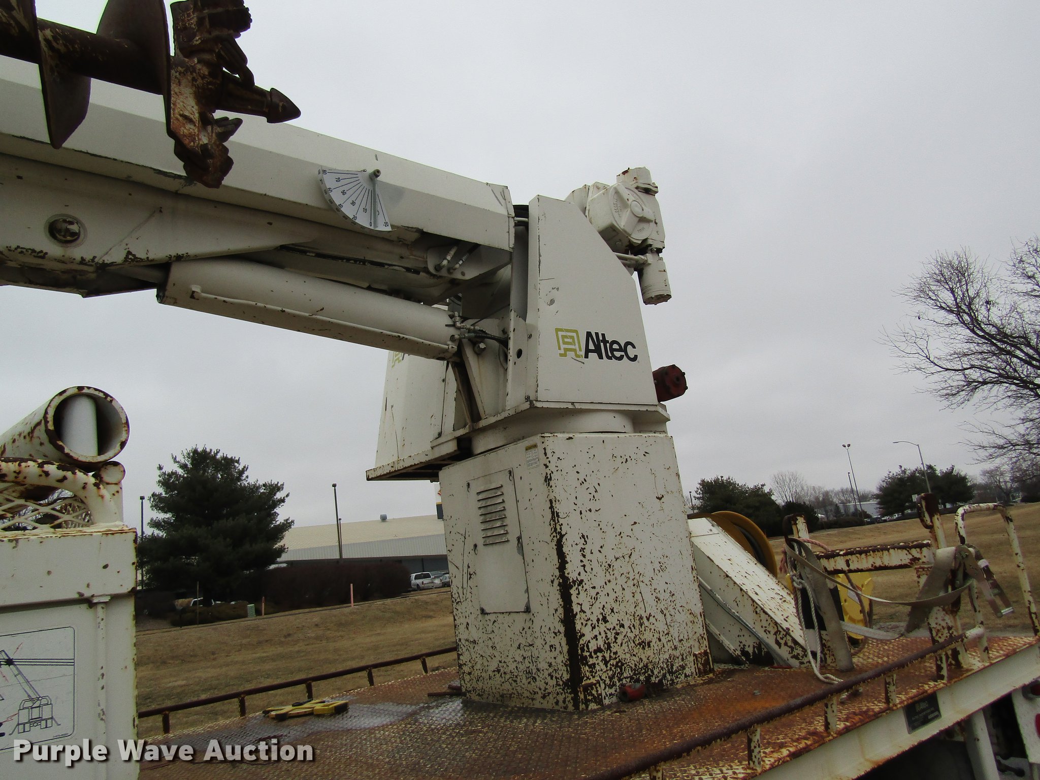 1993 Ford F700 digger derrick truck. 46,384 miles on odometer, 85,301 hours on meter, 7.0L V8 gas engine, Five speed manual transmission, Two speed rear end, Single axle, Heat, AM/FM, Suspension seat, Front tow hooks, PTO, Altec D945 service bed 13'L, Winch, Serial 37-63813, Altec D945 digger derrick 20,000 lbs max lift capacity, 45' max lift height, Ground boom controls, Boom rotation, Telescopic boom, 18" diameter auger, Rope material handler, Outriggers, Serial 0293RA0148, Pintle hitch, Trailer wiring, Spring suspension, Hydraulic brakes, 10.00-20 tires, View dielectric test , 06/2017, Unit# 8. Missouri title. 1FDPF70J3PVA25837. City of Hannibal. 3 Industrial Loop Rd. Hannibal, MO 63401