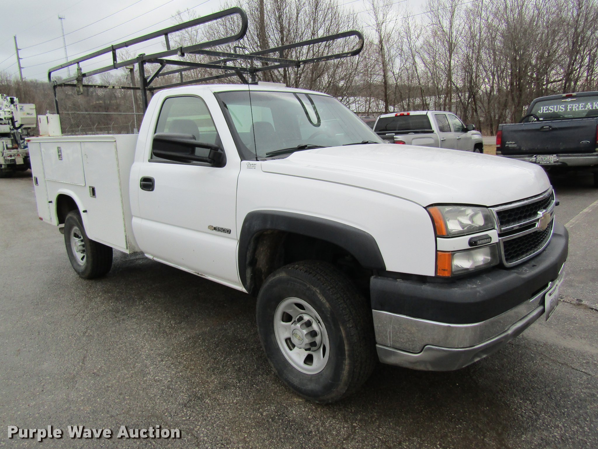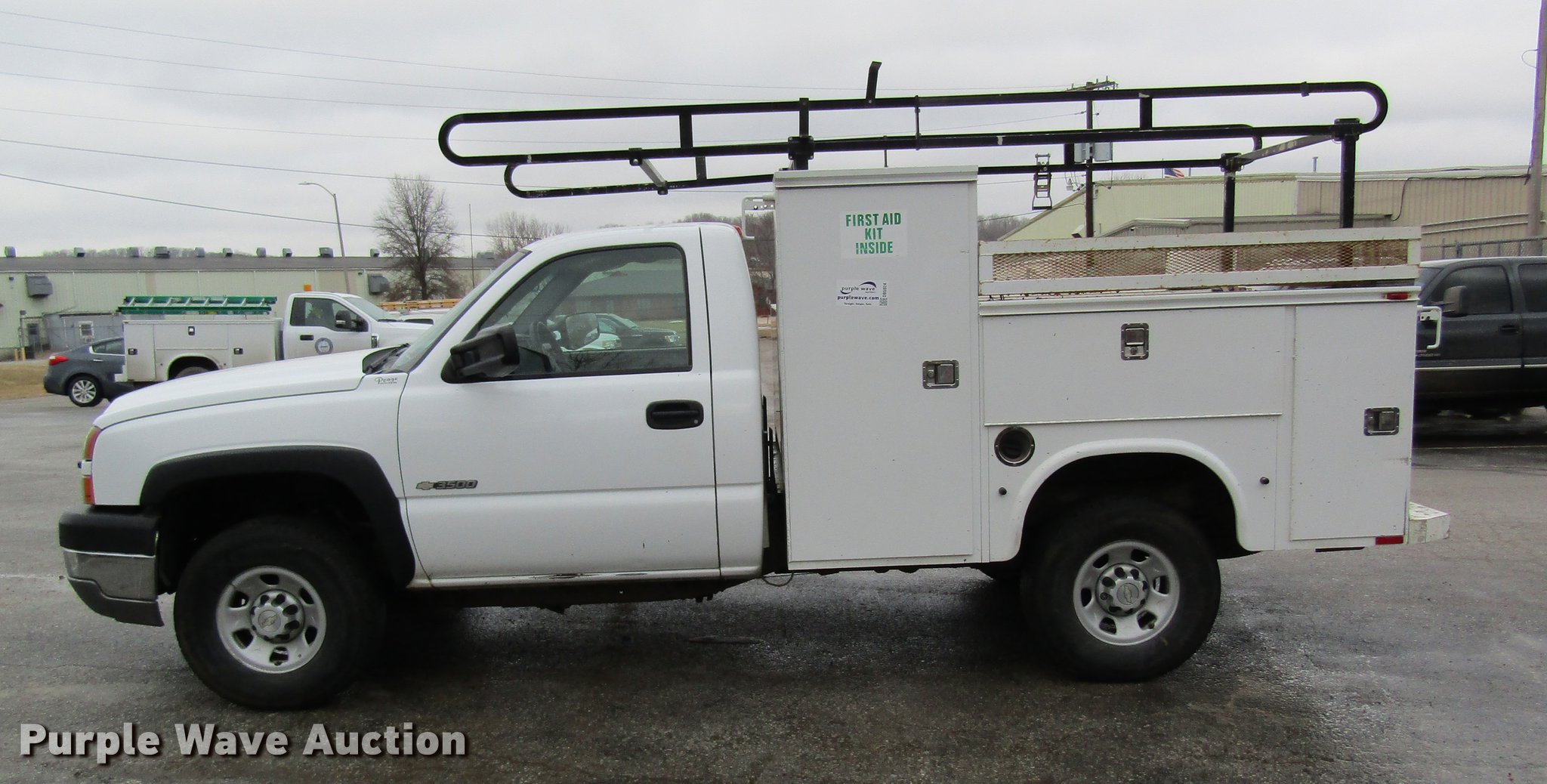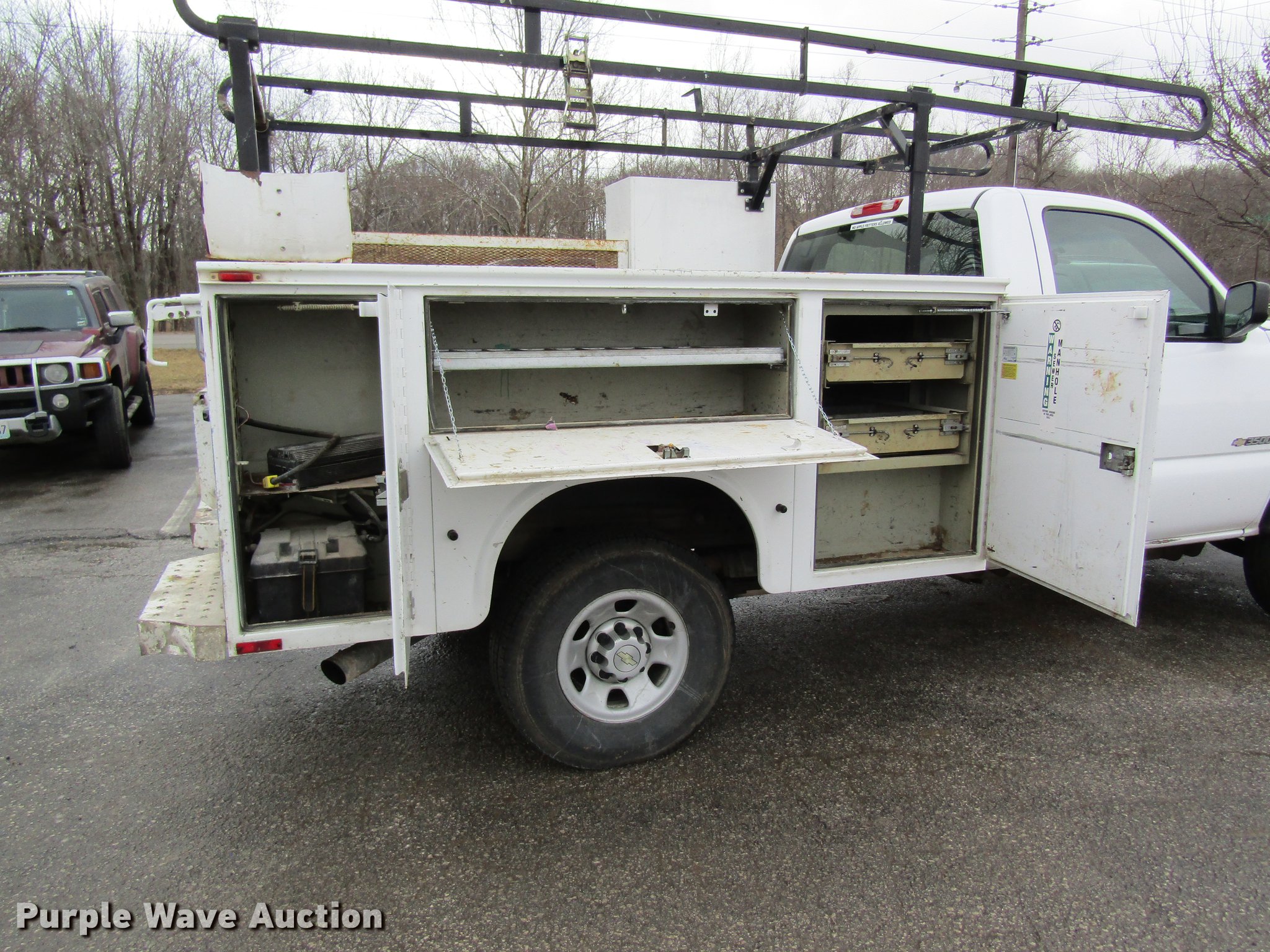 Purple Wave is selling a used 3/4 or 1 Ton Pickup or Van in Missouri. This item is a 2006 Chevrolet Silverado 3500 utility bed pickup truck with the following: 130,866 miles on odometer, 6.0L V8 OHV 16V gas engine, Automatic transmission, Four wheel drive, Single axle, AC and heat, AM/FM, Suspension seat, Knapheide 69660J-L utility bed, 8'L, Shelving, Slide-out drawers, Single fuel tank, Receiver hitch, Trailer wiring, Spring suspension, Hydraulic brakes, 225/75R16 tires