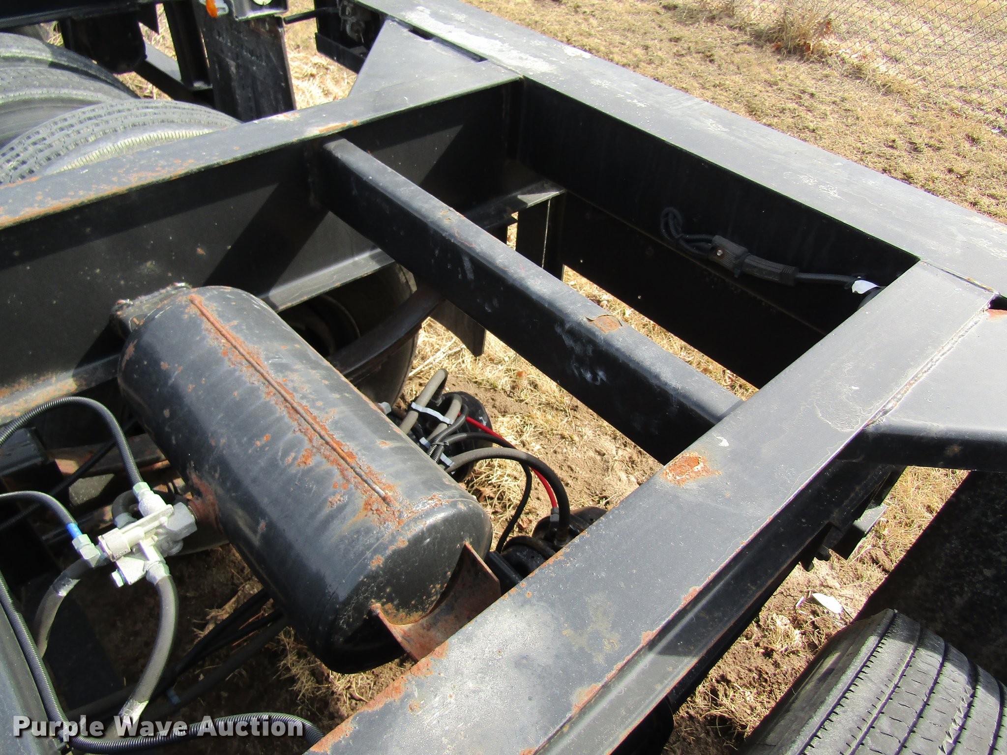 Purple Wave is selling a used Flat or Drop Deck Trailer in Missouri. This item is a 2009 Hyundai CGN403-516 trailer chassis with the following: 40'L x 8'W, Fifth wheel plate, Dual leg landing gear, Spring suspension, Air brakes, Triple axle, Steel wheels, 295/75R22.5 tires, GVWR 80,000 lbs