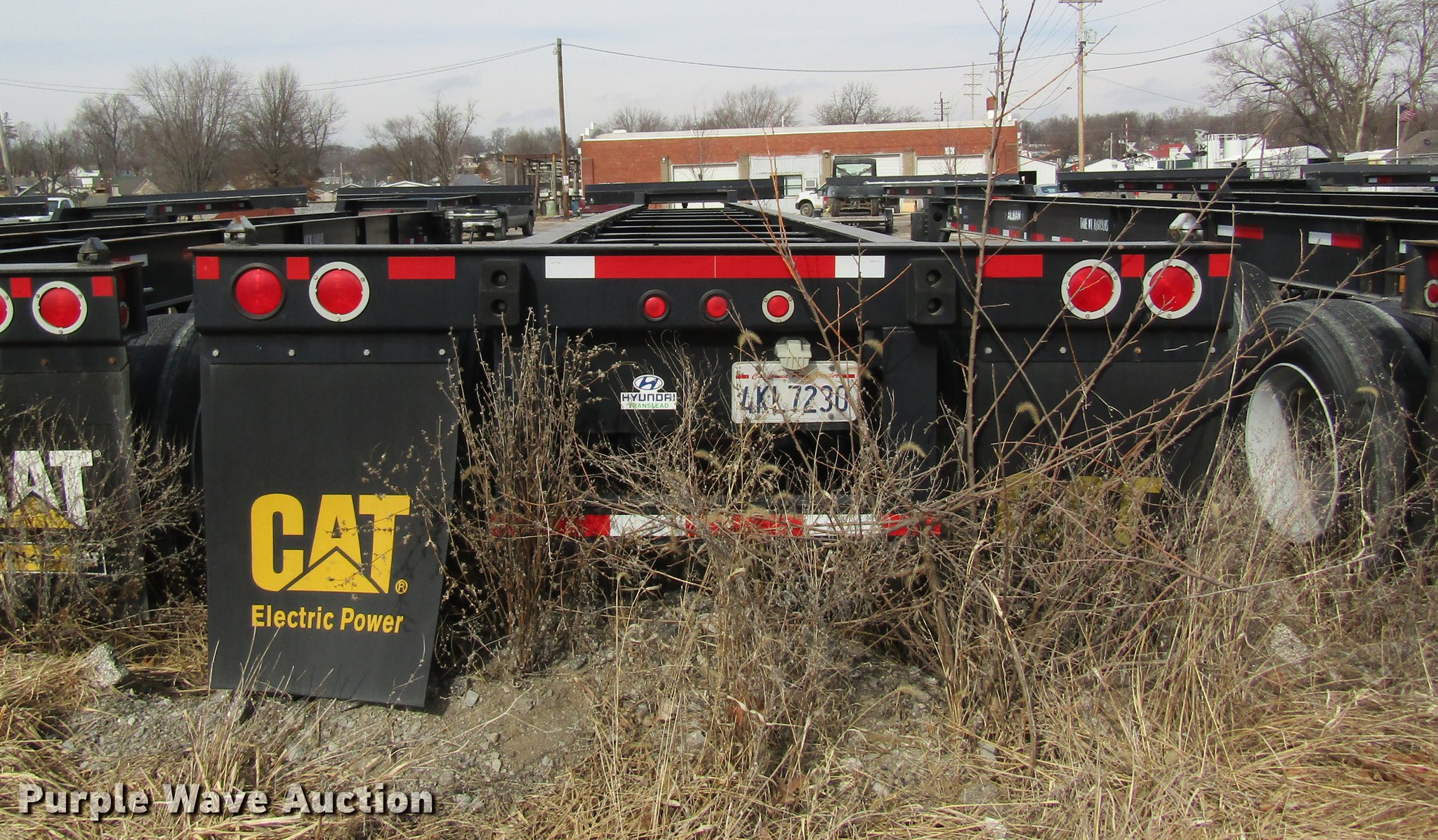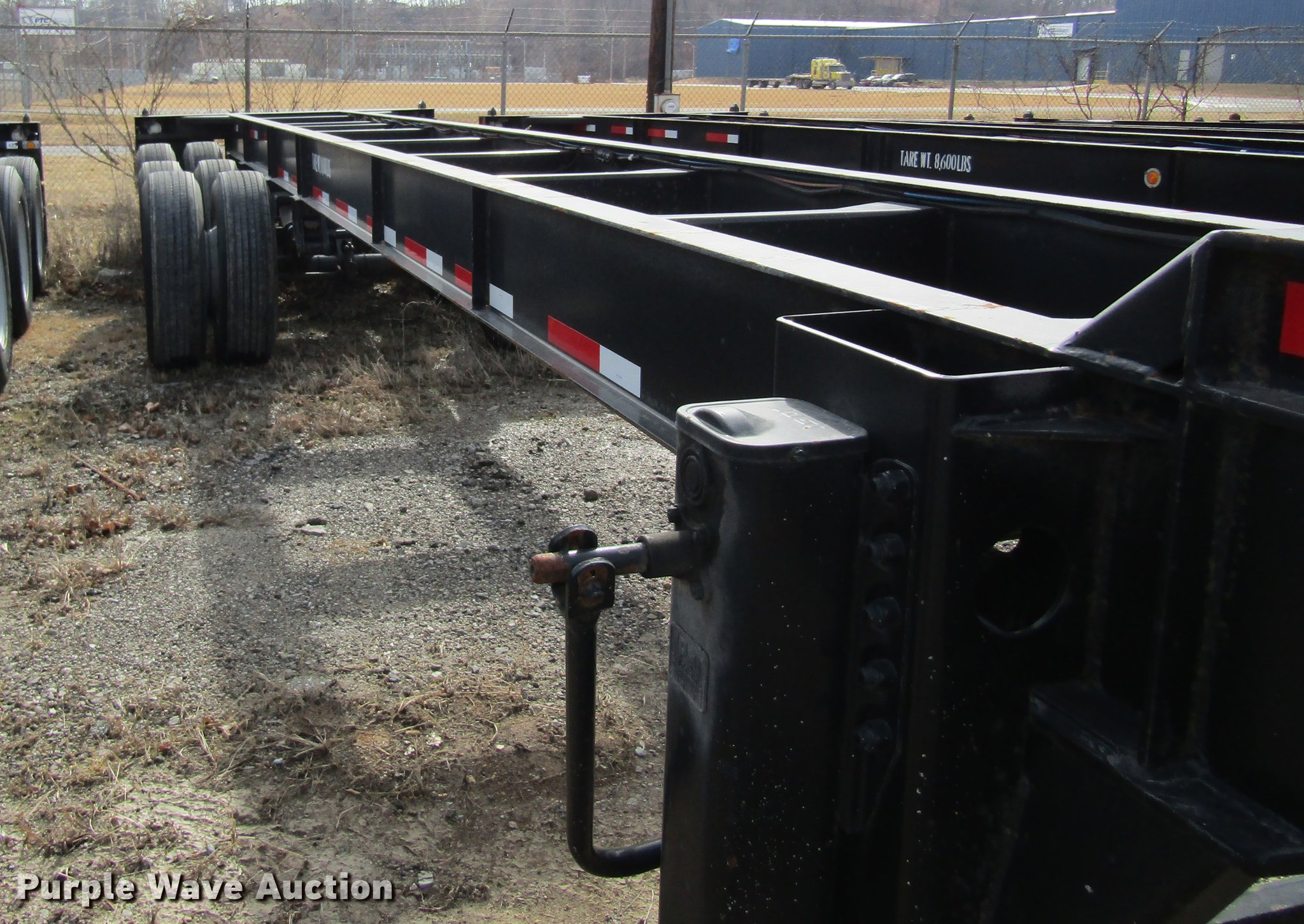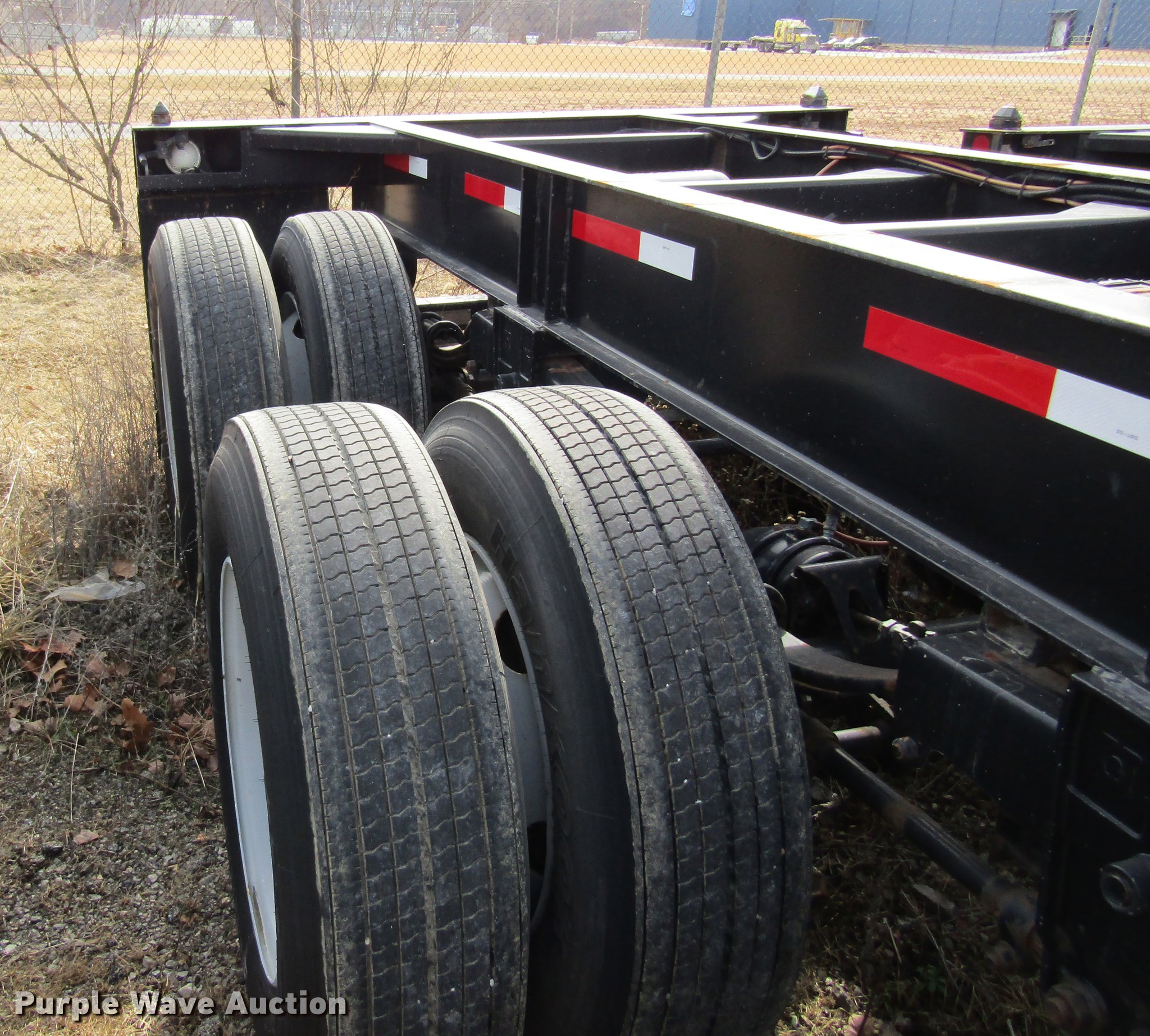 Purple Wave is selling a used Flat or Drop Deck Trailer in Missouri. This item is a 2009 Hyundai CGN403-516 trailer chassis with the following: 40'L x 8'W, Fifth wheel plate, Dual leg landing gear, Spring suspension, Air brakes, Triple axle, Steel wheels, 295/75R22.5 tires, GVWR 80,000 lbs
