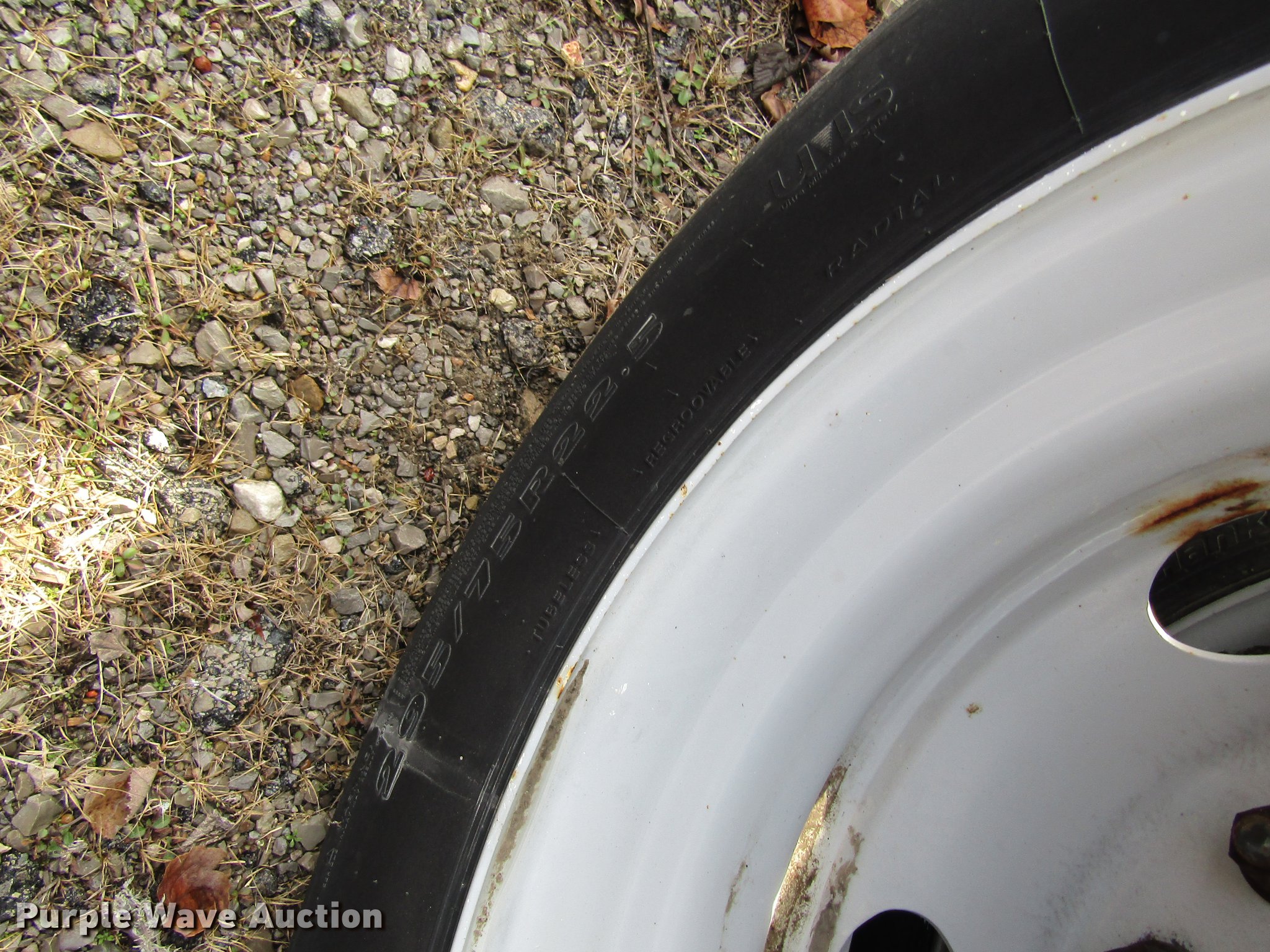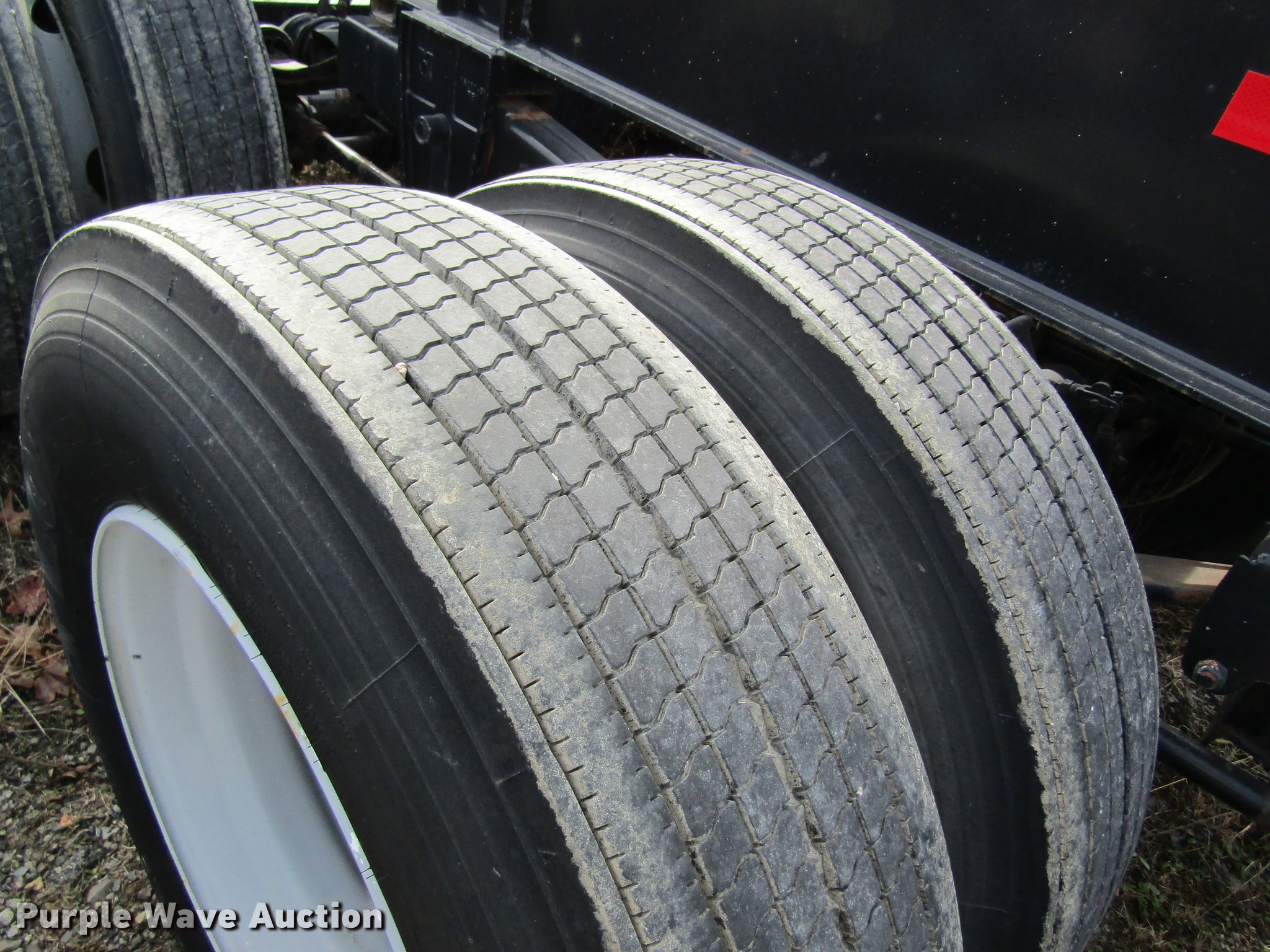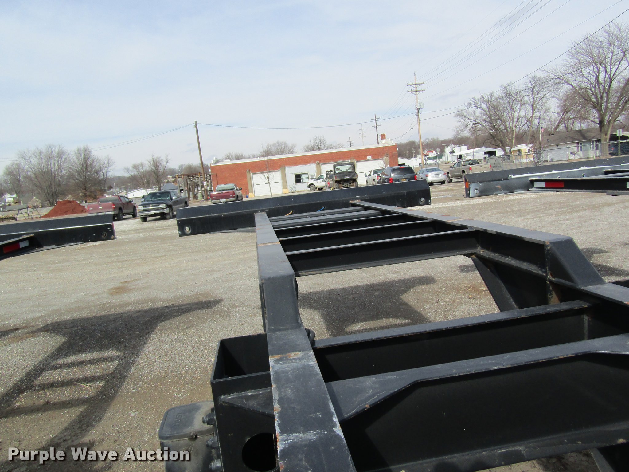 Purple Wave is selling a used Flat or Drop Deck Trailer in Missouri. This item is a 2009 Hyundai CGN403-516 trailer chassis with the following: 40'L x 8'W, Fifth wheel plate, Dual leg landing gear, Spring suspension, Air brakes, Triple axle, Steel wheels, 295/75R22.5 tires, GVWR 80,000 lbs
